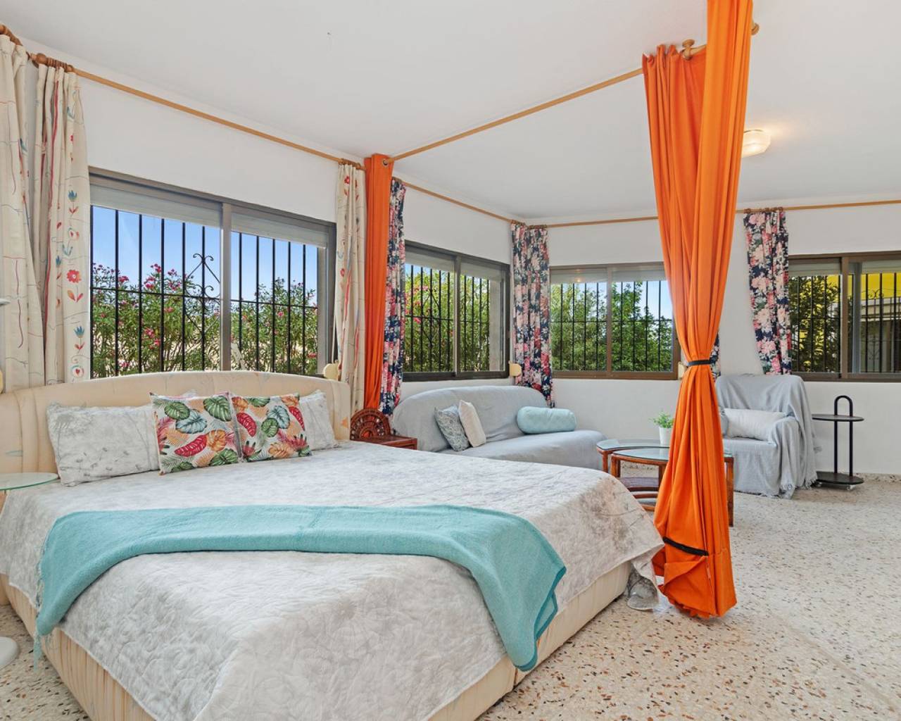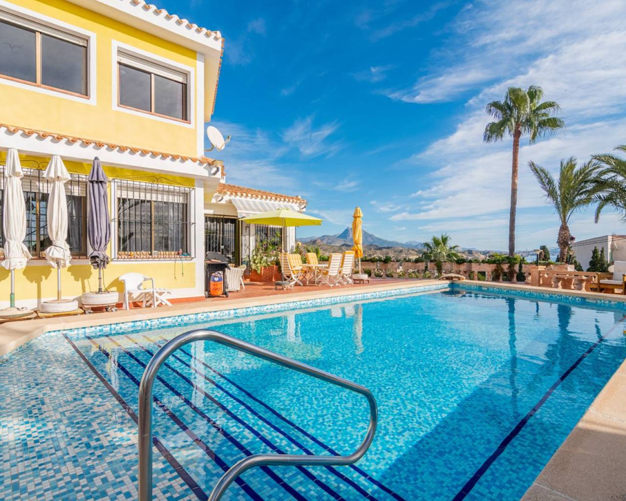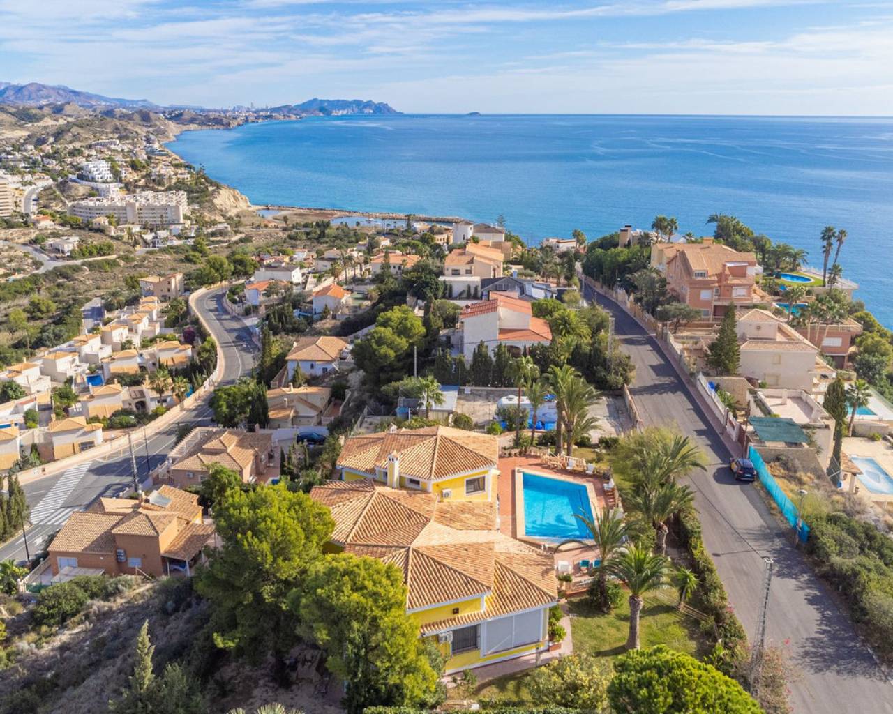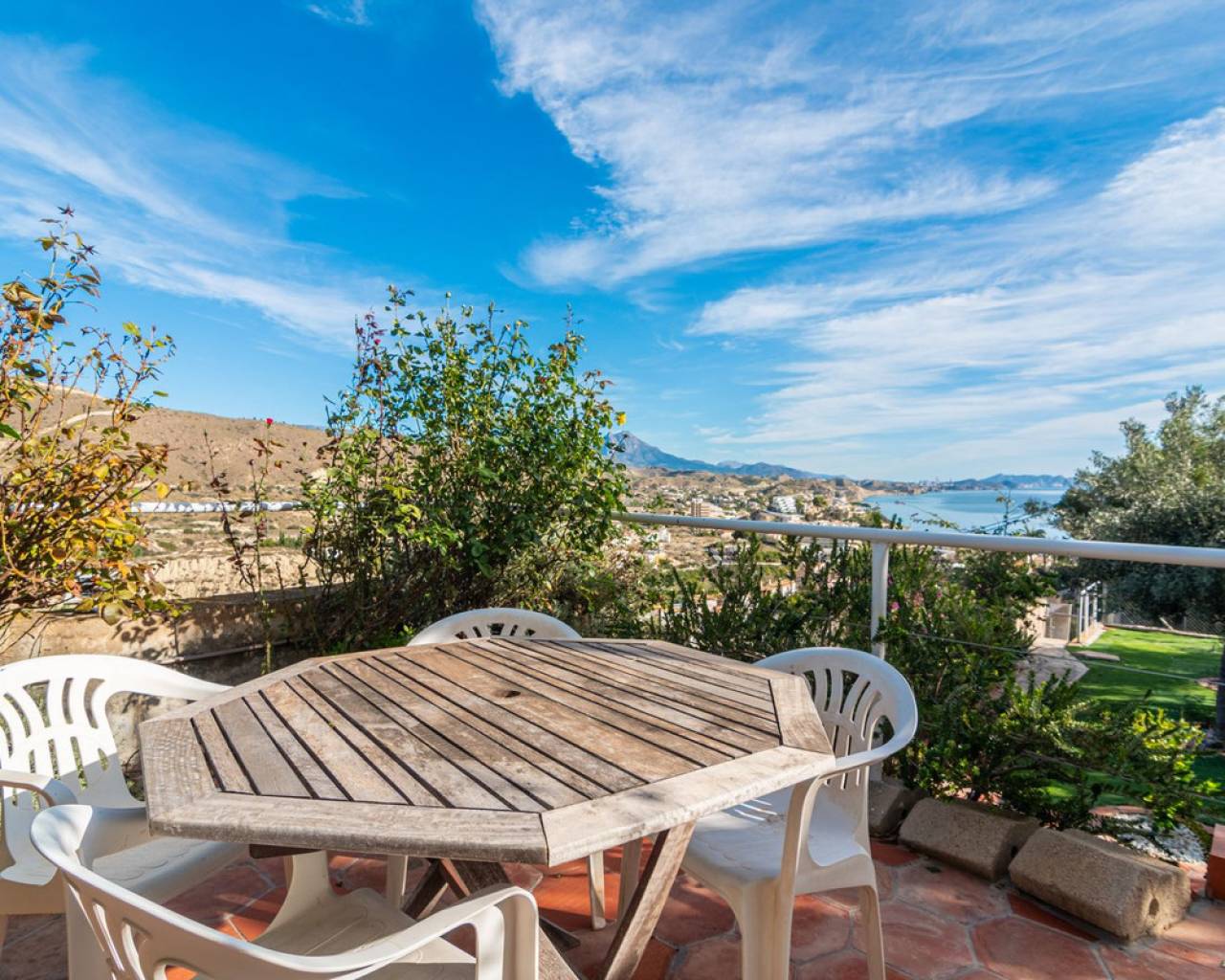En Virgen de la Merced, Campello Norte, se extiende esta espectacular finca en lo alto de una colina con impresionantes vistas del litoral mediterráneo tanto al norte como al sur. Villa Passiflora está a 20 km de Alicante y a 20 km de Finestrat al norte y a sólo 27 minutos del aeropuerto internacional de Alicante. La villa está a 1 km de la cala de arena "Cala Baeza" y a sólo 9 minutos del puerto deportivo de El Campello y de Playa Carrer la Mar. A 15 km del campo de golf más cercano. Villa Passiflora es única por su logrado diseño, su ubicación y entorno en la cima de una colina, los 2300 m2 de terreno plano con espacio para una cancha de tenis u otra villa y la privacidad absoluta que ofrece a sus propietarios. Se accede a la propiedad desde una calle residencial de sentido único de fácil acceso desde la N332 y la entrada a la propiedad y al estacionamiento se realiza a través de una puerta automatizada. La propiedad está construida en 3 niveles: El nivel principal y de acceso a la vivienda se compone de 5 áreas. El salón, el comedor, la cocina y el dormitorio principal son estancias generosas con techos altos y el salón y el comedor están separados por una chimenea. El dormitorio principal tiene un baño empotrado y un baño con ducha. Aseo separado también en este nivel. Amplias terrazas abiertas y acristaladas a las que se accede desde el salón. Vistas a la piscina y al mar desde este nivel. Nivel superior: recibidor, 2 dormitorios y un baño de buen tamaño con lavabo para él y para ella. Impresionantes vistas desde este nivel. Planta baja: salón-cocina-comedor diáfano, dormitorio doble, dormitorio de buen tamaño y sala de ocio. 2 baños en este nivel uno con ducha y otro con bañera y ducha. Garaje y trastero. Exteriores: Amplia parcela con jardines, terrazas y piscina de 56m2. Espacio para cancha de tenis o otras posibilidades de construcción. La propiedad tiene todas las orientaciones, pero las terrazas y la piscina están orientadas al sur. Ideal para una familia numerosa o aquellos que requieran o disfruten de espacio interior y exterior y maravillosas vistas panorámicas al mar. Disponible exclusivamente con López y Henderson
