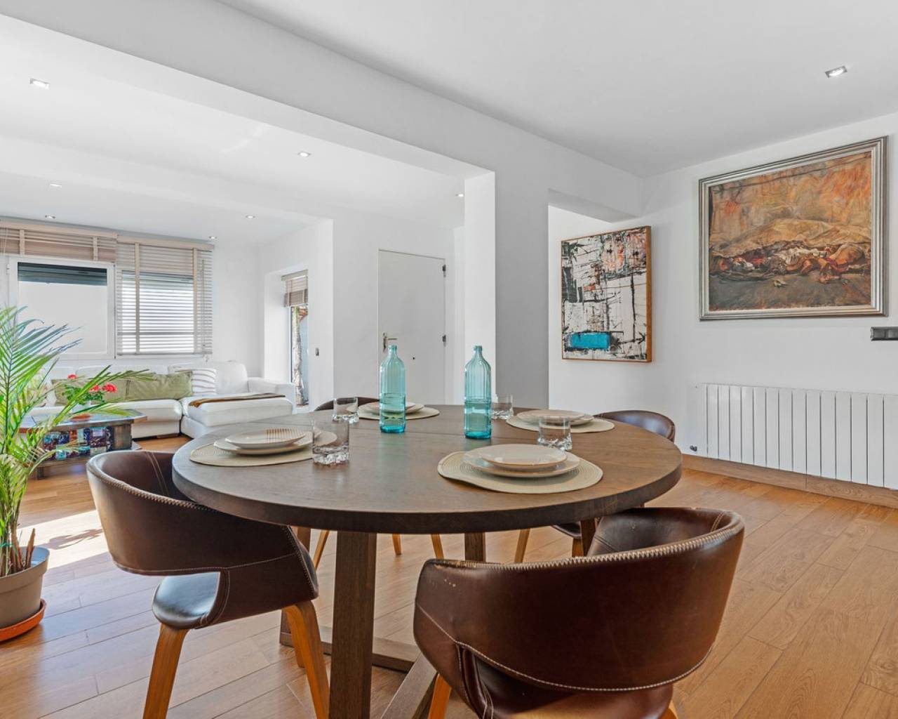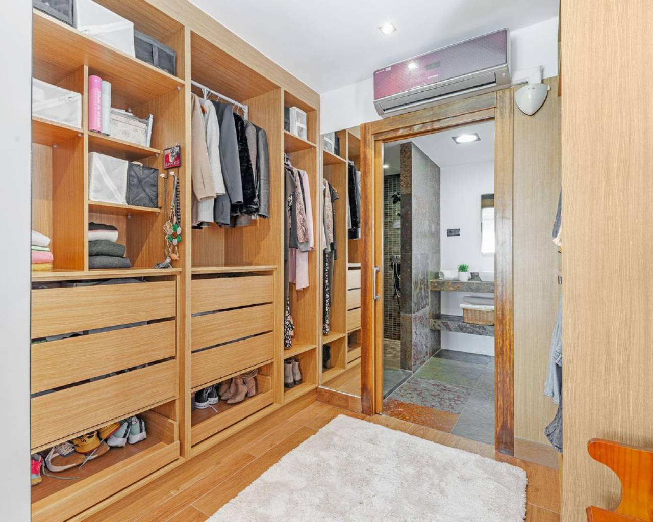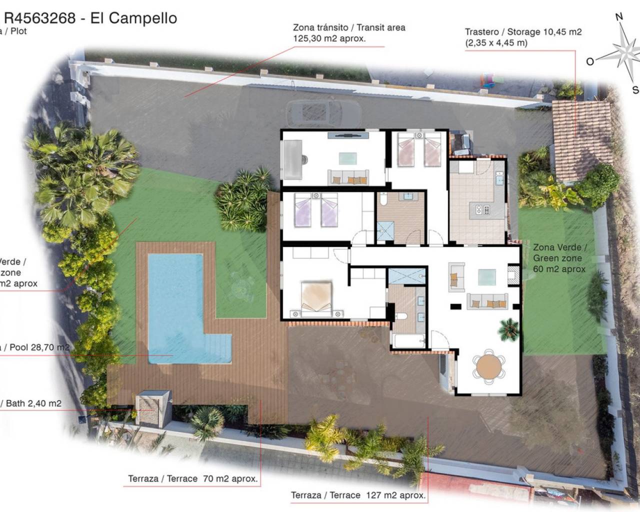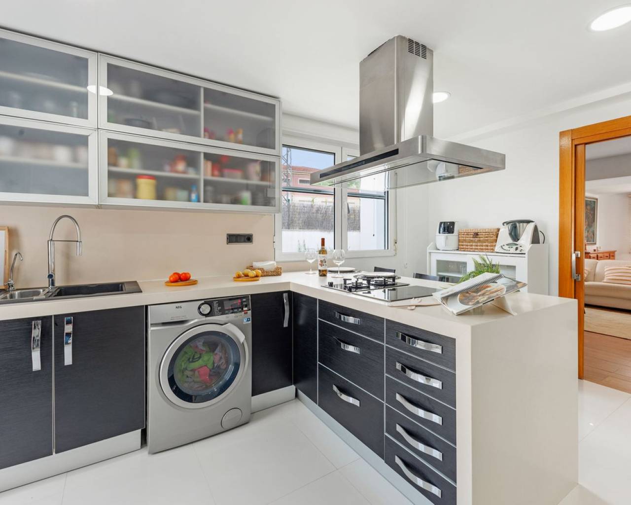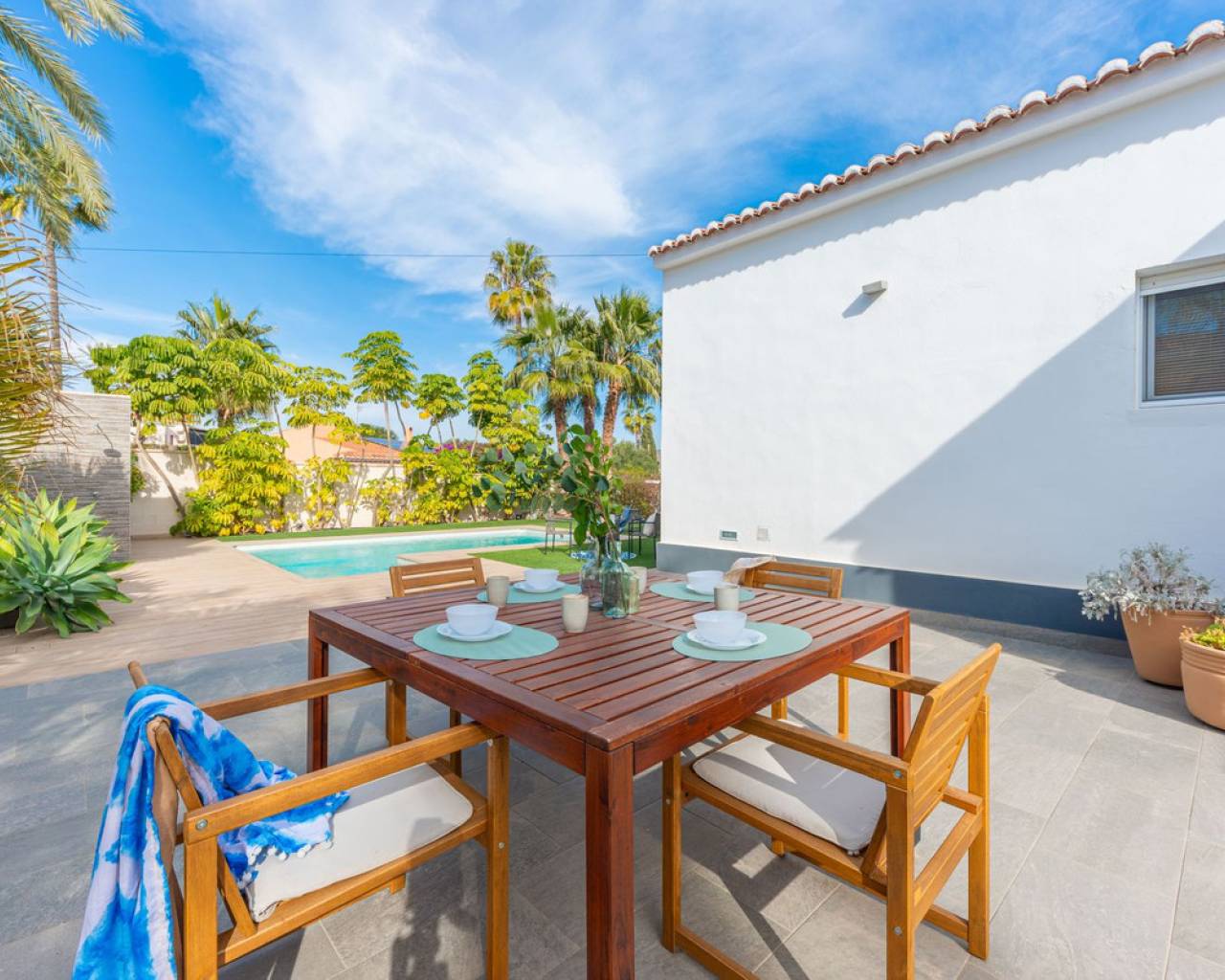 Cerca de la espectacular playa de Muchavista, a solo 20 minutos de la ciudad de Alicante y a 5 minutos del centro de El Campello, a poca distancia de servicios de tranvía y autobús, cerca de todas las comodidades, escuelas y conexiones de autopistas, se encuentra esta encantadora villa, toda en una planta y en una parcela llana de 727m2 con piscina y jardín paisajístico. La villa, de 3 dormitorios, está ubicada en una zona residencial consolidada y se encuentra a poca distancia a pie (10 minutos) de la playa de 6 km que cuenta con la bandera azul. Se accede a la villa por una tranquila carretera residencial de sentido único hasta la puerta de entrada automatizada. Esta propiedad orientada al sur se beneficia de una renovación integral y consta de un vestíbulo y 3 dormitorios, así como de otra habitación actualmente utilizada como estudio/oficina de 18m2. El salón comedor es espacioso (33m2) y cuenta con una chimenea de leña. La cocina es independiente y está equipada con electrodomésticos, también hay un área de desayuno justo al lado de la cocina principal. Los 3 dormitorios son dobles y el dormitorio principal cuenta con un vestidor y un baño en suite con doble lavabo, bañera y ducha a ras de suelo. Dos baños dentro de la casa y un aseo exterior junto a la atractiva piscina con forma de "L". 70m2 de terraza alrededor de la piscina, otros 127m2 de terraza exterior alrededor de la casa y 142 m2 de césped artificial creando un espacio exterior espectacular y de bajo mantenimiento. Entrada con estacionamiento para varios autos. Una propiedad impresionante en una excelente ubicación y renovada a un alto estándar.