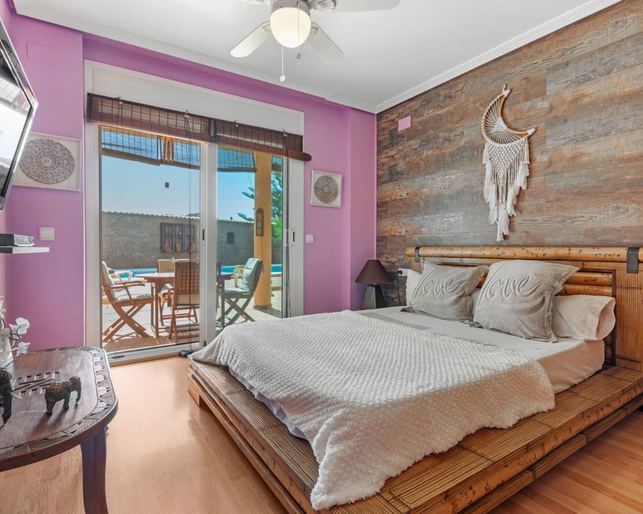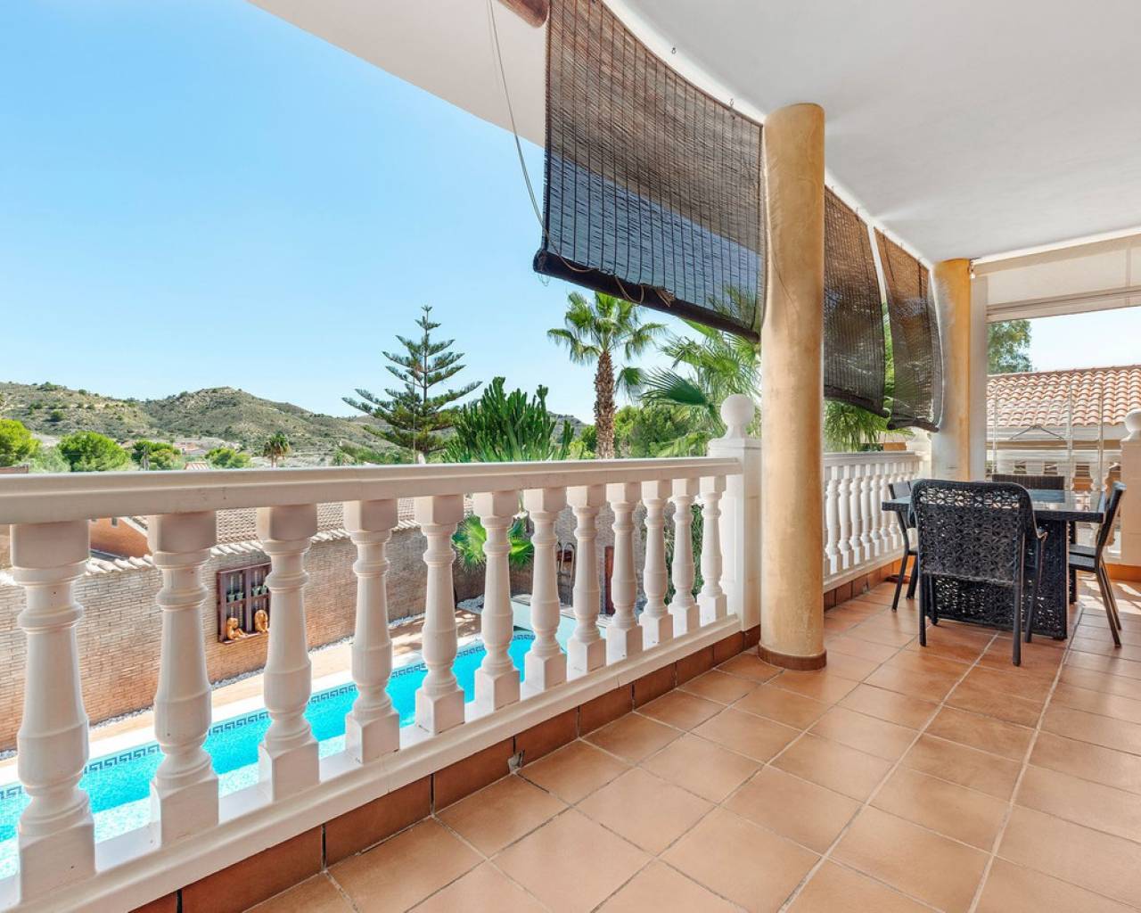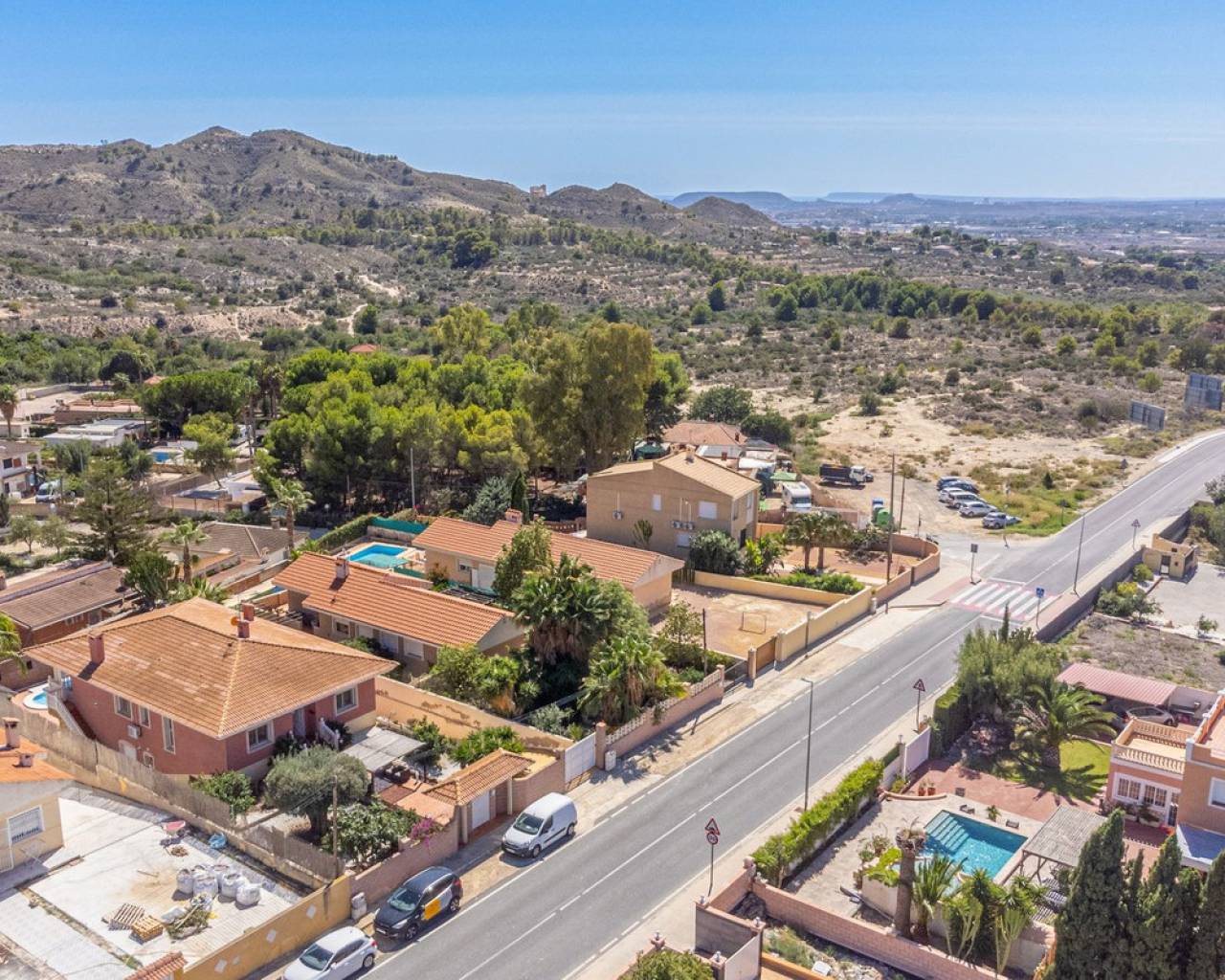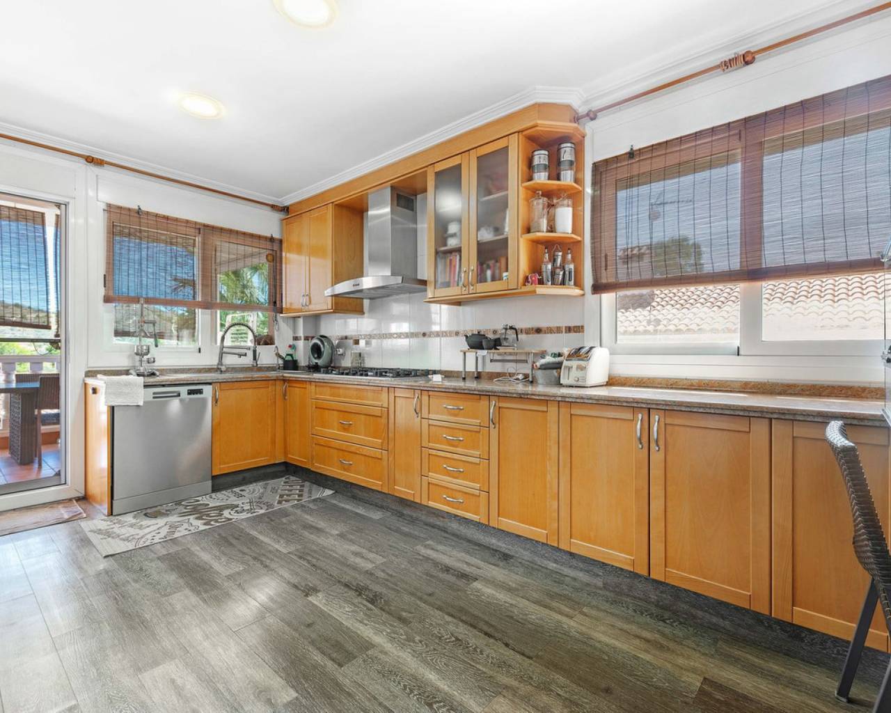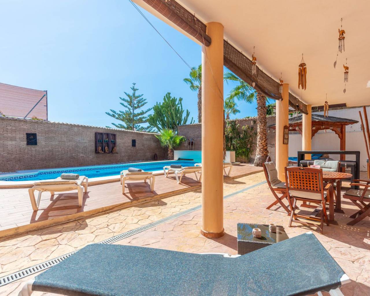 Situada en la codiciada zona de Partida Bonalba, Busot, entre el campo de golf y el encantador pueblo de Busot, se encuentra esta notable residencia: Villa Bali. Renovada a un alto nivel, ofrece más de 330 m² de espacio habitable. Situada en una parcela privada de más del doble de su tamaño, esta villa goza de fácil acceso al pueblo de Busot, a solo cinco minutos en coche, a 15 minutos de las playas vírgenes de El Campello-San Juan y a solo 25-30 minutos de Alicante y su aeropuerto internacional. El exterior cuenta con una piscina de generosas dimensiones, un gran jacuzzi cubierto por una pérgola de madera y otra pérgola a juego con una cama balinesa. La villa está rodeada de árboles y arbustos maduros, y un camino conduce a un garaje doble. La decoración interior está inspirada en la rica cultura de Bali, con muchos elementos cuidadosamente seleccionados que crean un ambiente único y relajante. Juntos, estos elementos ofrecen una experiencia de vida muy versátil y completa. La parte trasera de la villa se accede por la carretera hacia Busot, donde una puerta automatizada da acceso a un camino y un garaje para dos coches. La planta superior es el área principal de estar, con un salón-comedor espacioso con una estufa de leña y calefacción eléctrica dentro de las paredes para el invierno y aire acondicionado para el verano. Una cocina independiente, parcialmente equipada, de buen tamaño, se extiende desde el salón e incluye una despensa y un lavadero adyacente. Tanto el salón como la cocina tienen acceso directo a una amplia terraza cubierta orientada al sur, con vistas a la piscina y al campo montañoso en la distancia. En esta planta también se encuentran el recibidor, dos habitaciones dobles (una con armario empotrado y la más grande con vestidor y baño en suite), y un baño familiar independiente. En la planta baja, encontrarás tres habitaciones dobles adicionales, además de un baño familiar con ducha. Esta planta también incluye un salón, comedor, trastero y un garaje cerrado para dos vehículos. Desde aquí se tiene acceso directo a la terraza de la piscina. Externamente, la villa cuenta con una piscina con cubierta automatizada y una terraza de 100 m² que rodea la piscina, junto con un jacuzzi exterior y una cama de día. Esta villa orientada al sur es ideal para una familia, ofreciendo un amplio espacio para acomodar a los invitados, permitiéndoles disfrutar tanto del interior como del exterior de Villa Bali.