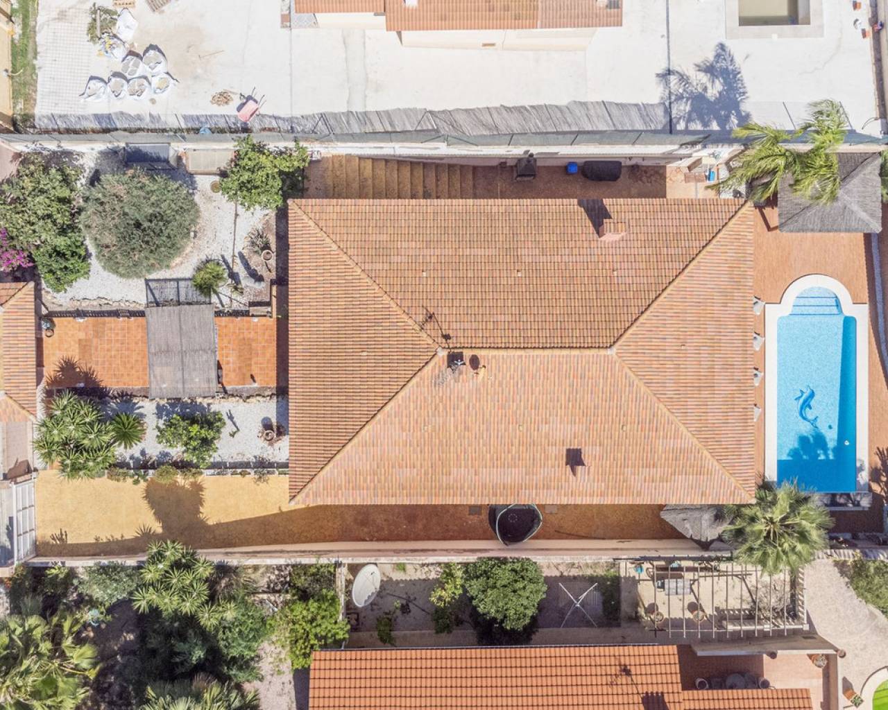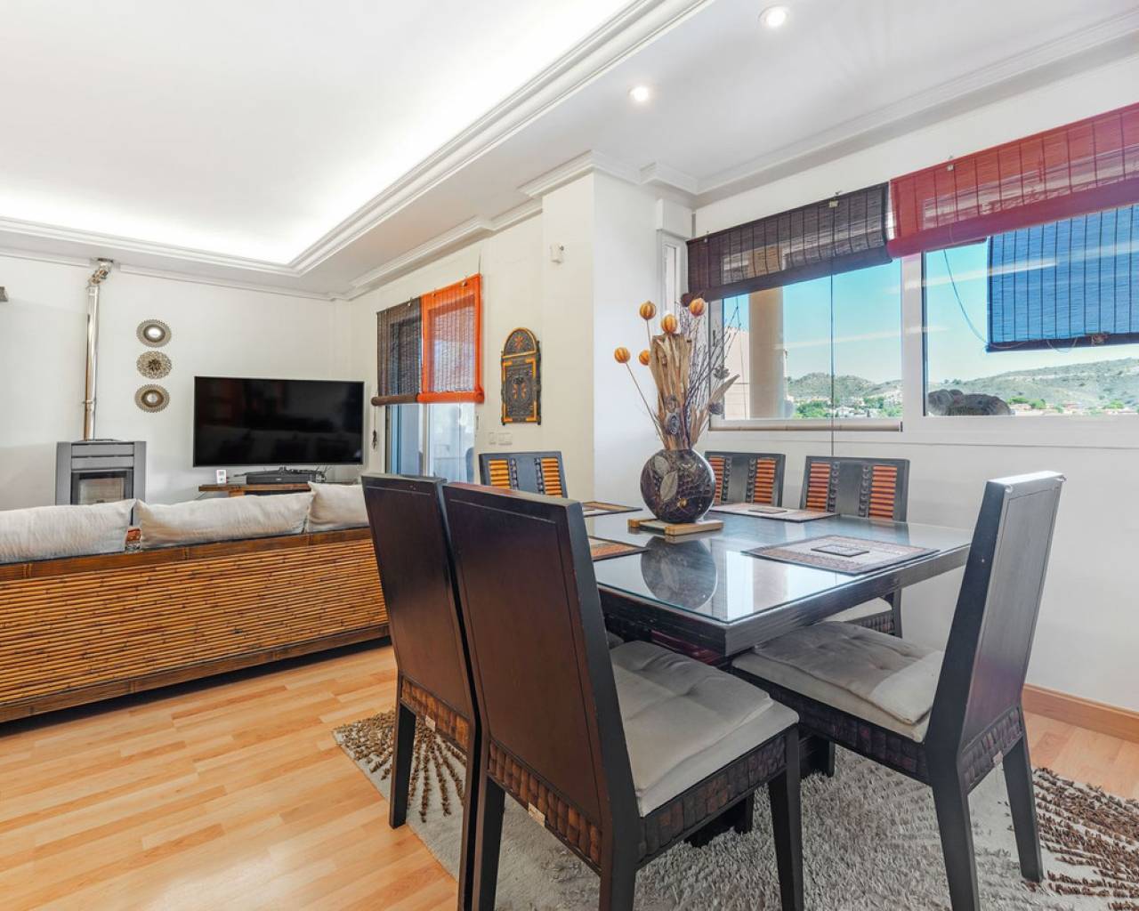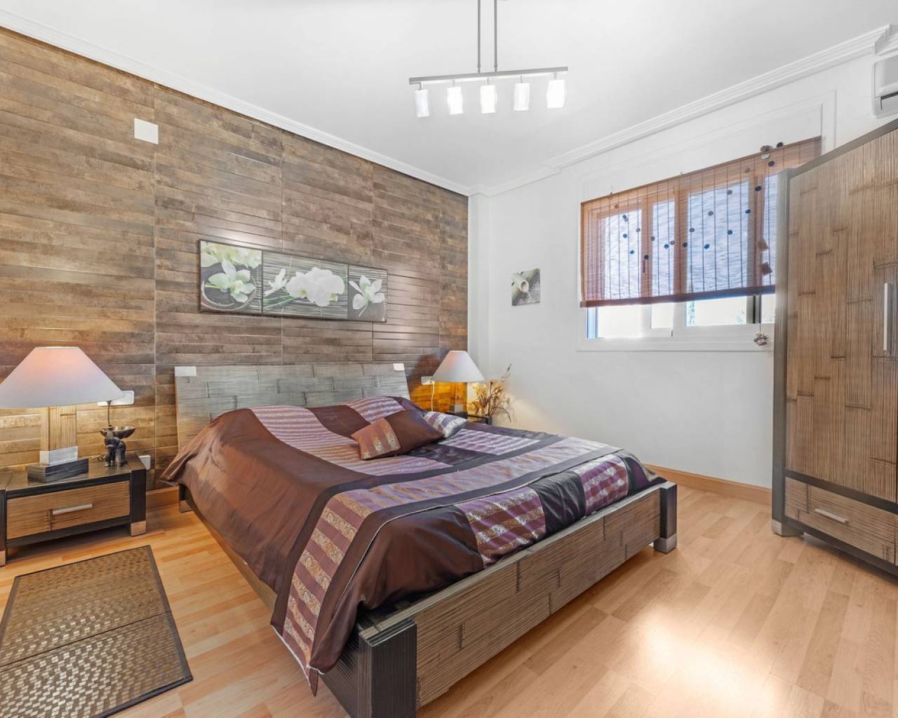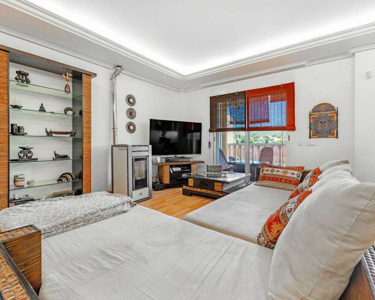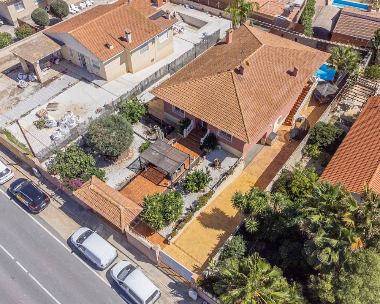 Situada en la codiciada zona de Partida Bonalba, Busot, entre el campo de golf y el encantador pueblo de Busot, se encuentra esta notable residencia: Villa Bali. Renovada a un alto nivel, ofrece más de 330 m² de espacio habitable. Situada en una parcela privada de más del doble de su tamaño, esta villa goza de fácil acceso al pueblo de Busot, a solo cinco minutos en coche, a 15 minutos de las playas vírgenes de El Campello-San Juan y a solo 25-30 minutos de Alicante y su aeropuerto internacional. El exterior cuenta con una piscina de generosas dimensiones, un gran jacuzzi cubierto por una pérgola de madera y otra pérgola a juego con una cama balinesa. La villa está rodeada de árboles y arbustos maduros, y un camino conduce a un garaje doble. La decoración interior está inspirada en la rica cultura de Bali, con muchos elementos cuidadosamente seleccionados que crean un ambiente único y relajante. Juntos, estos elementos ofrecen una experiencia de vida muy versátil y completa. La parte trasera de la villa se accede por la carretera hacia Busot, donde una puerta automatizada da acceso a un camino y un garaje para dos coches. La planta superior es el área principal de estar, con un salón-comedor espacioso con una estufa de leña y calefacción eléctrica dentro de las paredes para el invierno y aire acondicionado para el verano. Una cocina independiente, parcialmente equipada, de buen tamaño, se extiende desde el salón e incluye una despensa y un lavadero adyacente. Tanto el salón como la cocina tienen acceso directo a una amplia terraza cubierta orientada al sur, con vistas a la piscina y al campo montañoso en la distancia. En esta planta también se encuentran el recibidor, dos habitaciones dobles (una con armario empotrado y la más grande con vestidor y baño en suite), y un baño familiar independiente. En la planta baja, encontrarás tres habitaciones dobles adicionales, además de un baño familiar con ducha. Esta planta también incluye un salón, comedor, trastero y un garaje cerrado para dos vehículos. Desde aquí se tiene acceso directo a la terraza de la piscina. Externamente, la villa cuenta con una piscina con cubierta automatizada y una terraza de 100 m² que rodea la piscina, junto con un jacuzzi exterior y una cama de día. Esta villa orientada al sur es ideal para una familia, ofreciendo un amplio espacio para acomodar a los invitados, permitiéndoles disfrutar tanto del interior como del exterior de Villa Bali.