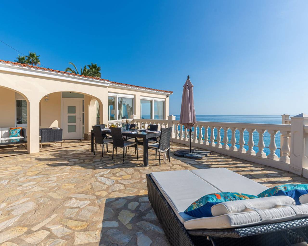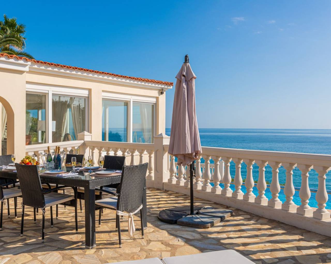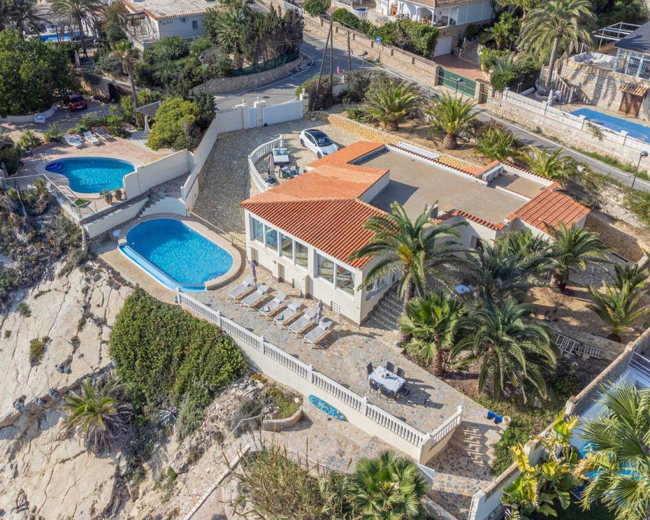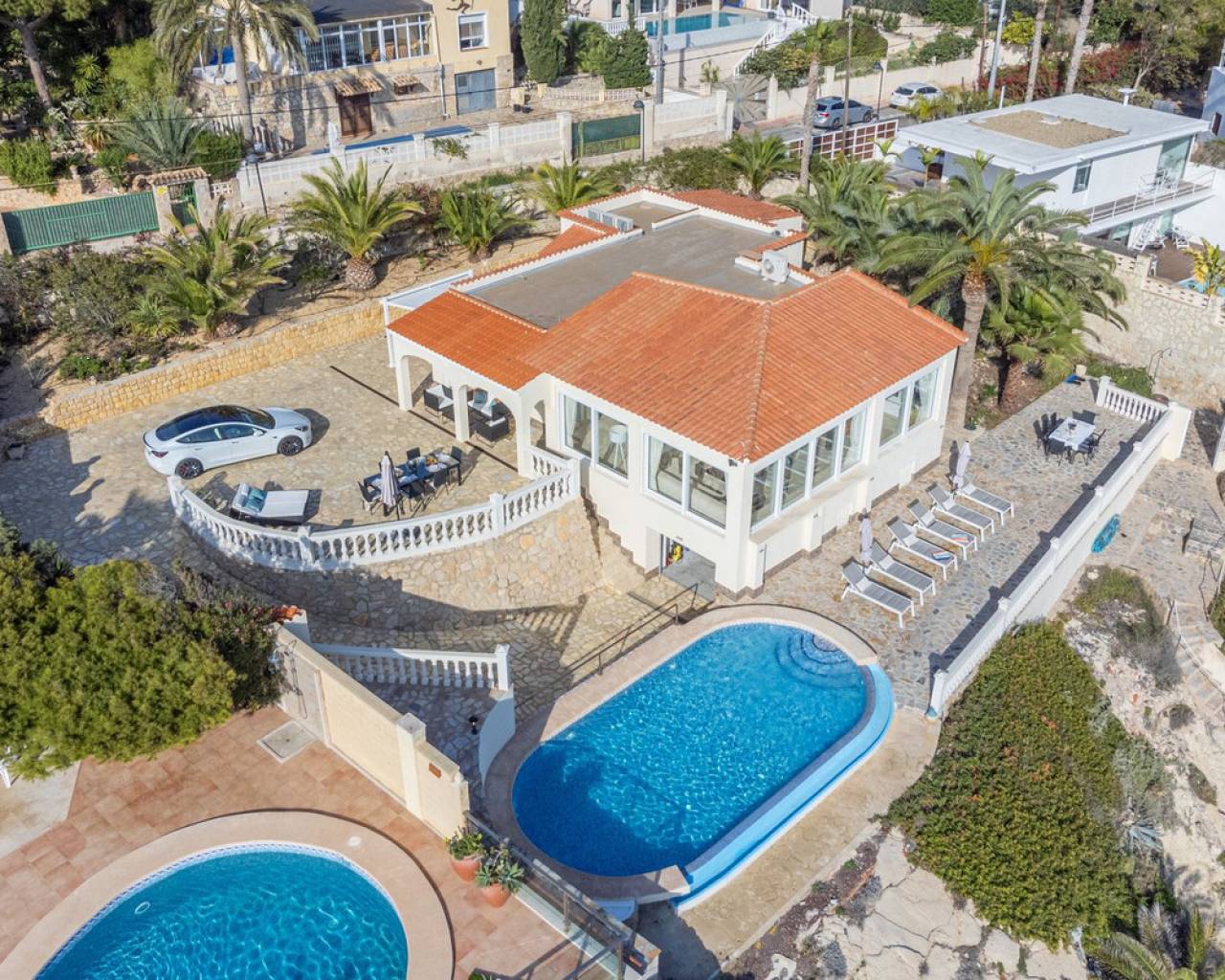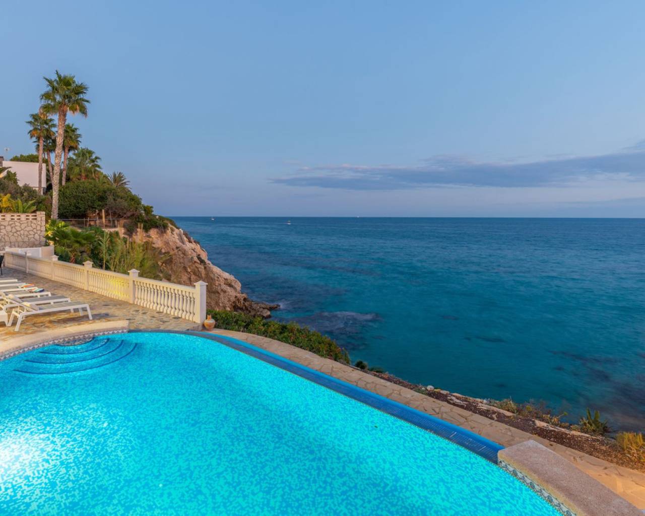 Excepcional Villa Frente al Mar en la Costa Blanca Norte con Escalera Privada a la Playa Ubicada en primera línea de la Costa Blanca Norte, en la codiciada zona residencial de Coveta Fumá, esta excepcional villa cuenta con más de 220 m² y se sitúa en una parcela privada que multiplica por cinco su tamaño. Estratégicamente posicionada entre dos idílicas calas y sobre una tercera, se encuentra a poca distancia en coche del encantador pueblo pesquero de Villajoyosa al norte y de la pintoresca ciudad costera de El Campello al sur. Su ubicación privilegiada ofrece impresionantes vistas al mar y la montaña, además de una escalera privada que conduce directamente a una cala de playa aislada. La tranquila cala es ideal para tomar el sol o nadar lejos de las multitudes. Además, la Villa Bahía Verdosa está convenientemente situada cerca del centro comercial local de Coveta Fumá. Su proximidad a Alicante, a tan solo 25 minutos, garantiza un fácil acceso al aeropuerto internacional, dos campos de golf y un puerto deportivo. Acceso y Privacidad La villa cuenta con un acceso a través de una puerta automática deslizante que da paso a un camino privado desde una tranquila calle residencial sin salida en Coveta Fumá. Diseño y Distribución Ubicada en una parcela de esquina, esta villa de una sola planta (con garaje en el nivel inferior) se integra perfectamente en el exuberante paisaje mediterráneo. La propiedad fue completamente renovada en 2019 con los más altos estándares, y nuevamente actualizada en 2023. Durante la renovación, se mantuvo la estructura original, pero todo lo demás fue reconstruido por completo. Mejoras realizadas:** - Aislamiento de paredes y techo. - Sustitución de ventanas, puertas, portón de entrada y puerta del garaje. - Instalación de nuevos suelos y tejado. - Reforma integral de sistemas eléctricos, fontanería, jardín y terrazas. - Remodelación completa de baños, cocina y cocina exterior. - Diseño interior y amueblamiento con materiales de alta calidad para asegurar comodidad y estilo. Detalles Interiores Planta Principal Un espacioso salón-comedor de planta abierta de aproximadamente 76 m² incluye dos zonas de estar y un comedor. Amplios ventanales inundan el espacio de luz natural, destacando las impresionantes vistas de la terraza y el mar Mediterráneo. Junto al salón se encuentra una terraza cubierta tipo "naya" (15 m²) orientada al oeste, ideal para disfrutar del sol de la tarde o el invierno. Cocina Una cocina de última generación totalmente equipada, con electrodomésticos de alta gama, perfecta para los amantes de la gastronomía. Dormitorios - Tres dormitorios dobles con armarios empotrados. - El dormitorio principal ofrece impresionantes vistas al mar y un baño en suite con doble lavabo. Planta Inferior - Garaje subterráneo con espacio para un coche, motocicleta, moto acuática y almacenamiento adicional. - Aparcamiento privado para varios vehículos dentro de la propiedad. Características Exteriores - Zona de barbacoa cubierta al aire libre (11 m²). - Jardines maduros y paisajísticos con numerosas palmeras y áreas de terraza para comer, relajarse y tomar el sol. - Impresionante terraza de piscina de 126 m² con una piscina infinita de 38 m² que ofrece vistas espectaculares. - Acceso privado a una cala de playa aislada. Servicios Adicionales - Sistema de alarma para mayor seguridad. - Aire acondicionado frío/calor en toda la vivienda. - Mobiliario, accesorios y electrodomésticos de lujo incluidos en el precio. Orientación Su La villa goza de una orientación sur que garantiza abundante luz natural durante todo el día. Ideal para Vivir el Mediterráneo Esta villa es la elección perfecta para una familia que desee disfrutar de lo mejor del estilo de vida mediterráneo, combinando lujo, privacidad y un entorno costero espectacular. También es ideal para personas con movilidad reducida y residentes mayores.