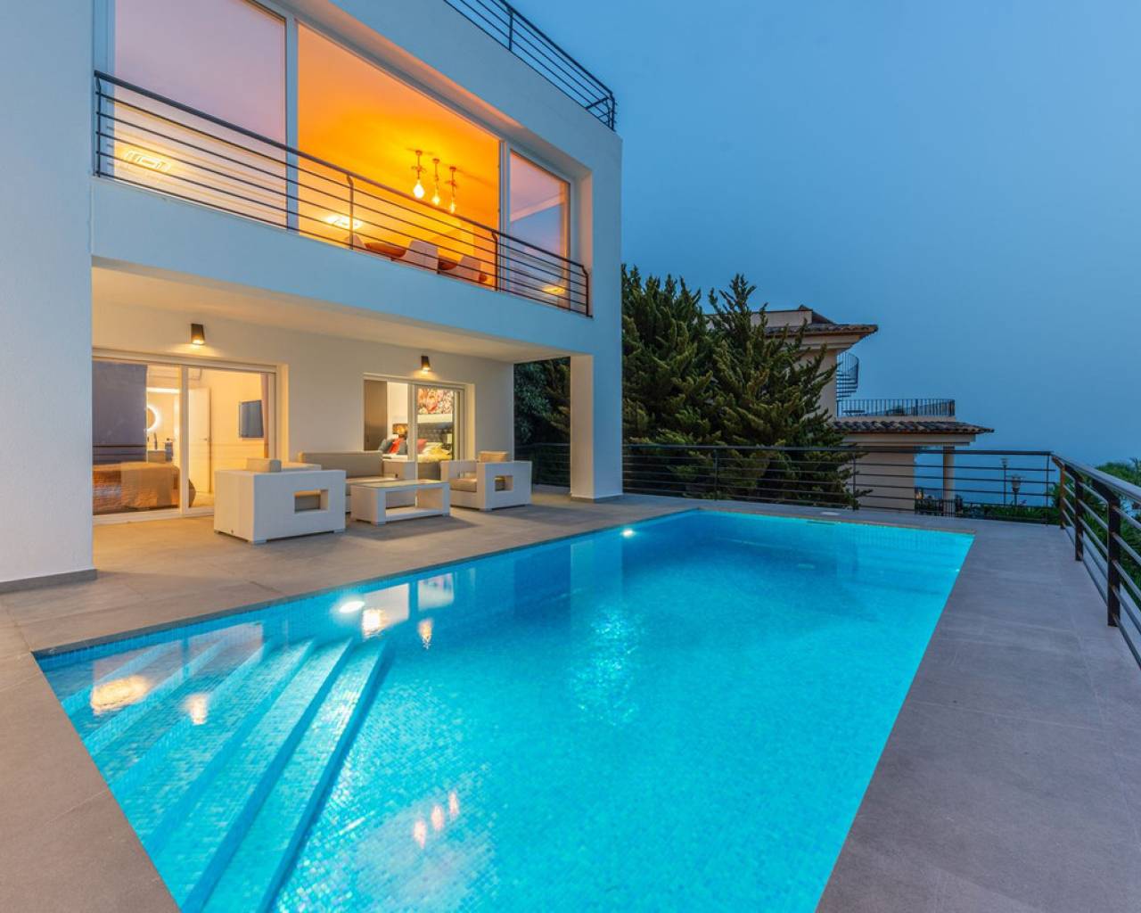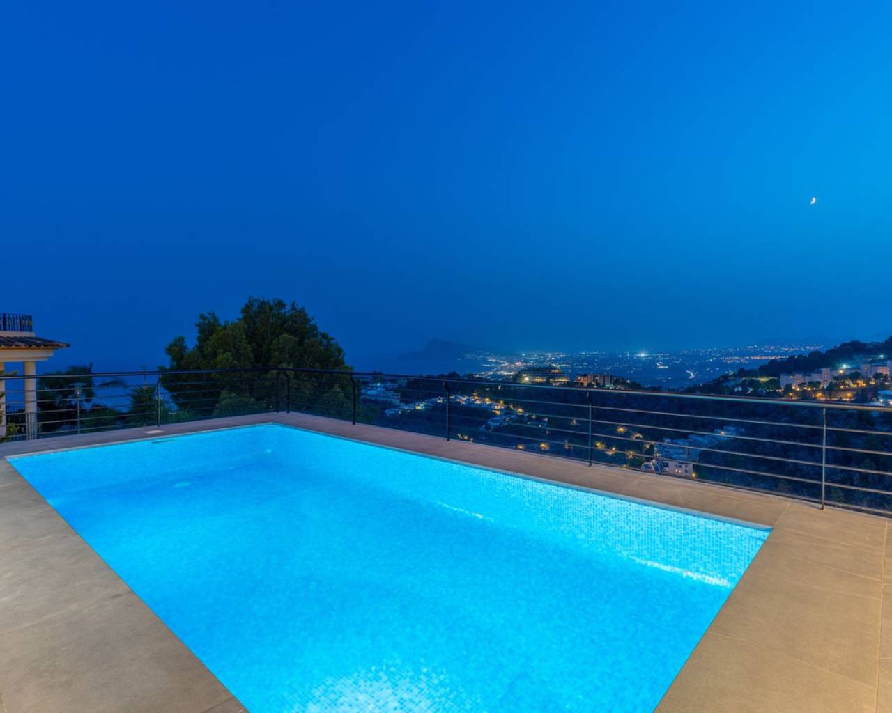 VILLA CONTEMPORÁNEA CON VISTAS PANORÁMICAS EN ALTEA HILLS Esta villa de lujo en Altea Hills ha sido completamente reformada y ampliada con los más altos estándares, presentándose en un estado absolutamente impecable tanto en su interior como en el exterior. Cada detalle ha sido cuidadosamente diseñado para ofrecer confort moderno, elegancia y unas vistas inmejorables de la bahía de Altea, el mar Mediterráneo y las montañas circundantes. ESPACIOS INTERIORES Distribuida en tres plantas, la vivienda combina amplitud, luminosidad y acabados contemporáneos. El salón principal, de diseño abierto, conecta con una moderna cocina totalmente equipada y con acceso directo a amplias terrazas. Grandes ventanales permiten disfrutar de las impresionantes vistas desde casi cualquier estancia. La villa cuenta con varios dormitorios en suite, armarios empotrados, climatización frío/calor y un diseño elegante con materiales de primera calidad. EXTERIORES Y JARDÍN La zona exterior se ha concebido como un auténtico espacio de ocio y relax. La villa destaca por sus grandes terrazas y la nueva zona de cocina-comedor exterior cubierta junto a la piscina, ideal para disfrutar todo el año del clima mediterráneo. El jardín, completamente ajardinado, incluye césped artificial, un área de juegos con cama elástica y una casa de árbol de madera, creando un ambiente perfecto para familias. La piscina privada se abre al paisaje, ofreciendo un entorno único para disfrutar de las vistas al mar y la costa. Durante el día se aprecian panorámicas espectaculares y, por la noche, la bahía de Altea iluminada crea un ambiente mágico y exclusivo. Varias terrazas rodean la casa, aportando rincones para el relax o el entretenimiento. SEGURIDAD Y PRIVACIDAD Altea Hills es una de las urbanizaciones más exclusivas de la Costa Blanca y ofrece máxima tranquilidad gracias a su acceso controlado. La entrada principal cuenta con una barrera y personal de seguridad que regula quién puede acceder, garantizando así la privacidad y la seguridad de los residentes las 24 horas del día. EXTRAS Y COMODIDADES Parcela privada de 1.024 m² Climatización frío/calor y persianas eléctricas Amplias terrazas cubiertas y descubiertas Zona de barbacoa y cocina exterior Garaje privado para varios vehículos UNA OPORTUNIDAD ÚNICA Esta villa combina lujo, privacidad, seguridad y un diseño moderno con unas vistas incomparables al Mediterráneo. Una propiedad impecable, perfecta tanto como residencia habitual como casa de vacaciones en uno de los enclaves más prestigiosos de la Costa Blanca.