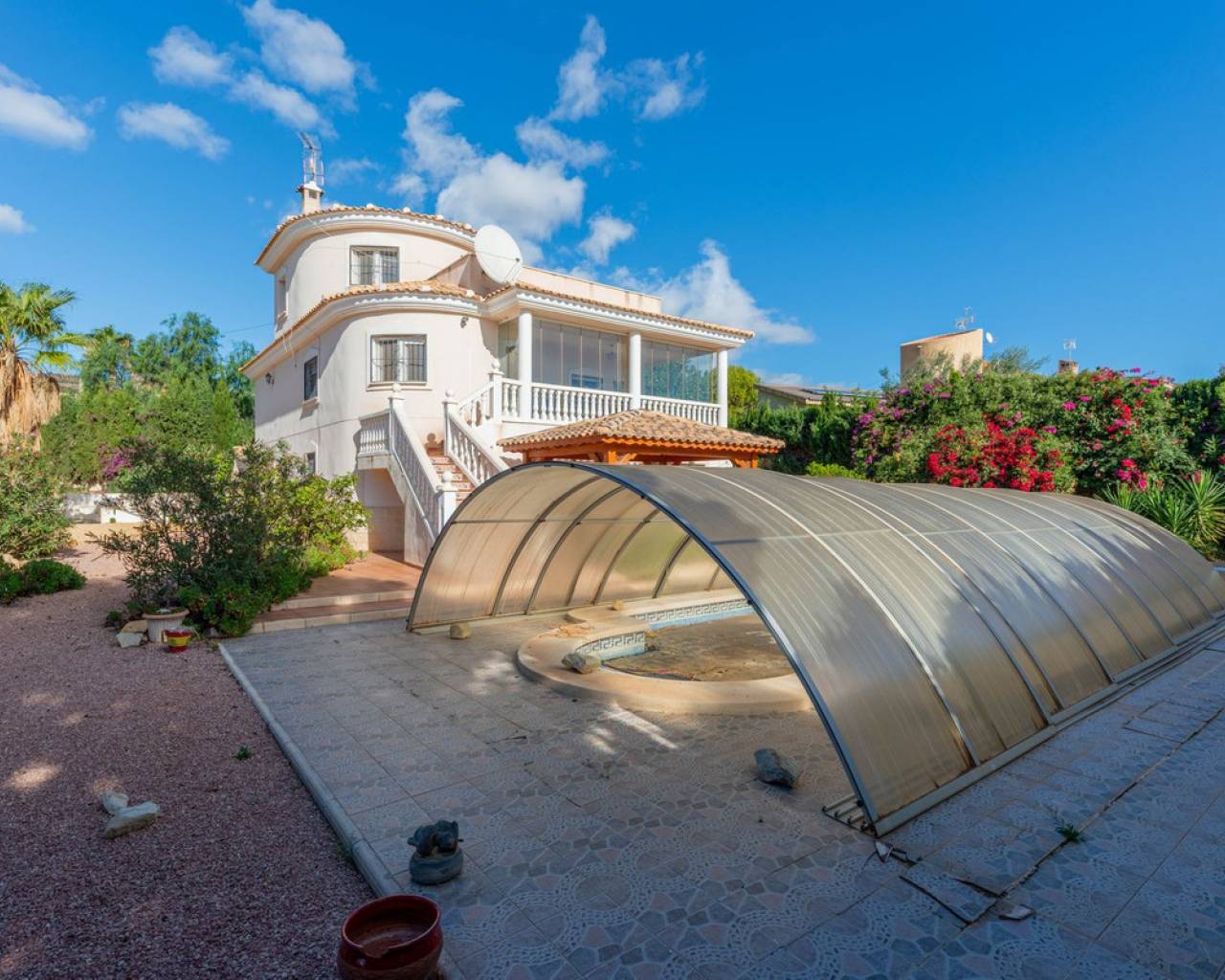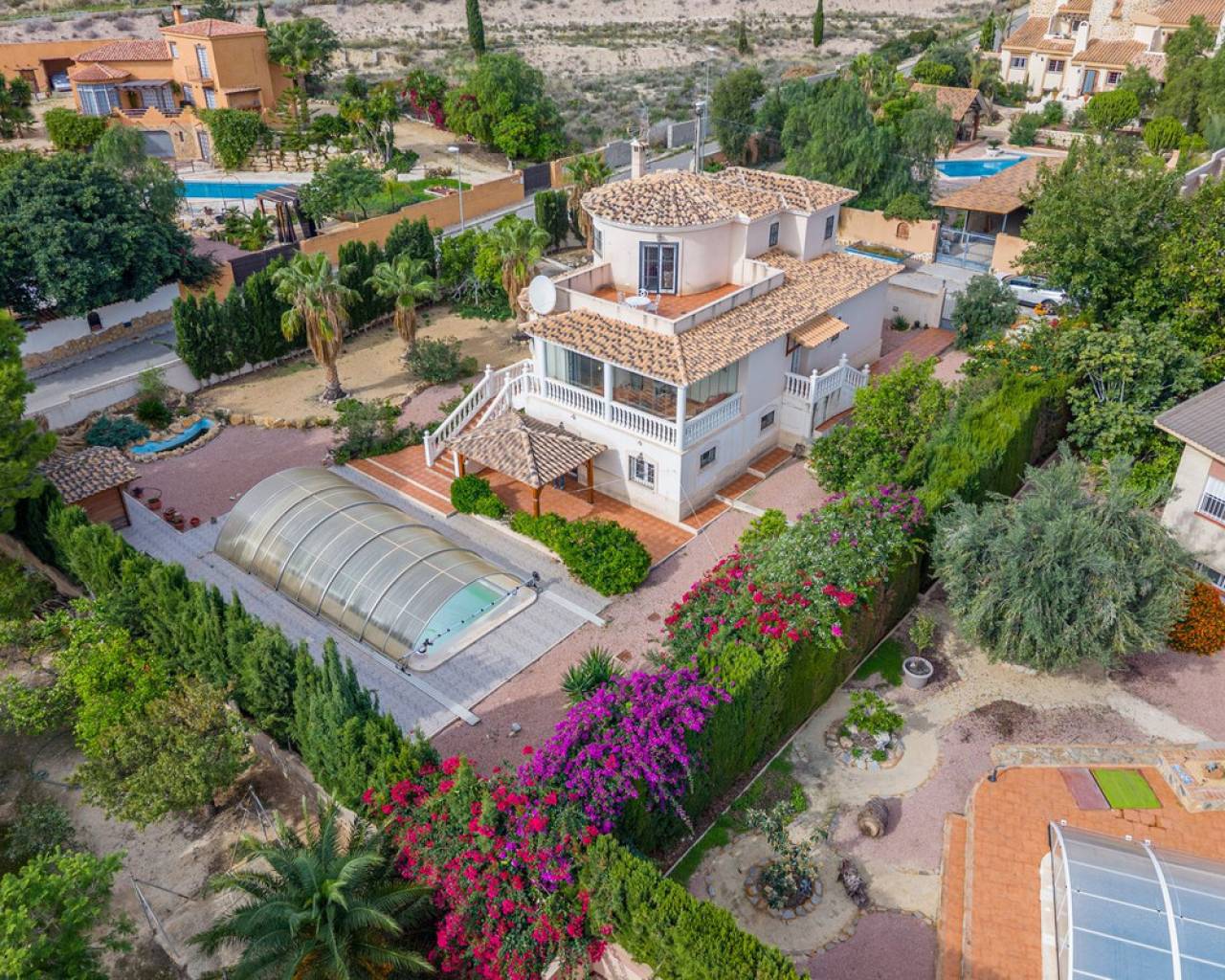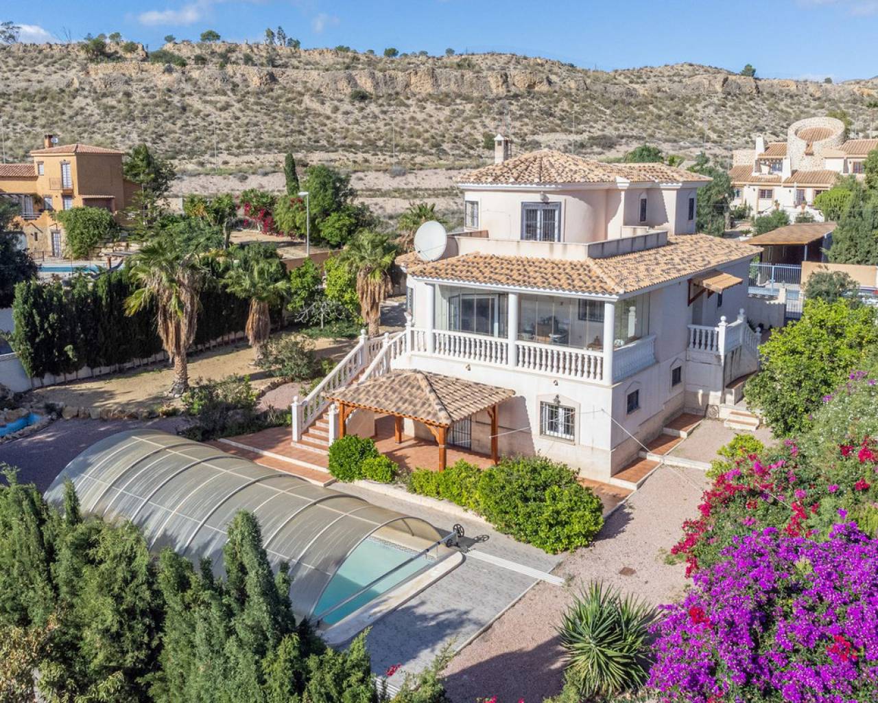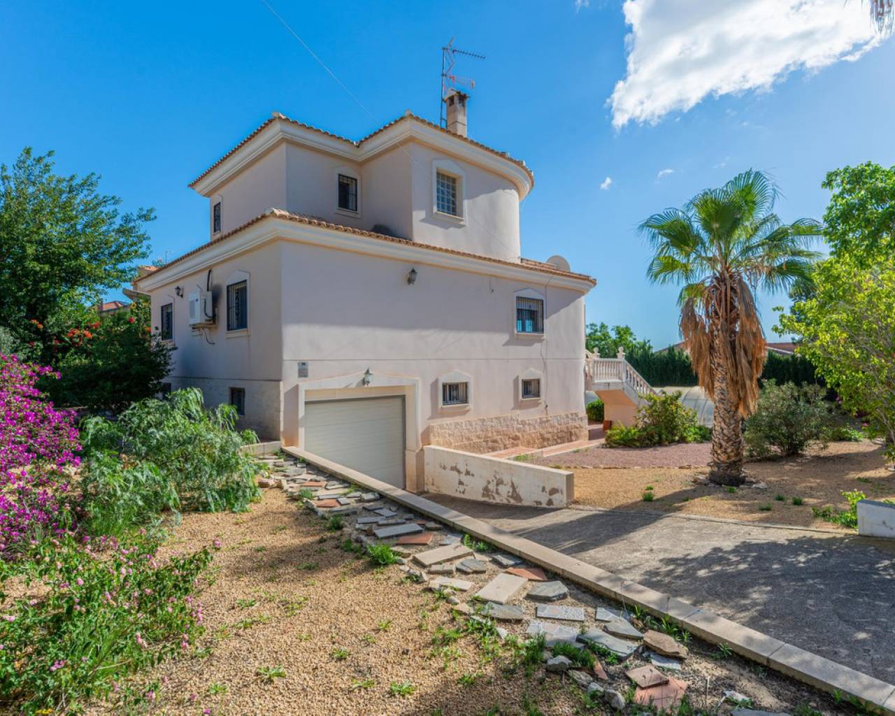 A tan solo unos minutos en coche del encantador pueblo de Muchamiel, y estratégicamente situada entre la costa de El Campello, el prestigioso campo de golf de Bonalba y el pintoresco pueblo de montaña de Busot, esta magnífica villa de cinco dormitorios ofrece espacio, privacidad y un entorno natural privilegiado. Ubicada en la tranquila zona residencial de Río Park, la propiedad se encuentra en una parcela esquinera de 1.114 m² rodeada de jardines mediterráneos consolidados. Dispone de una piscina privada cubierta y amplias terrazas, perfectas para disfrutar del clima soleado de la Costa Blanca. A tan solo 20 minutos del aeropuerto de Alicante y a 160 metros sobre el nivel del mar, la villa ofrece agradables vistas verdes hacia la costa y una excelente privacidad. Construida en 2007, esta vivienda unifamiliar combina el encanto del estilo mediterráneo tradicional con una orientación sur y espacios interiores amplios y luminosos, ideales para disfrutar cómodamente durante todo el año. Distribución Planta principal: Recibidor Salón-comedor con chimenea y cocina americana Dos dormitorios dobles con armarios empotrados, uno con baño en suite (bañera de esquina y doble lavabo) Baño familiar con ducha Acceso directo desde el salón a la terraza acristalada con vistas al jardín y la piscina Planta baja: Amplio salón o sala de juegos con salida directa al jardín Dos dormitorios dobles Baño con ducha Garaje y zona de almacenaje Esta planta ofrece un gran potencial para convertirse en un apartamento independiente de invitados, gracias a su distribución, acceso directo al jardín y estancias amplias. Planta alta: Dormitorio principal con vestidor independiente Baño en suite con bañera de esquina y doble lavabo Terraza privada con vistas panorámicas del entorno Exteriores La zona exterior cuenta con áreas de grava y terrazas, vegetación mediterránea consolidada con árboles, arbustos y frutales, y una piscina con cubierta retráctil que actualmente requiere trabajos de mantenimiento y reparación, al igual que la pequeña escalera exterior que da acceso a la vivienda. El precio de venta refleja estas circunstancias, lo que convierte la propiedad en una excelente oportunidad para personalizarla y aumentar su valor con una inversión mínima. Otras características Aire acondicionado (frío/calor) Chimenea en el salón Parcela esquinera con máxima privacidad Ideal para: Una familia que busque espacio y comodidad, o para quienes deseen crear un apartamento independiente para invitados o alquiler. Perfecta como vivienda habitual, a solo 15 minutos de colegios y servicios, o como segunda residencia o inversión en una zona tranquila y bien comunicada. La propiedad se encuentra actualmente en proceso de herencia, por lo que no es adecuada para quienes necesiten ocuparla de forma inmediata. No obstante, la situación está completamente documentada y en trámite, lo que la convierte en una oportunidad atractiva para quienes puedan esperar hasta la finalización del proceso.