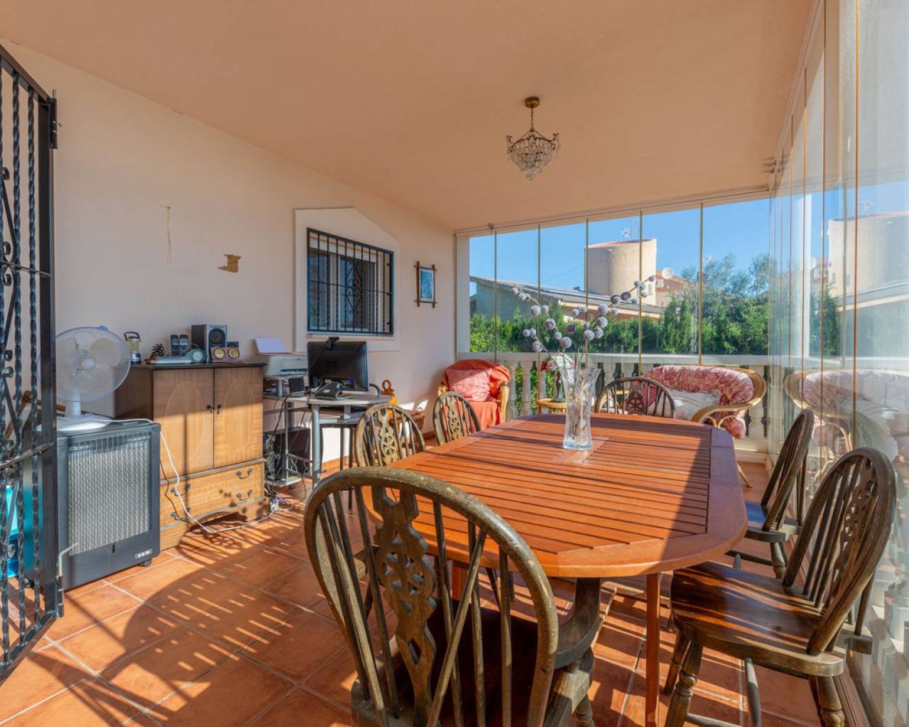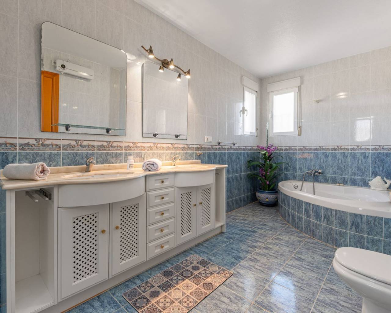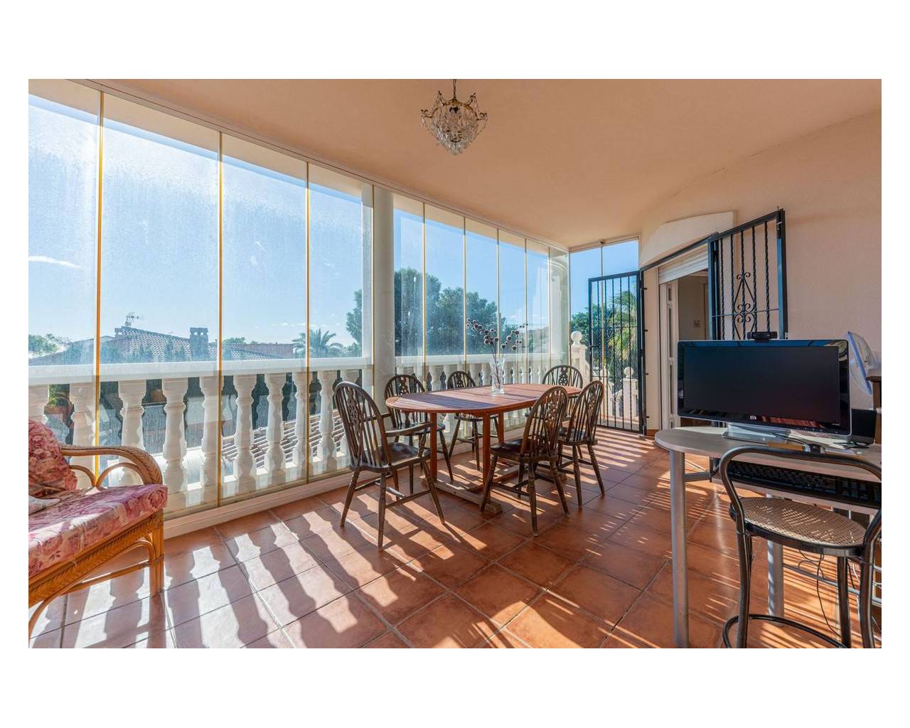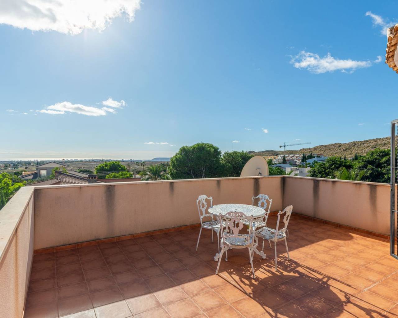 A tan solo unos minutos en coche del encantador pueblo de Muchamiel, y estratégicamente situada entre la costa de El Campello, el prestigioso campo de golf de Bonalba y el pintoresco pueblo de montaña de Busot, esta magnífica villa de cinco dormitorios ofrece espacio, privacidad y un entorno natural privilegiado. Ubicada en la tranquila zona residencial de Río Park, la propiedad se encuentra en una parcela esquinera de 1.114 m² rodeada de jardines mediterráneos consolidados. Dispone de una piscina privada cubierta y amplias terrazas, perfectas para disfrutar del clima soleado de la Costa Blanca. A tan solo 20 minutos del aeropuerto de Alicante y a 160 metros sobre el nivel del mar, la villa ofrece agradables vistas verdes hacia la costa y una excelente privacidad. Construida en 2007, esta vivienda unifamiliar combina el encanto del estilo mediterráneo tradicional con una orientación sur y espacios interiores amplios y luminosos, ideales para disfrutar cómodamente durante todo el año. Distribución Planta principal: Recibidor Salón-comedor con chimenea y cocina americana Dos dormitorios dobles con armarios empotrados, uno con baño en suite (bañera de esquina y doble lavabo) Baño familiar con ducha Acceso directo desde el salón a la terraza acristalada con vistas al jardín y la piscina Planta baja: Amplio salón o sala de juegos con salida directa al jardín Dos dormitorios dobles Baño con ducha Garaje y zona de almacenaje Esta planta ofrece un gran potencial para convertirse en un apartamento independiente de invitados, gracias a su distribución, acceso directo al jardín y estancias amplias. Planta alta: Dormitorio principal con vestidor independiente Baño en suite con bañera de esquina y doble lavabo Terraza privada con vistas panorámicas del entorno Exteriores La zona exterior cuenta con áreas de grava y terrazas, vegetación mediterránea consolidada con árboles, arbustos y frutales, y una piscina con cubierta retráctil que actualmente requiere trabajos de mantenimiento y reparación, al igual que la pequeña escalera exterior que da acceso a la vivienda. El precio de venta refleja estas circunstancias, lo que convierte la propiedad en una excelente oportunidad para personalizarla y aumentar su valor con una inversión mínima. Otras características Aire acondicionado (frío/calor) Chimenea en el salón Parcela esquinera con máxima privacidad Ideal para: Una familia que busque espacio y comodidad, o para quienes deseen crear un apartamento independiente para invitados o alquiler. Perfecta como vivienda habitual, a solo 15 minutos de colegios y servicios, o como segunda residencia o inversión en una zona tranquila y bien comunicada. La propiedad se encuentra actualmente en proceso de herencia, por lo que no es adecuada para quienes necesiten ocuparla de forma inmediata. No obstante, la situación está completamente documentada y en trámite, lo que la convierte en una oportunidad atractiva para quienes puedan esperar hasta la finalización del proceso.