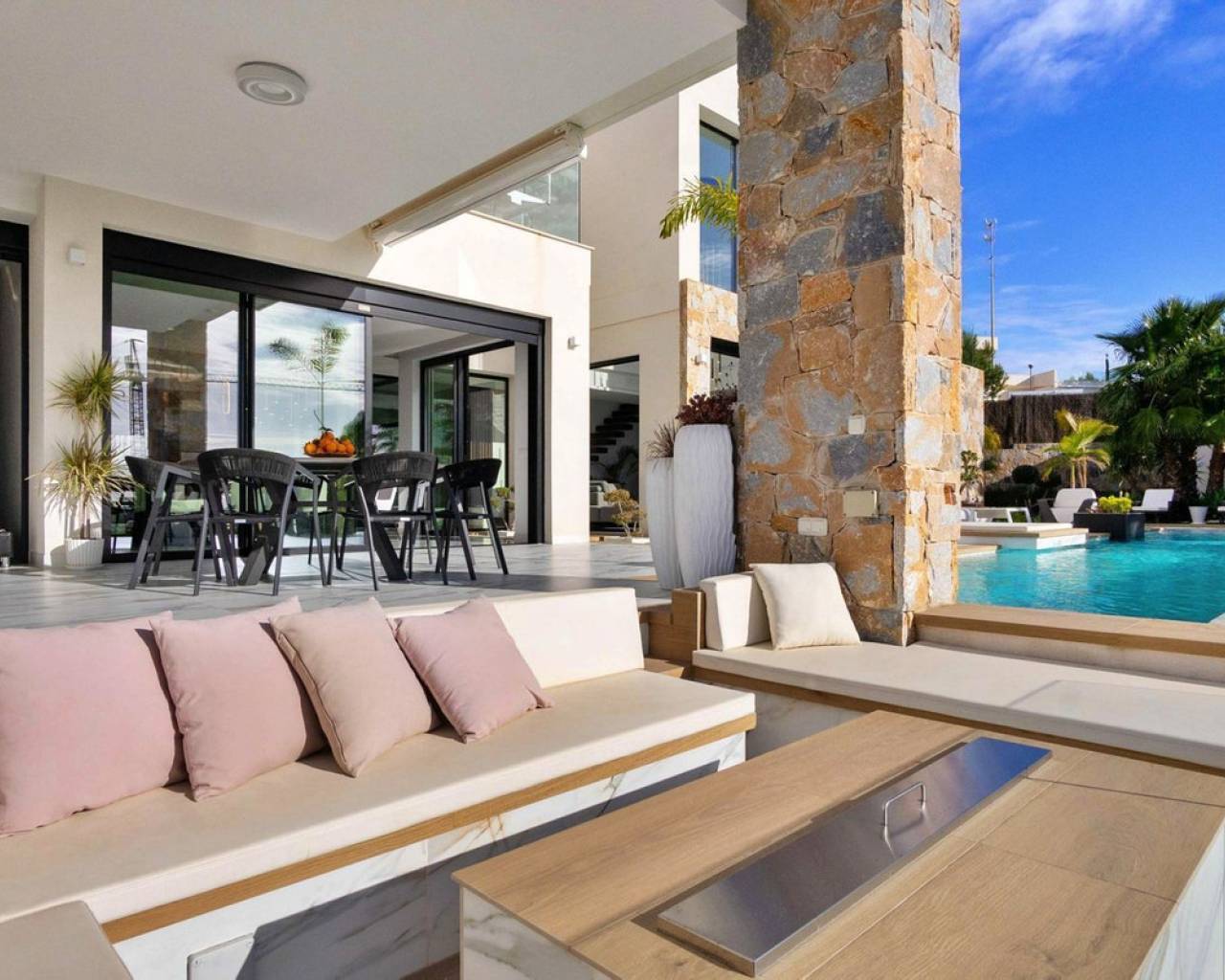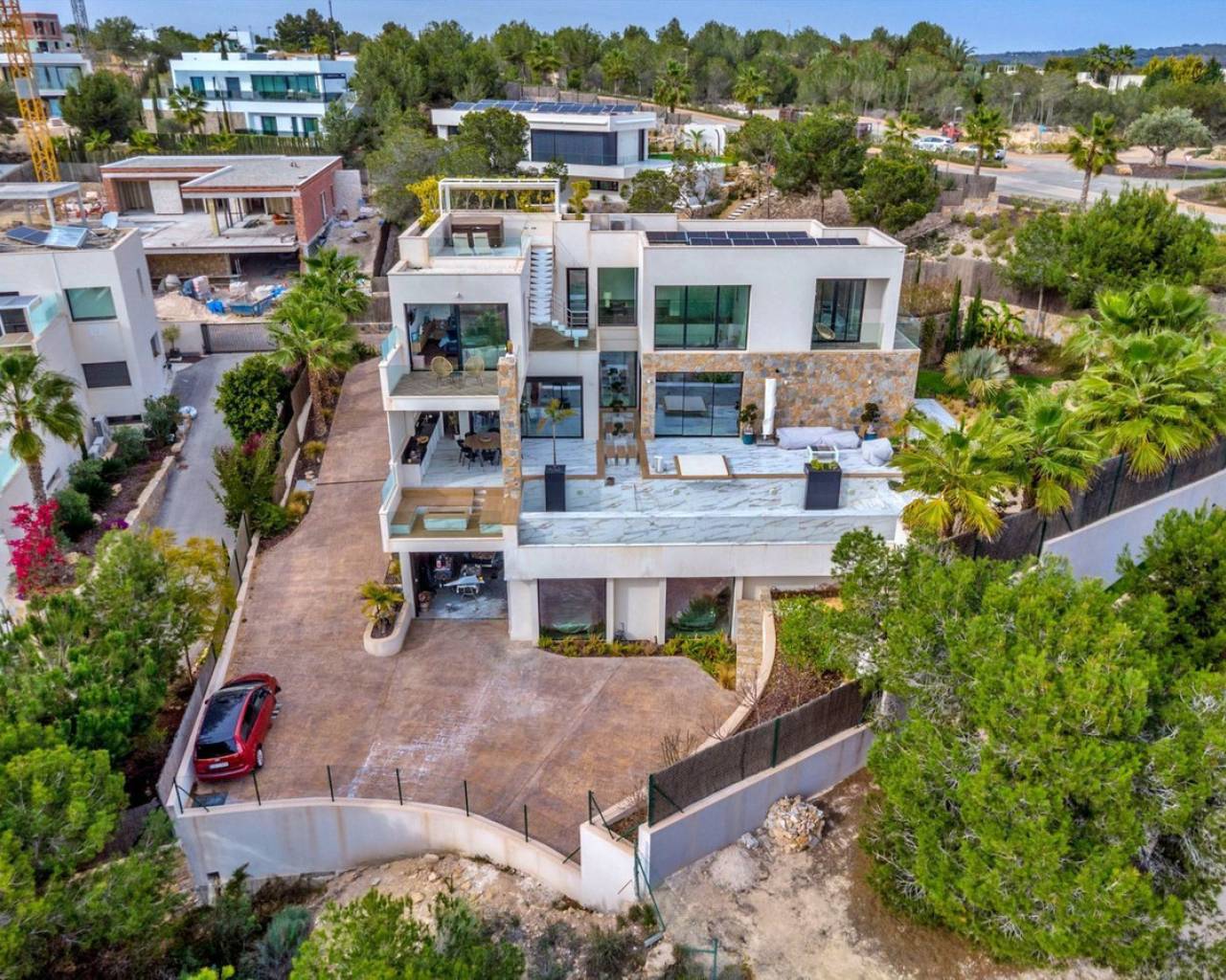 Adéntrese en el lujo puro con esta impresionante villa de 4 dormitorios y 5 baños, perfectamente ubicada en el prestigioso Las Colinas Golf & Country Club.~~Esta extraordinaria residencia combina a la perfección la elegancia moderna con la comodidad de alta gama, ofreciendo un estilo de vida incomparable en uno de los lugares más exclusivos de España.~~Planta Baja – Una Gran Entrada al Lujo~Al entrar, le recibe un impresionante jardín interior japonés de Ficus, que marca el tono del ambiente sereno de la villa.~La zona de estar y comedor de planta abierta está bañada por luz natural, con una cocina de diseño de vanguardia con electrodomésticos de primera calidad, una cocina secundaria conectada y amplio espacio de almacenamiento.~~Salga a la extensa terraza, donde una cocina y comedor al aire libre ofrecen el escenario perfecto para el entretenimiento. La piscina infinita con zona de descanso y chimenea crea un oasis de relajación, mientras que el campo de prácticas de golf meticulosamente diseñado con un búnker añade un toque de ocio.~~Esta planta también cuenta con el Dormitorio 1, completo con armarios empotrados, baño en suite y acceso directo al jardín.~~Primera Planta – Elegancia y Vistas Impresionantes~Suba por la escalera de madera flotante o el ascensor privado hasta la primera planta, donde los altos techos de doble altura y las ventanas del suelo al techo ofrecen impresionantes vistas panorámicas.~~Aquí encontrará dos exquisitos dormitorios:~~Dormitorio 2: Con balcón privado, armario empotrado, un elegante espacio de trabajo y baño en suite.~Suite principal: Un verdadero santuario con impresionantes vistas al campo de golf, balcón privado, un lujoso baño en suite con bañera independiente y ducha con plato de ducha, y un amplio vestidor.~Desde esta planta, se puede acceder a la terraza de la azotea, donde un jacuzzi privado y unas espectaculares vistas al campo de golf y al mar lejano crean un retiro exclusivo.~~Niveles Inferiores – Un Refugio Privado y Entretenimiento Supremo~Estudio de invitados: Una suite independiente con dormitorio privado, sala de estar y comedor, y baño en suite con ducha con plato de ducha. Los ventanales del suelo al techo ofrecen una vista directa al garaje para coleccionistas, lo que hace que este espacio sea realmente único.~Nivel de entretenimiento: La zona de ocio definitiva cuenta con una cocina y un comedor totalmente equipados, perfectamente conectados con el impresionante garaje para 12 coches, una obra maestra en sí misma para los entusiastas del automóvil.~~Un Hogar Incomparable~Esta villa es más que una casa, es una declaración de lujo, exclusividad y vida refinada en uno de los lugares más codiciados de España.~~No pierda la oportunidad de experimentar esta obra maestra arquitectónica de primera mano. Contáctenos hoy mismo para una visita privada.~~Las Colinas Golf & Country Club~¡Un Mundo Aparte!~~Las Colinas Golf & Country Club es uno de los resorts más prestigiosos de la Costa Blanca. Es un exclusivo y singular resort de golf de 330 hectáreas con numerosas instalaciones deportivas, incluyendo golf, pádel, senderismo, fitness, yoga y mucho más. Es un mundo aparte donde podrá disfrutar de un estilo de vida mediterráneo saludable.~~Con un clima excepcional y servicios de primera clase, el resort ha sido reconocido como "Mejor Resort de Villas de España y Europa" por los World Travel Awards en los últimos años. Ubicado entre las colinas de la Dehesa de Campoamor, en la costa mediterránea al sur de Alicante, Las Colinas Golf & Country Club es un espacio natural único que se ha conservado cuidadosamente y donde se han integrado casas exclusivas en el entorno, donde podrá relajarse y disfrutar del paisaje. Este resort, con excelentes restaurantes y la playa Wow by Las Colinas, tiene una reputación internacional y es conocido y buscado por celebridades. ¡Encuentre la casa de sus sueños hoy mismo echando un vistazo a las casas
