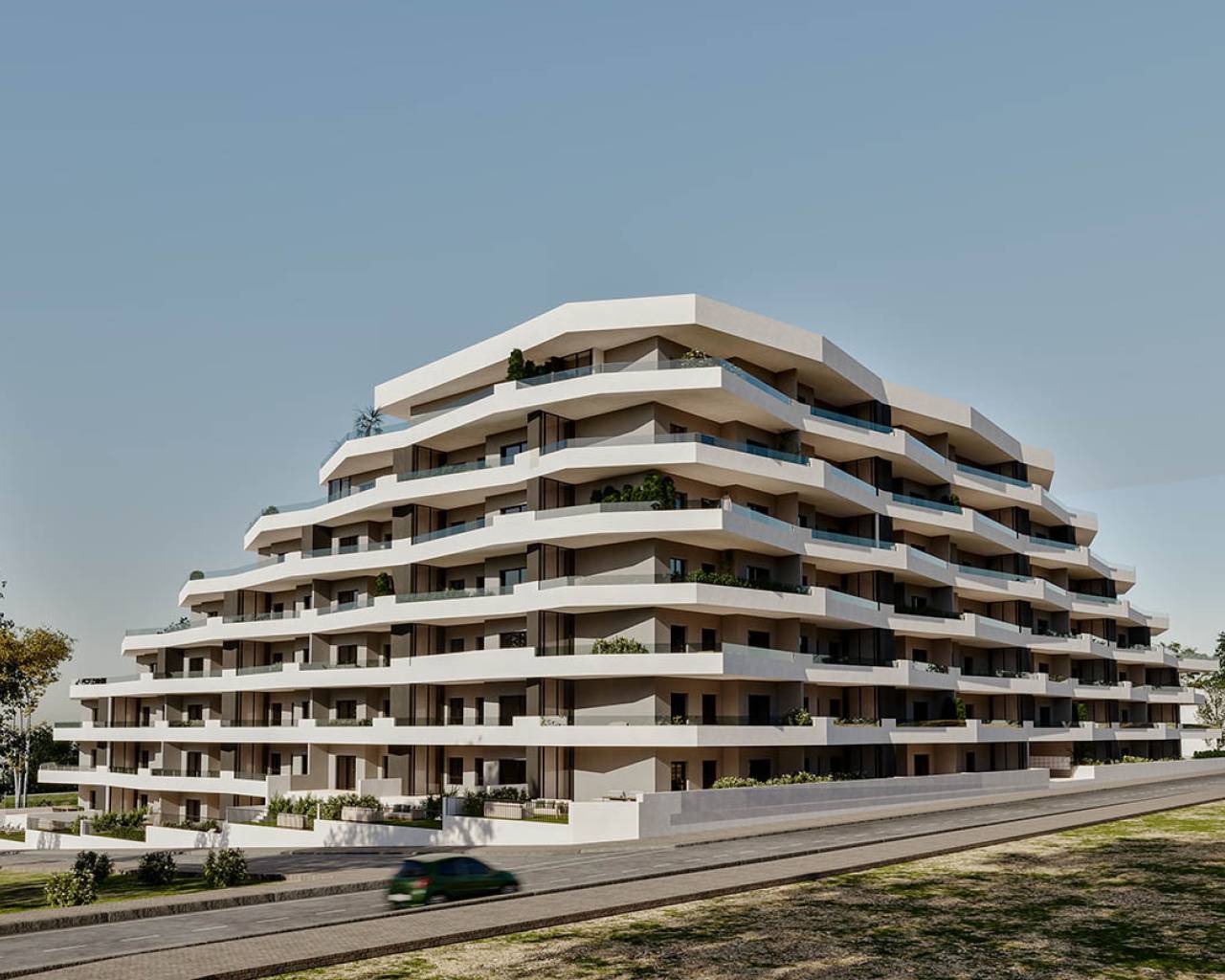 Residencial de 165 de viviendas de 2 y 3 dormitorios, distribuidas en 7 plantas. dispone de parking y trasteros.Residencial completamente cerrado con piscinas comunitarias para adultos y niños, zonas verdes, área de juegos para niños y zona para adultos con circuito bio-saludable, Se encuentra ubicado en la costa blanca en San Miguel de Salinas cerca de Campos de Golf, playa y Centros Comerciales. Memoria de calidades: • Cocina completamente amueblada con grupo filtrante y vitrocerámica de inducción. • Suelos porcelánicos. • Persianas compactas. • Armarios laminados en color blanco con altillo en dormitorios. • Pre-instalación aire acondicionado para split en salón y dormitorio. • Aerotermia. 70% de ahorro energético.