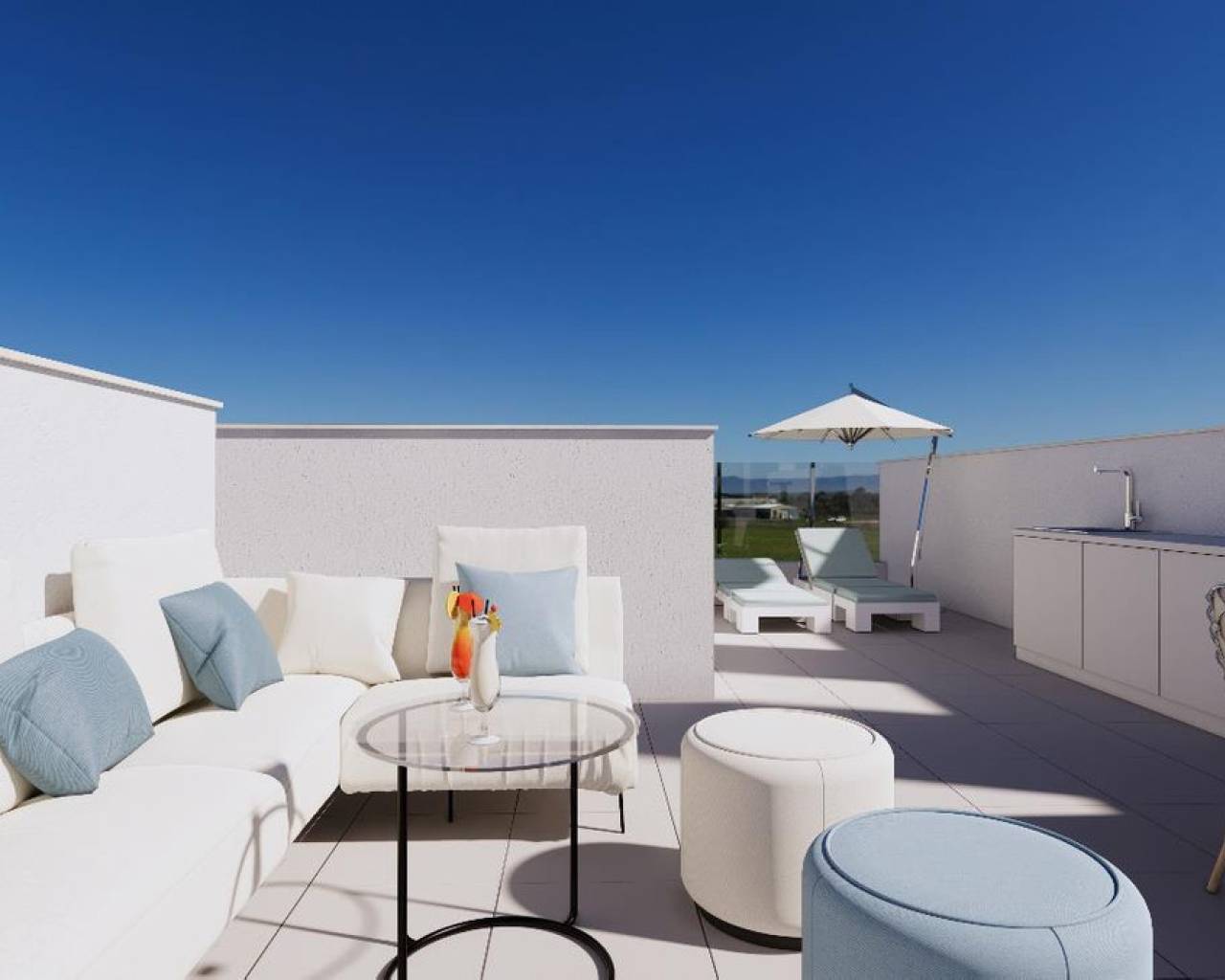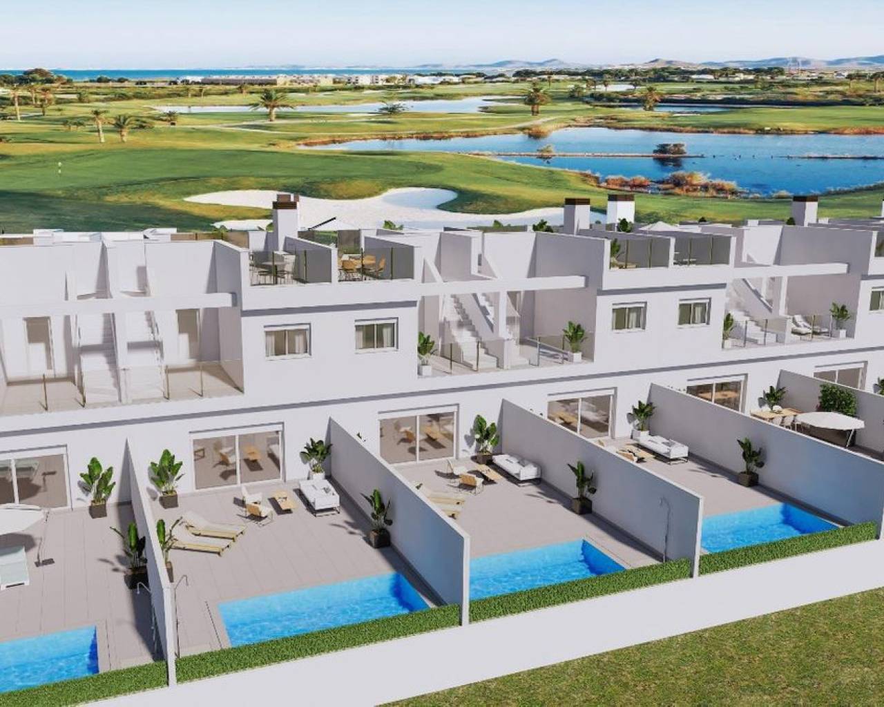 31 viviendas semi adosadas con amplias terrazas y solarium, con orientaciones este y oeste, en sus fachadas principales. Las viviendas estan formadas por tres plantas, garaje privado, planta baja, y planta primera. Estan situadas en un entorno inmejorable, a pocos metros del mar menor, y rodeadas del campo de golf «La serena», en Los Alcazares.