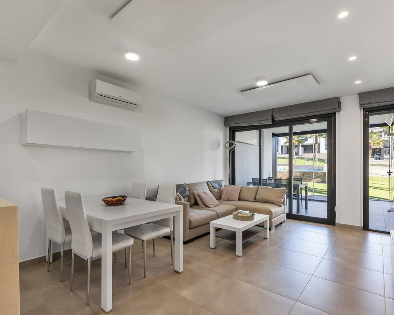 Descubra este moderno apartamento en planta baja y en esquina, listo para entrar a vivir, situado en el popular residencial Oasis Beach 8, entre Torrevieja y Orihuela Costa. Una ubicación privilegiada cerca de comercios, restaurantes e instalaciones deportivas, y a aproximadamente 1,5 km de las playas. El conocido centro comercial Zenia Boulevard se encuentra a poca distancia. ???? La vivienda Este cuidado apartamento ofrece una excelente combinación de confort, luminosidad y distribución funcional: Apartamento en planta baja y en esquina con abundante luz natural 2 dormitorios y 2 baños con duchas a ras de suelo Amplio salón con cocina abierta totalmente equipada Dos terrazas, una de ellas cubierta y cerrable mediante un sistema de cortinas de cristal, ideal como veranda para todo el año Aire acondicionado en salón y dormitorios Calefacción por infrarrojos para mayor confort en los meses más frescos Internet por fibra óptica Plaza de aparcamiento subterránea incluida ????️ Equipamiento y confort La vivienda dispone de equipamiento práctico y de calidad, entre otros: Lavavajillas, frigorífico con congelador y horno/microondas combinado Lavadora y secadora Cocina totalmente equipada Mobiliario exterior y tumbonas Trastero privado, apto para bicicletas ???? El residencial – Oasis Beach 8 El complejo está muy bien cuidado y ofrece atractivas zonas comunes: Dos piscinas, incluyendo piscina infantil y jacuzzi Pista de petanca y zona de juegos infantiles Zonas verdes ajardinadas Garaje subterráneo y recinto cerrado ???? Ubicación y entorno Gracias a su ubicación central, disfrutará de: Fácil acceso a playas, campos de golf y zonas naturales Cercanía a restaurantes, tiendas y clubes deportivos Buenas conexiones con Torrevieja, Orihuela Costa y los aeropuertos Resumen Un apartamento moderno y listo para entrar a vivir en un residencial muy demandado de la Costa Blanca, ideal como vivienda habitual, segunda residencia o inversión sin preocupaciones en una excelente ubicación.