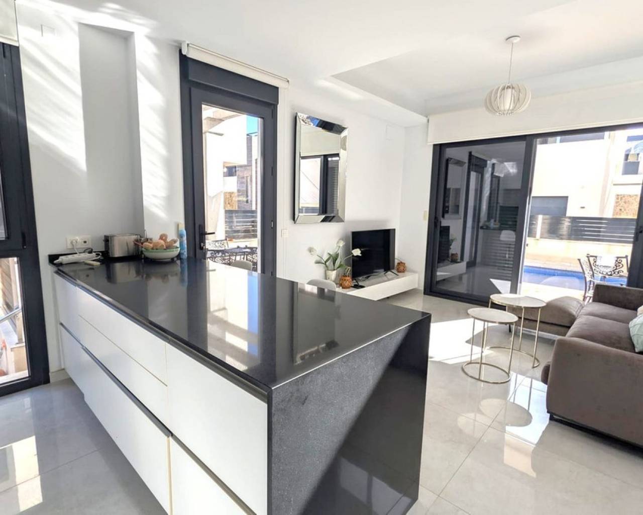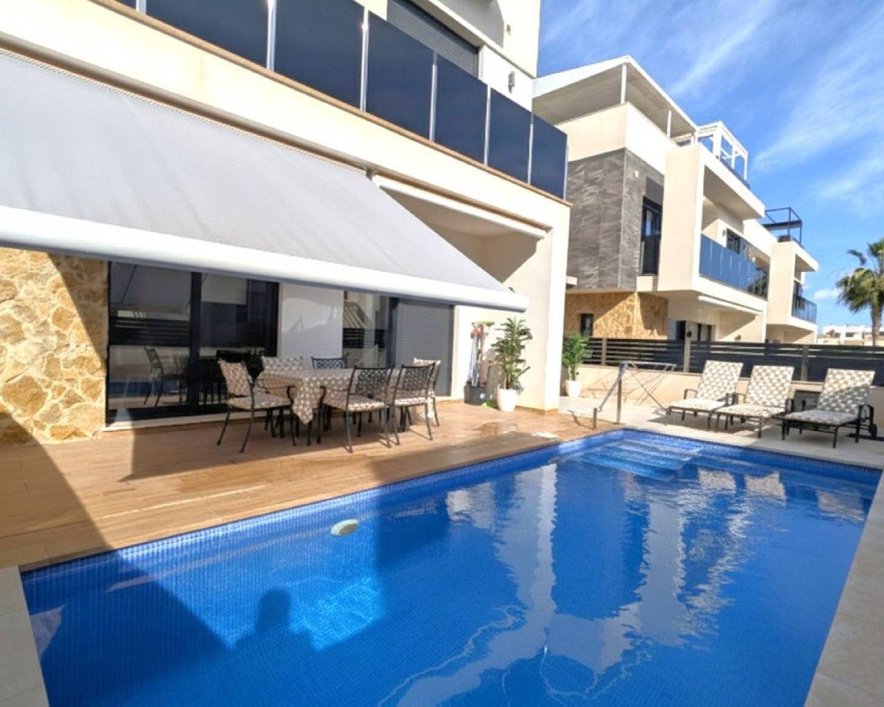 Vida costera sofisticada: exclusiva villa de 4 dormitorios con vistas panorámicas al mar Lomas de Cabo Roig: el epítome del lujo mediterráneo moderno Experimente la combinación perfecta de arquitectura contemporánea y el encanto costero natural. Esta impresionante villa de 4 dormitorios se encuentra en uno de los enclaves más prestigiosos de Orihuela Costa, ofreciendo un estilo de vida de privacidad, luminosidad y una comodidad inigualable. La Residencia: Espacio, Luz y Versatilidad Diseñada con un enfoque en la vida de planta abierta, la propiedad cuenta con ventanas de piso a techo que bañan el interior con luz solar natural mediterránea. Los dormitorios: Cuatro dormitorios dobles de proporciones generosas, cada uno de los cuales sirve como un santuario privado, dos de ellos en suite, hay un dormitorio de invitados en la planta baja con uso del baño de invitados, uno en el sótano con su propio baño y dos principales en suite en el piso superior y estos dos también tienen acceso a una terraza con vista a la piscina. El centro de entretenimiento: una cocina de diseño elegante se integra a la perfección con las amplias áreas de estar y comedor, perfectas para recibir invitados o para disfrutar de tranquilas veladas familiares. El sótano: Un importante recurso oculto. Esta espaciosa planta baja es un lienzo en blanco, listo para transformarse en un cine privado, un gimnasio en casa, una bodega o una suite independiente para invitados. Oasis al aire libre y refugio en la azotea El exterior está diseñado para quienes valoran el estilo de vida al aire libre: Piscina privada: sumérjase en su propia piscina cristalina, rodeada de terrazas bañadas por el sol y climatizada para su uso durante todo el año, incluso en los meses más fríos. El Solárium: La joya de la corona de la casa. Suba a la azotea para descubrir un amplio solárium con vistas panorámicas al mar Mediterráneo: el lugar ideal para disfrutar de un cóctel al atardecer o de una cena bajo las estrellas. Ubicación: Todo a tu alcance Ubicado en el vibrante corazón de Lomas de Cabo Roig, está perfectamente ubicado para disfrutar de lo mejor de la Costa Blanca: Playas: A pocos pasos de las aguas cristalinas y arenas doradas de Cabo Roig y Campoamor (Bandera Azul). Paraíso de los golfistas: a minutos de campos de campeonato, incluidos Las Ramblas, Campoamor y Villamartín.