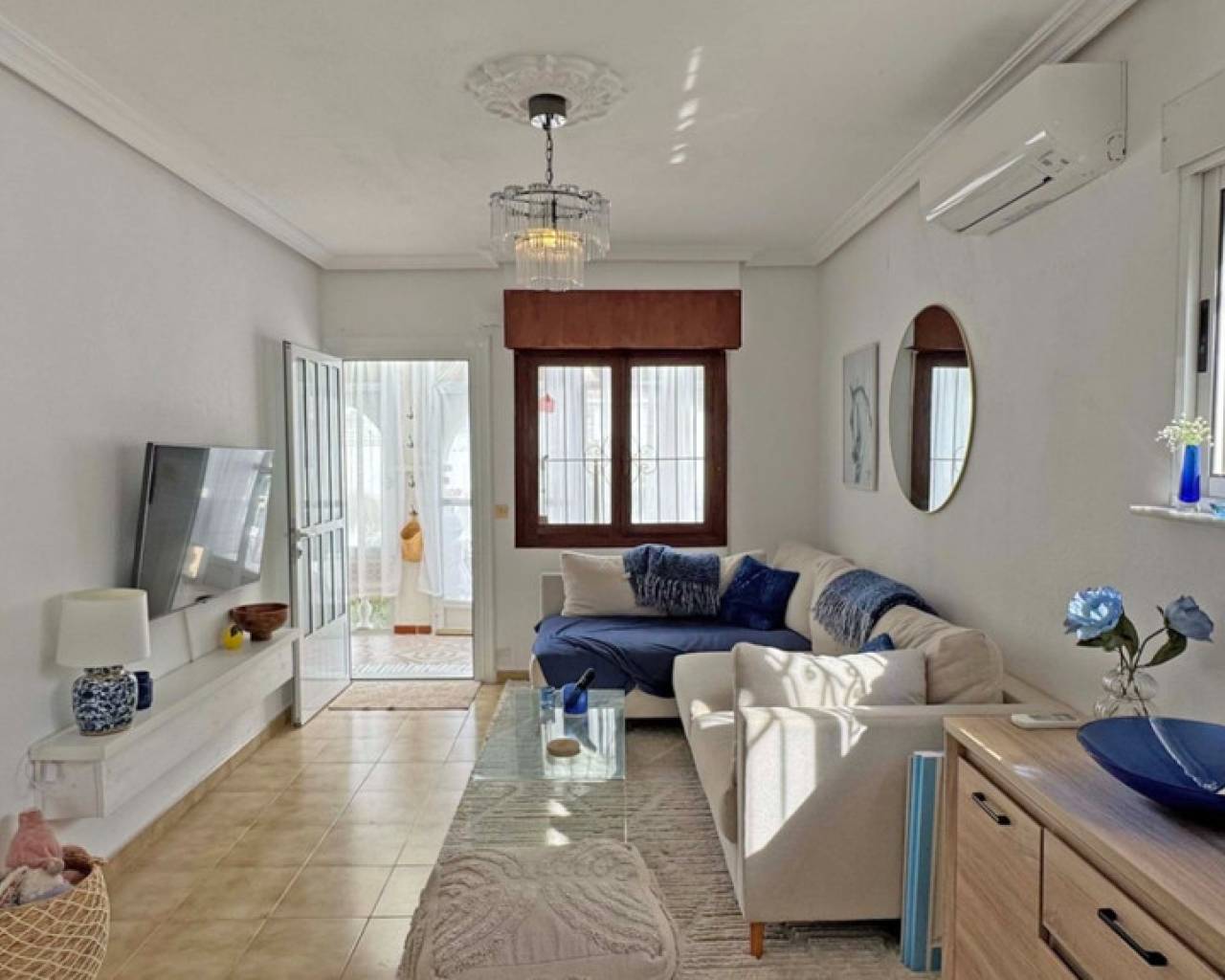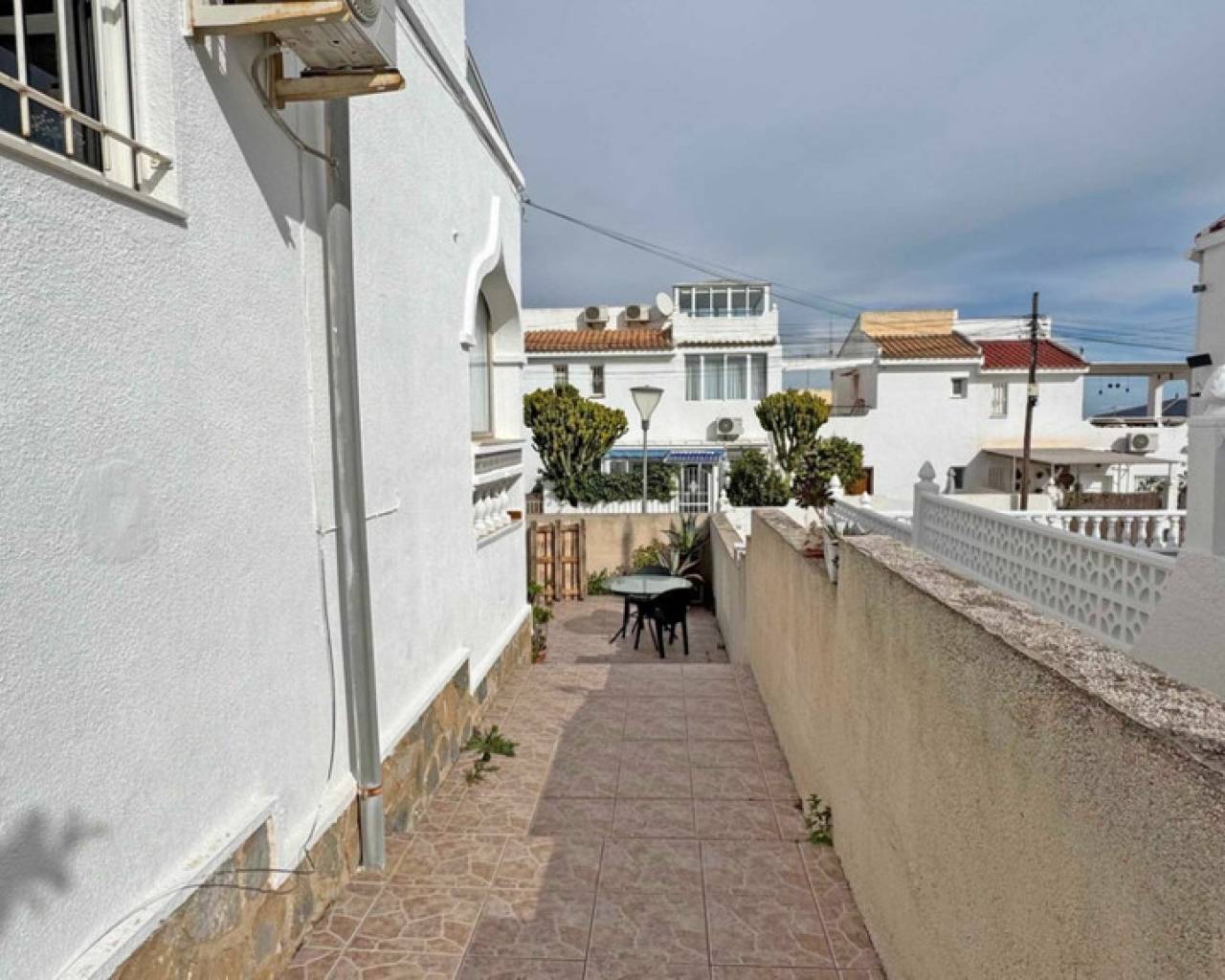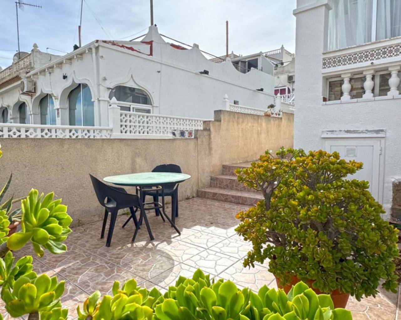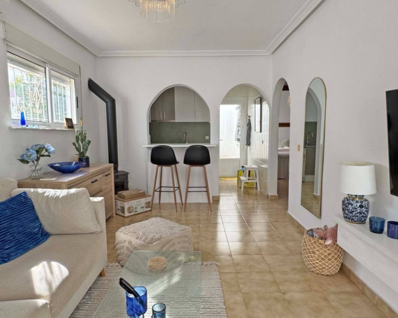 Ubicada en el encantador municipio de San Miguel de las Salinas, esta cuidada villa adosada ofrece una vivienda cómoda con amplios espacios exteriores y bonitas vistas a las salinas. La propiedad cuenta con 2 dormitorios, ambos con armarios empotrados, y 1 baño. El propietario actual ya ha comprado todos los materiales necesarios para reformar el baño, por lo que solo sería necesario asumir el coste de la mano de obra para completar la renovación. La imagen del baño reformado es una visualización que muestra cómo podría quedar el baño utilizando los materiales elegidos por el propietario, los cuales se entregarán con la vivienda. En el interior, la vivienda dispone de un salón-comedor de concepto abierto, creando un espacio luminoso y funcional. Se vende totalmente amueblada, lista para entrar a vivir o alquilar de inmediato. Las zonas exteriores son uno de los grandes atractivos, con terraza, patio y jardín que rodea la vivienda, ideales para disfrutar del clima mediterráneo. En la planta superior, el solárium privado ofrece agradables vistas a las salinas, perfecto para relajarse o tomar el sol. Además, la propiedad dispone de un sótano con espacio de almacenamiento, así como un trastero independiente con zona de lavandería y caldera. Con orientación norte, esta vivienda mantiene una temperatura agradable durante todo el año. Una excelente opción como vivienda habitual, casa de vacaciones o inversión en una zona muy demandada de la Costa Blanca.