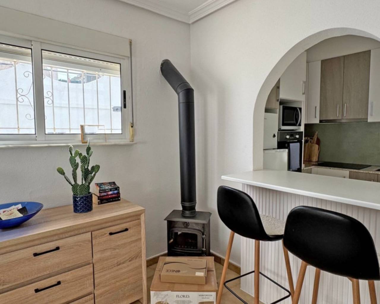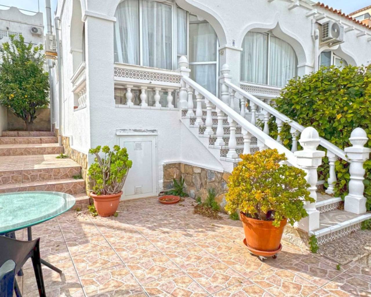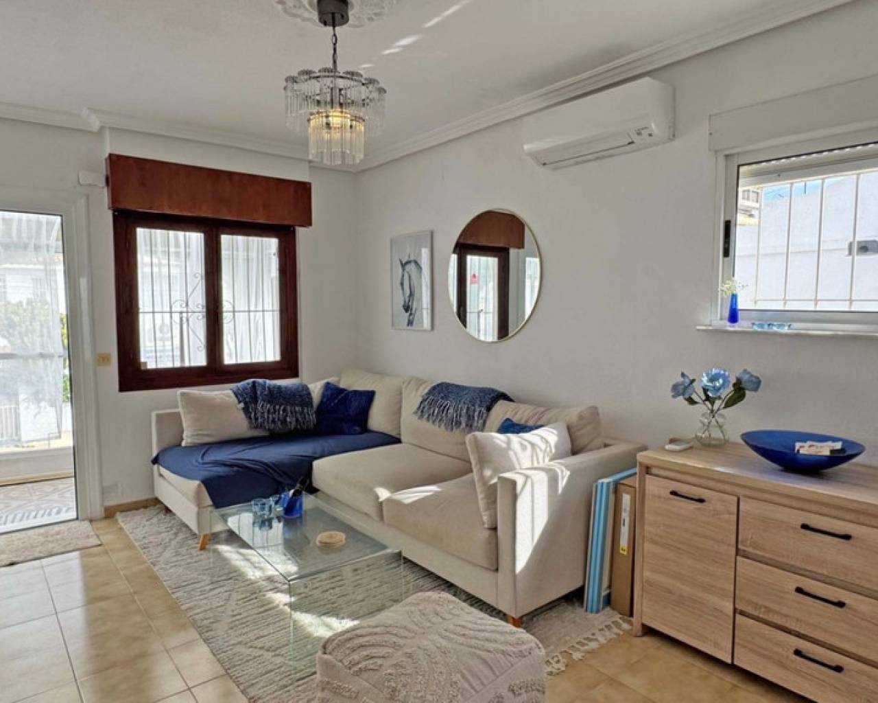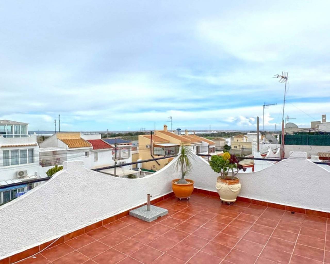 Ubicada en el encantador municipio de San Miguel de las Salinas, esta cuidada villa adosada ofrece una vivienda cómoda con amplios espacios exteriores y bonitas vistas a las salinas. La propiedad cuenta con 2 dormitorios, ambos con armarios empotrados, y 1 baño. El propietario actual ya ha comprado todos los materiales necesarios para reformar el baño, por lo que solo sería necesario asumir el coste de la mano de obra para completar la renovación. La imagen del baño reformado es una visualización que muestra cómo podría quedar el baño utilizando los materiales elegidos por el propietario, los cuales se entregarán con la vivienda. En el interior, la vivienda dispone de un salón-comedor de concepto abierto, creando un espacio luminoso y funcional. Se vende totalmente amueblada, lista para entrar a vivir o alquilar de inmediato. Las zonas exteriores son uno de los grandes atractivos, con terraza, patio y jardín que rodea la vivienda, ideales para disfrutar del clima mediterráneo. En la planta superior, el solárium privado ofrece agradables vistas a las salinas, perfecto para relajarse o tomar el sol. Además, la propiedad dispone de un sótano con espacio de almacenamiento, así como un trastero independiente con zona de lavandería y caldera. Con orientación norte, esta vivienda mantiene una temperatura agradable durante todo el año. Una excelente opción como vivienda habitual, casa de vacaciones o inversión en una zona muy demandada de la Costa Blanca.