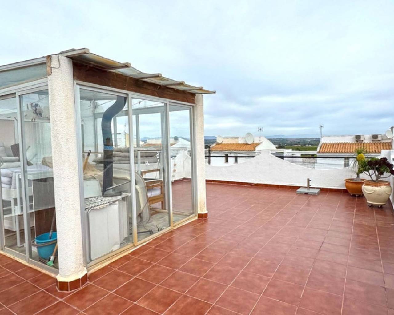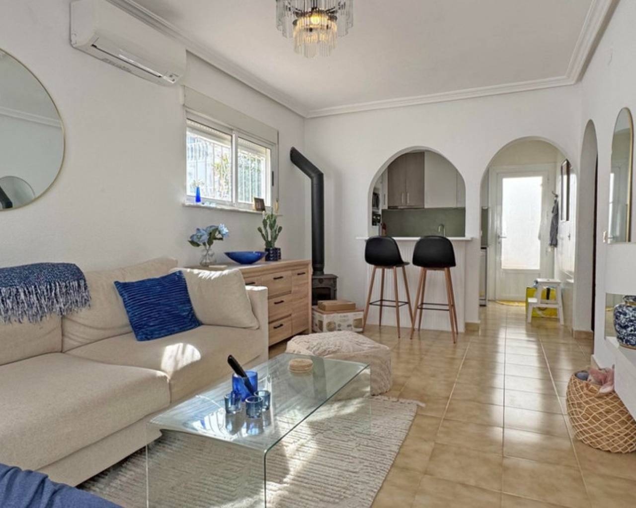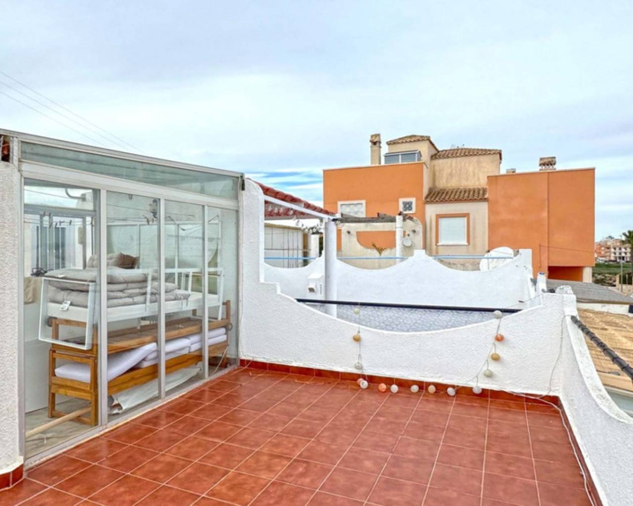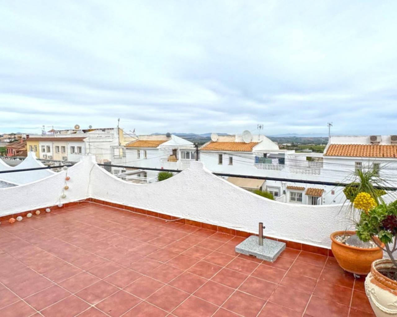 Ubicada en el encantador municipio de San Miguel de las Salinas, esta cuidada villa adosada ofrece una vivienda cómoda con amplios espacios exteriores y bonitas vistas a las salinas. La propiedad cuenta con 2 dormitorios, ambos con armarios empotrados, y 1 baño. El propietario actual ya ha comprado todos los materiales necesarios para reformar el baño, por lo que solo sería necesario asumir el coste de la mano de obra para completar la renovación. La imagen del baño reformado es una visualización que muestra cómo podría quedar el baño utilizando los materiales elegidos por el propietario, los cuales se entregarán con la vivienda. En el interior, la vivienda dispone de un salón-comedor de concepto abierto, creando un espacio luminoso y funcional. Se vende totalmente amueblada, lista para entrar a vivir o alquilar de inmediato. Las zonas exteriores son uno de los grandes atractivos, con terraza, patio y jardín que rodea la vivienda, ideales para disfrutar del clima mediterráneo. En la planta superior, el solárium privado ofrece agradables vistas a las salinas, perfecto para relajarse o tomar el sol. Además, la propiedad dispone de un sótano con espacio de almacenamiento, así como un trastero independiente con zona de lavandería y caldera. Con orientación norte, esta vivienda mantiene una temperatura agradable durante todo el año. Una excelente opción como vivienda habitual, casa de vacaciones o inversión en una zona muy demandada de la Costa Blanca.