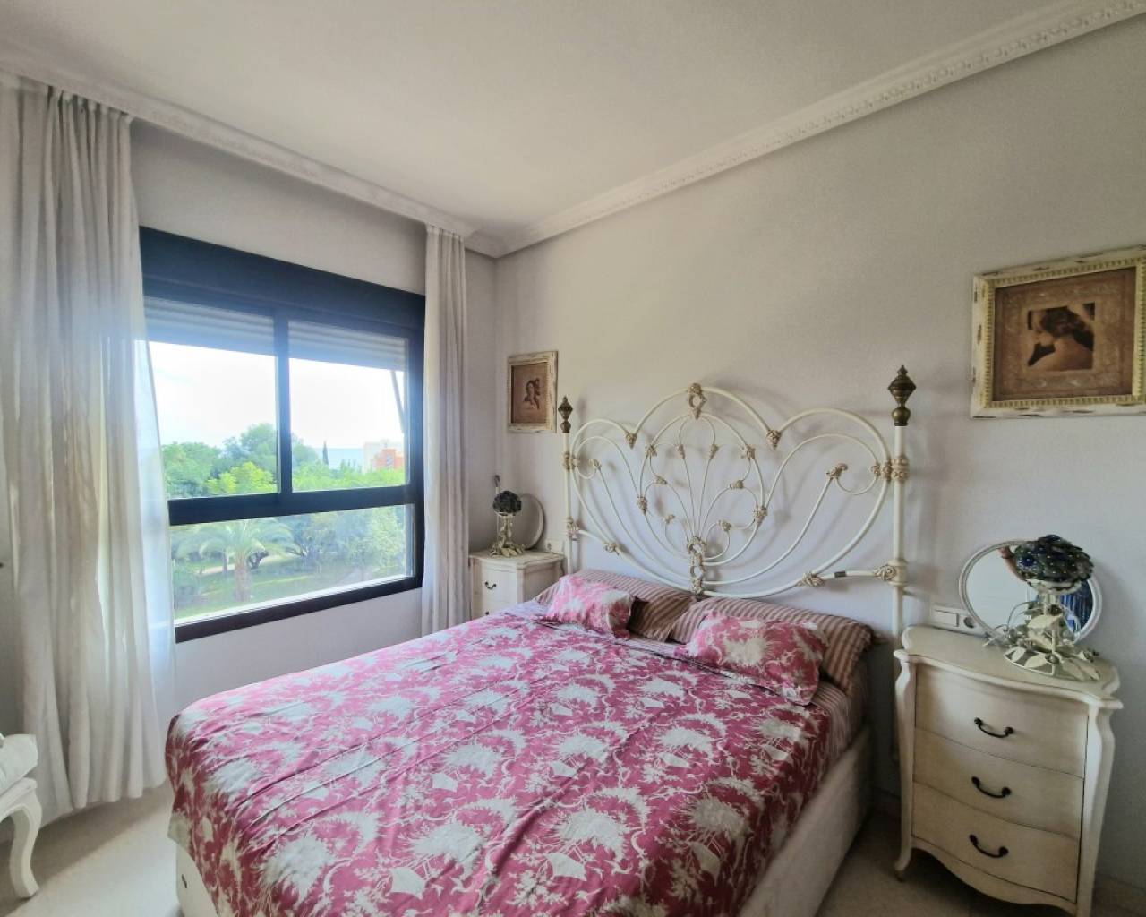 Esta propiedad absolutamente exclusiva destaca por su confortable diseño, con una superficie de 80 m², ideal tanto como primera o segunda residencia, o incluso como inversión. Dispone de 1 dormitorio muy amplio con vistas despejadas al mar, y un salón con su terraza (también con vistas muy abiertas al mar y a la ciudad). La cocina, totalmente amueblada y equipada, cuenta con placa de inducción, horno, microondas, lavavajillas, nevera, lavadora y secadora. Ofrece vistas a la montaña y cuenta con un práctico lavadero. La casa dispone de aire acondicionado frío/calor por conductos. El agua caliente sanitaria se produce mediante gas ciudad. Además, los armarios empotrados, distribuidos en diferentes estancias, ofrecen un espacio de almacenamiento óptimo. La urbanización ofrece excelentes zonas comunes pensadas para el bienestar y disfrute de sus residentes: amplias zonas ajardinadas con césped natural y arbolado, una gran piscina tipo lago, pista de tenis, sauna, gimnasio equipado con diversas máquinas y zona infantil. El aparcamiento exterior es amplio y está equipado con cámaras de videovigilancia para mayor seguridad. Situada a solo 5 minutos a pie de la playa, con todos los servicios y transporte público al alcance, esta propiedad es ideal para quienes valoran la exclusividad, el estilo y un alto nivel de calidad de vida.