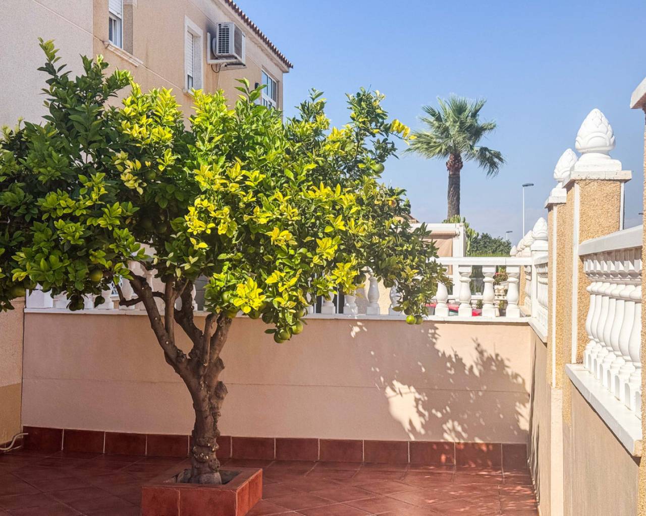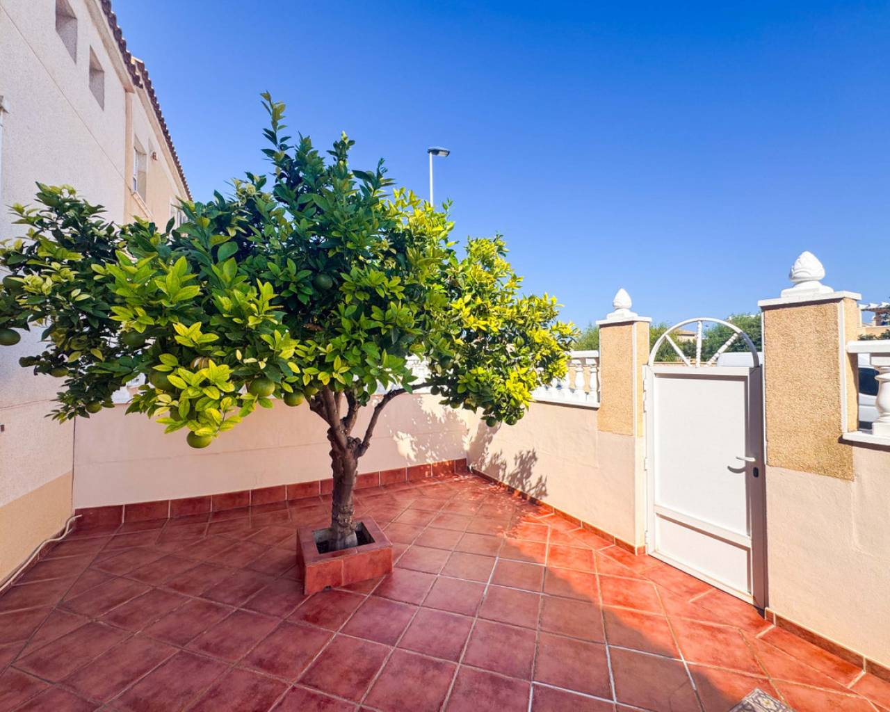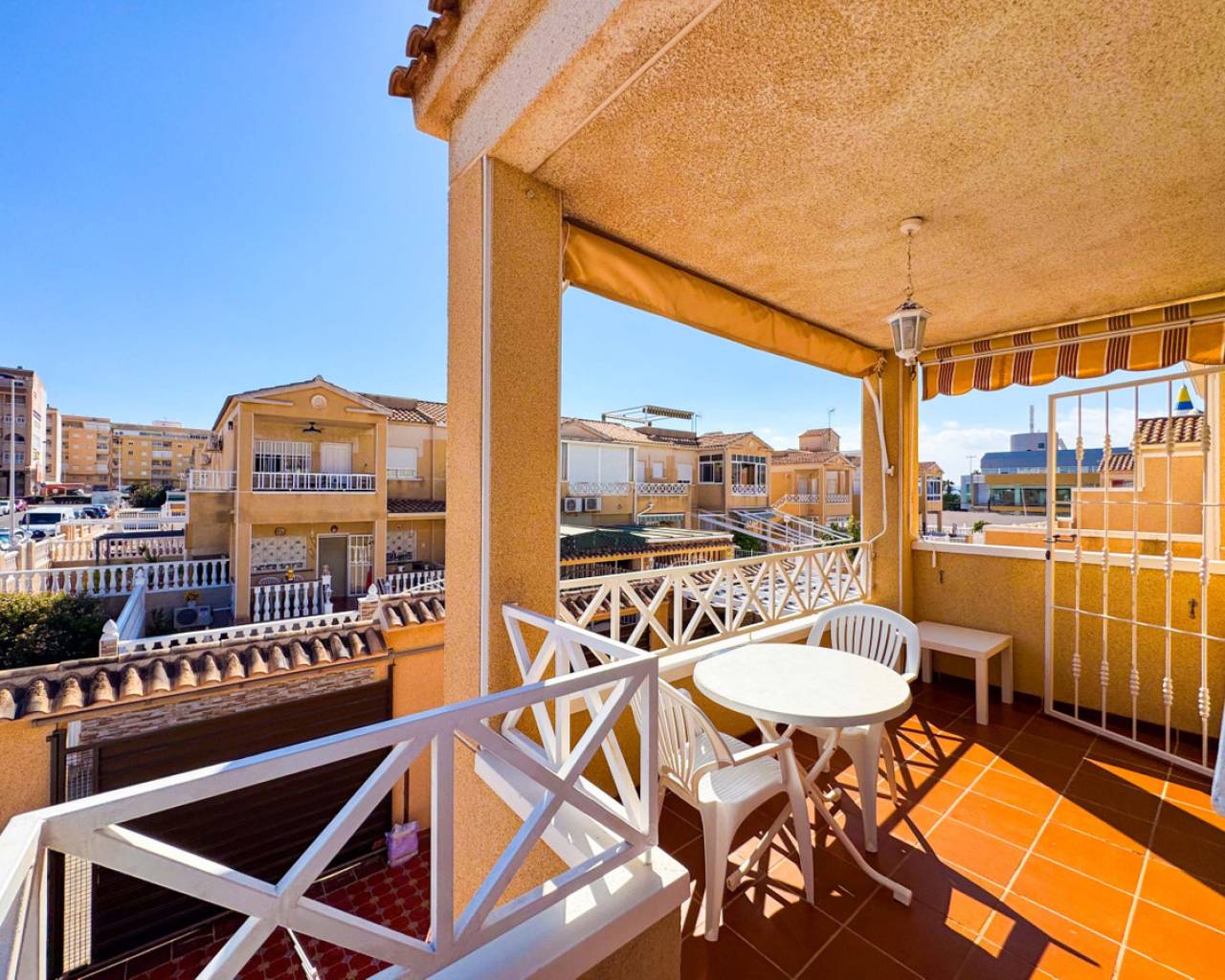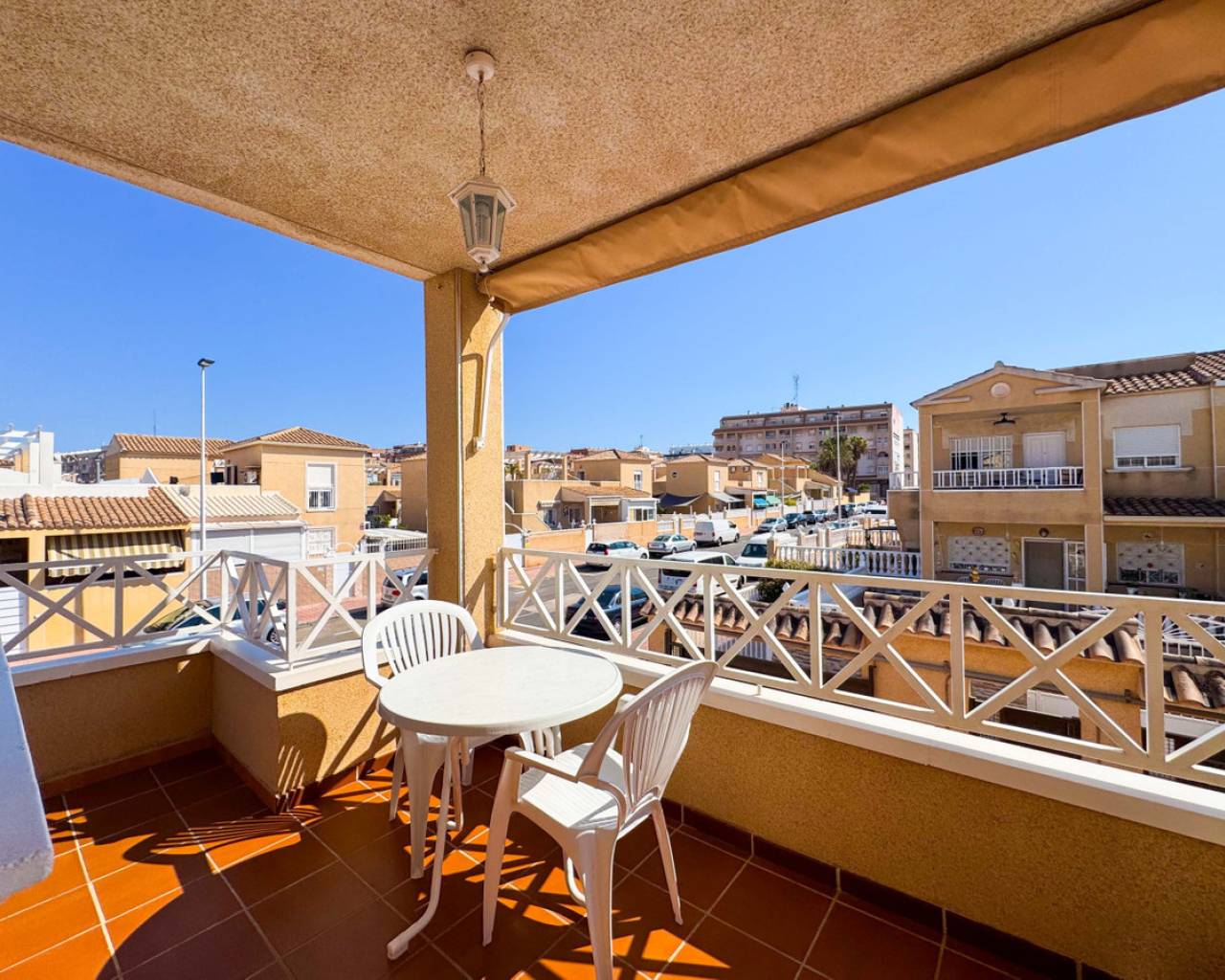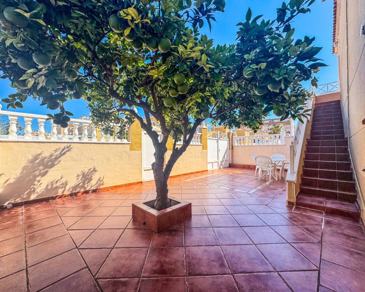 Este bungalow planta alta ubicado en la Urbanización Parque de las Naciones ofrece una amplia terraza de 50 m², un solárium privado de 26 m² y una plaza de garaje incluida. La propiedad se distribuye en un salón-comedor luminoso, una cocina independiente totalmente equipada, dos dormitorios con armarios empotrados y un baño completo con bañera. Además, dispone de un porche privado de 10 m² y acceso a un solárium de 26 m² mediante una escalera exterior. La urbanización cuenta con una piscina comunitaria y está situada en un entorno tranquilo con todos los servicios cercanos: comercios, zonas verdes, transporte público y áreas de ocio. Esta casa es ideal tanto para residencia como para inversión, con opciones de alquiler por temporada. Contáctenos para programar una visita presencial o virtual y solicitar planos detallados.