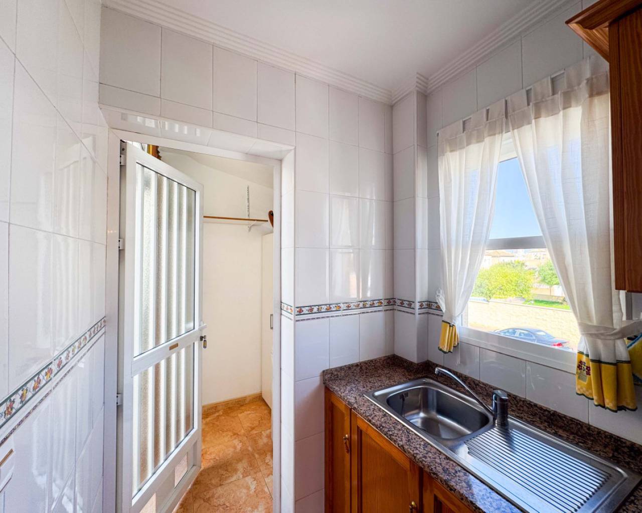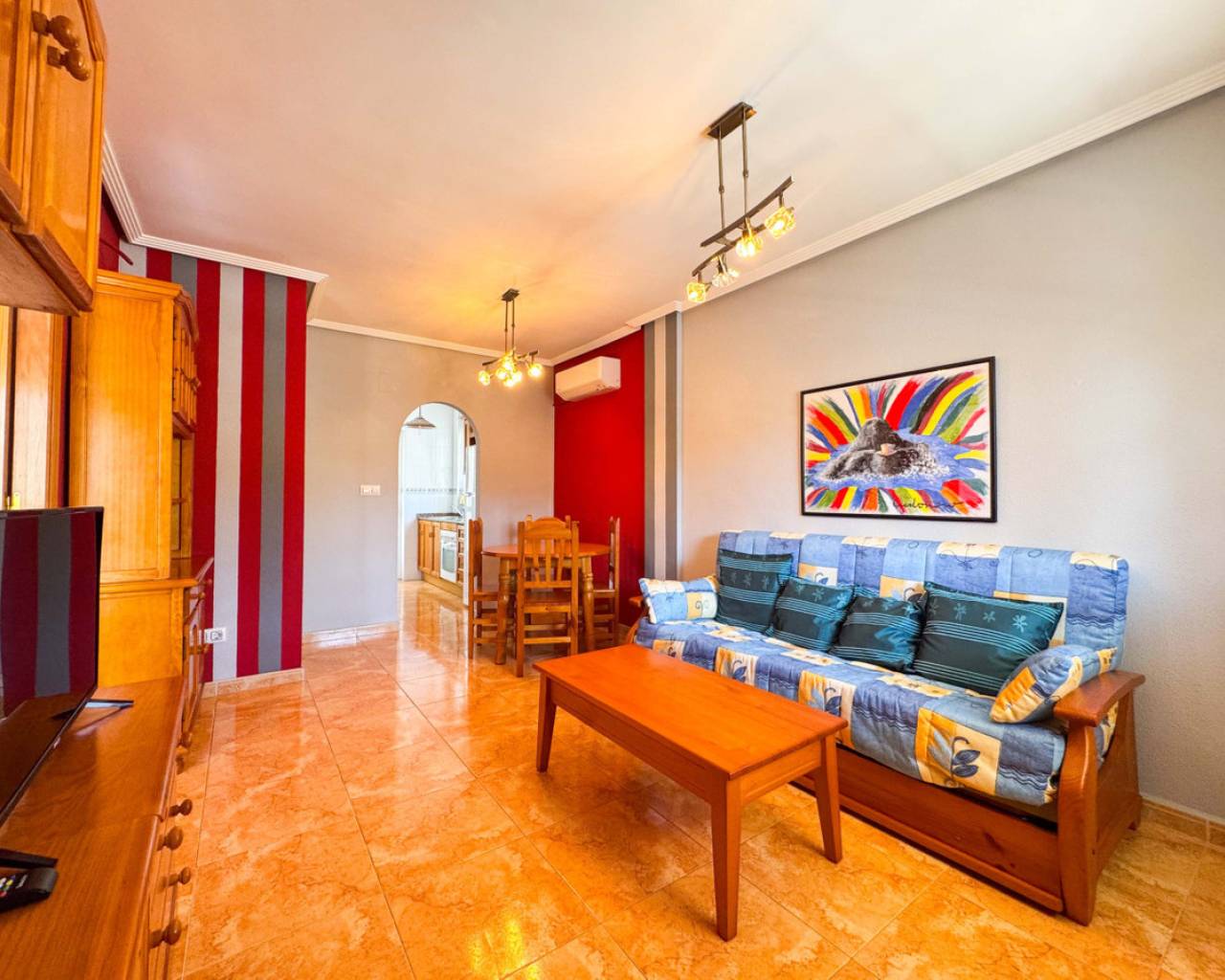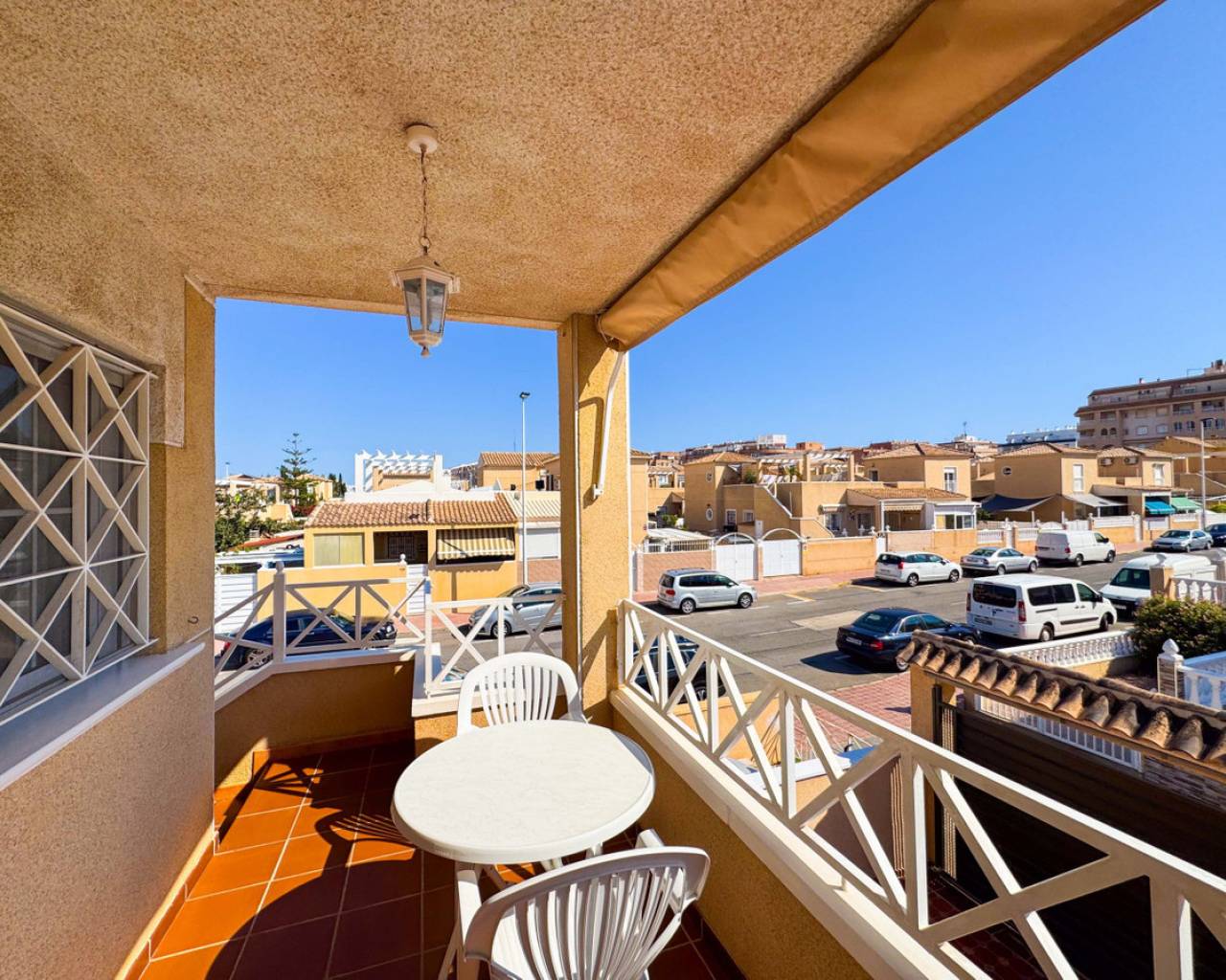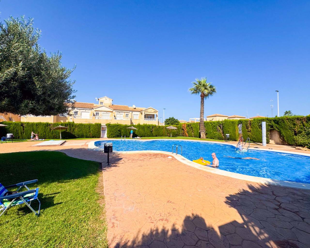 Este bungalow planta alta ubicado en la Urbanización Parque de las Naciones ofrece una amplia terraza de 50 m², un solárium privado de 26 m² y una plaza de garaje incluida. La propiedad se distribuye en un salón-comedor luminoso, una cocina independiente totalmente equipada, dos dormitorios con armarios empotrados y un baño completo con bañera. Además, dispone de un porche privado de 10 m² y acceso a un solárium de 26 m² mediante una escalera exterior. La urbanización cuenta con una piscina comunitaria y está situada en un entorno tranquilo con todos los servicios cercanos: comercios, zonas verdes, transporte público y áreas de ocio. Esta casa es ideal tanto para residencia como para inversión, con opciones de alquiler por temporada. Contáctenos para programar una visita presencial o virtual y solicitar planos detallados.