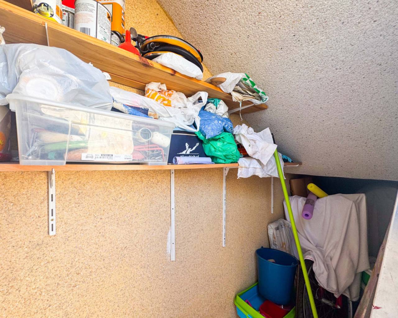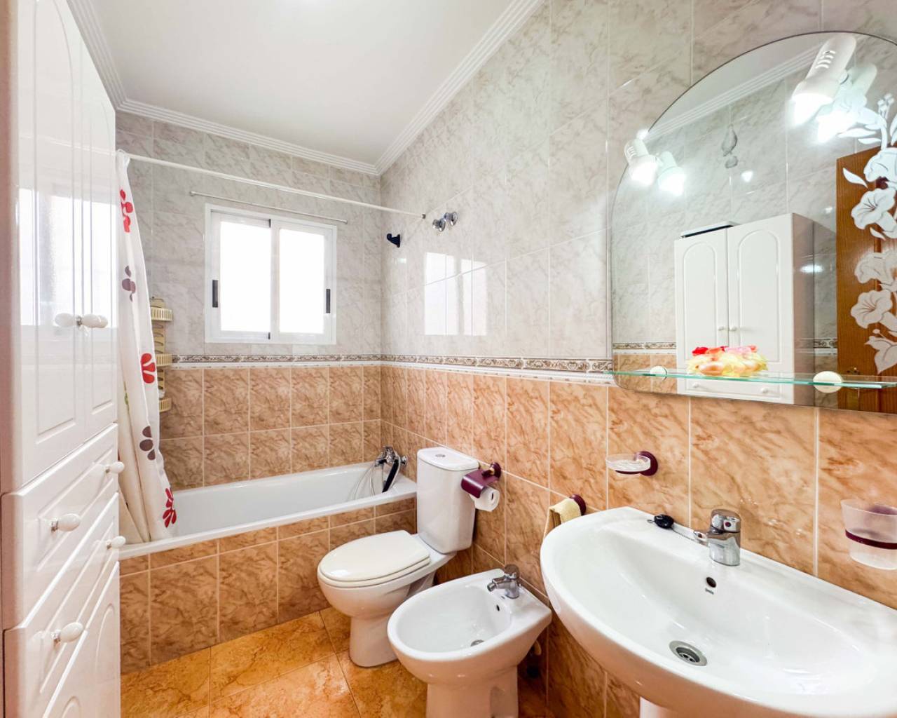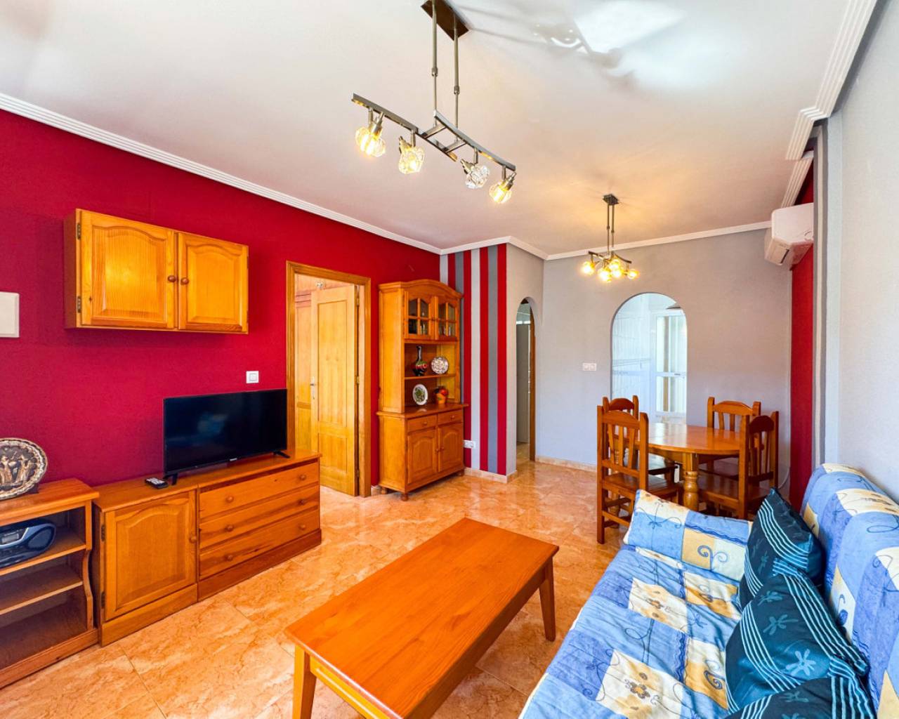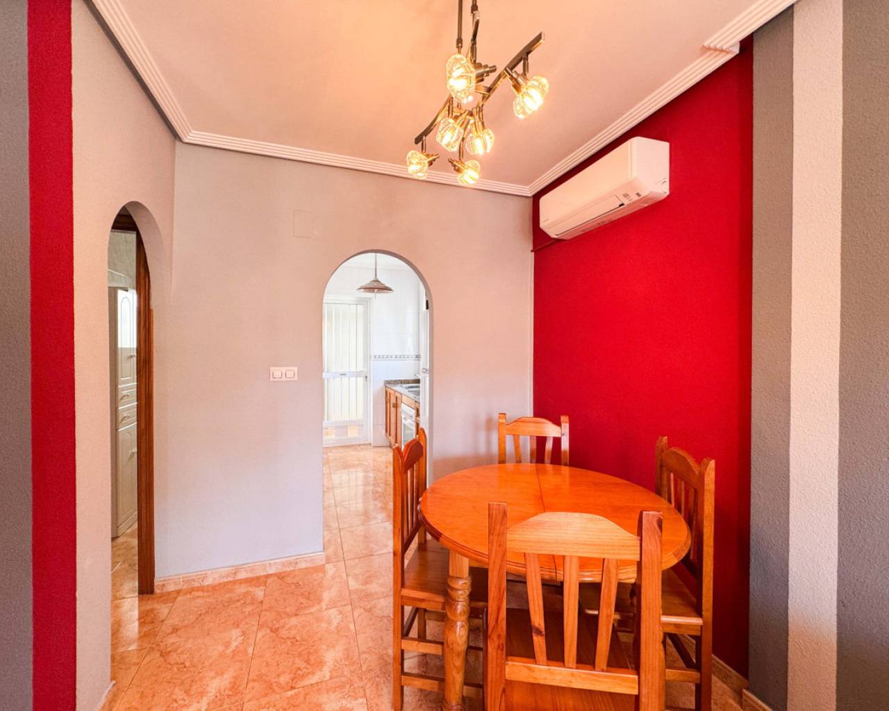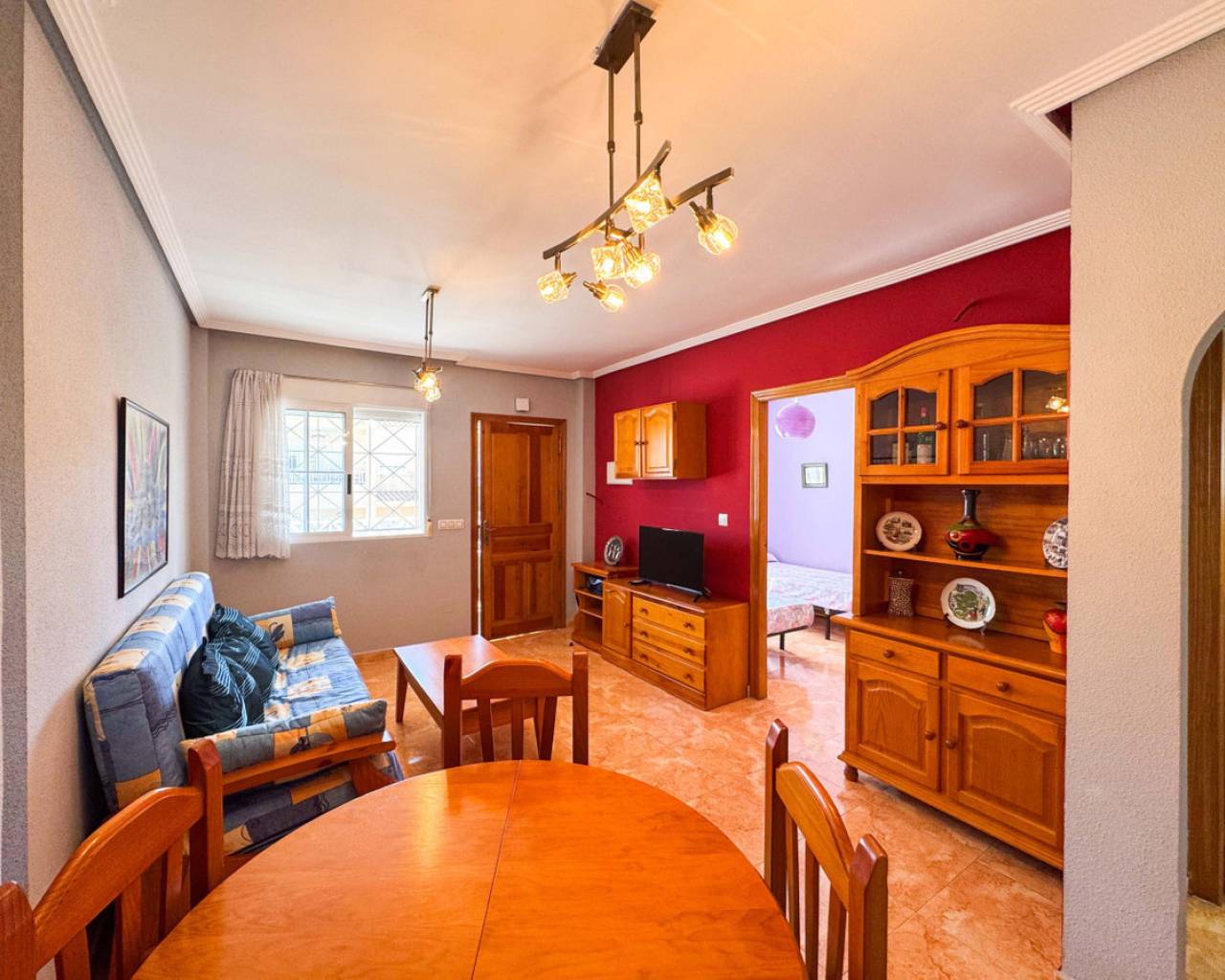 Este bungalow planta alta ubicado en la Urbanización Parque de las Naciones ofrece una amplia terraza de 50 m², un solárium privado de 26 m² y una plaza de garaje incluida. La propiedad se distribuye en un salón-comedor luminoso, una cocina independiente totalmente equipada, dos dormitorios con armarios empotrados y un baño completo con bañera. Además, dispone de un porche privado de 10 m² y acceso a un solárium de 26 m² mediante una escalera exterior. La urbanización cuenta con una piscina comunitaria y está situada en un entorno tranquilo con todos los servicios cercanos: comercios, zonas verdes, transporte público y áreas de ocio. Esta casa es ideal tanto para residencia como para inversión, con opciones de alquiler por temporada. Contáctenos para programar una visita presencial o virtual y solicitar planos detallados.