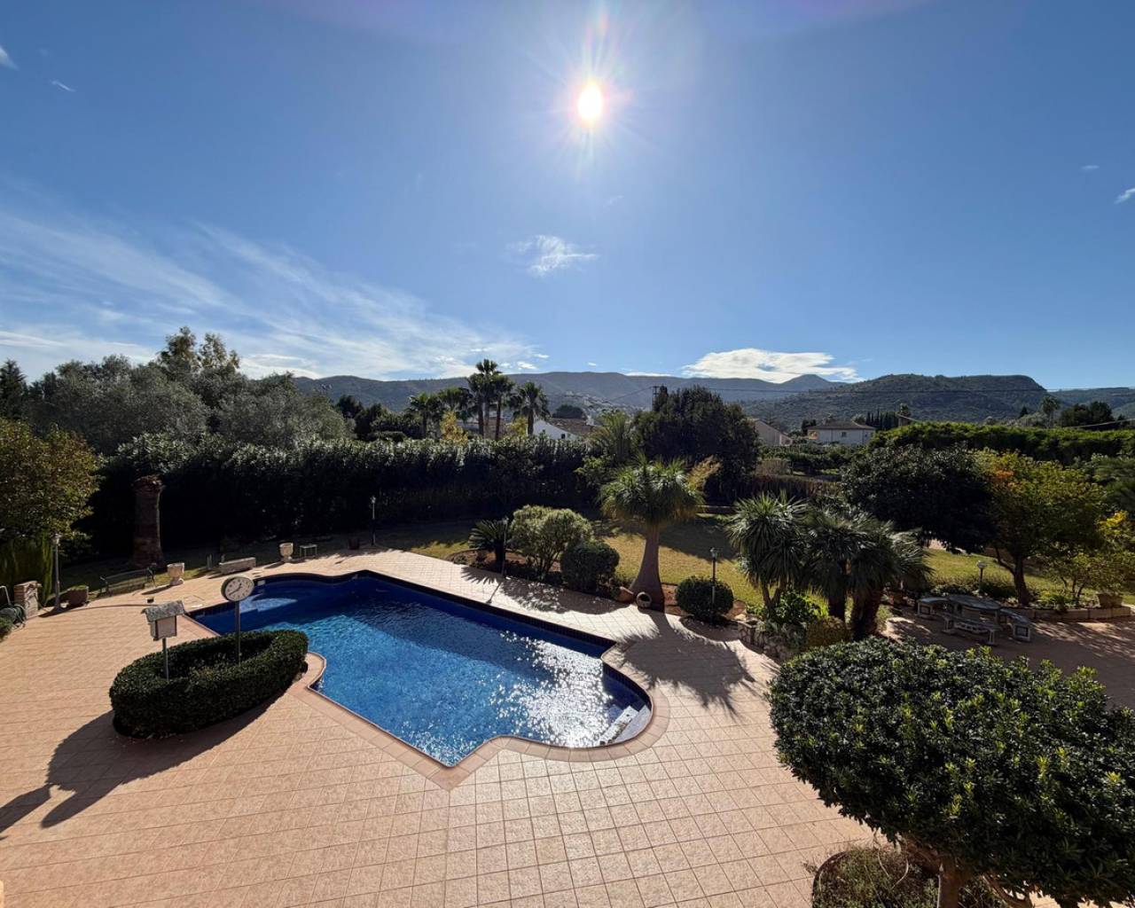 Exclusiva villa en venta situada en plena naturaleza donde el confort moderno se funde con la esencia mediterránea Enclavada en una amplia parcela de 3.700m² en una tranquila zona, esta extraordinaria finca rústica de dos plantas ofrece un equilibrio perfecto entre privacidad, amplitud y calidad de vida. Con más de 673m² construidos, posibilidad de 8 dormitorios, 5 baños y generosos espacios interiores y exteriores, se trata de una propiedad diseñada para disfrutarla intensamente durante todo el año, tanto en familia como con amigos. Desde el momento que llegamos a la casa, la finca cautiva con sus jardines cuidadosamente paisajísticos, césped natural, árboles maduros y rincones que invitan a la calma. Un entorno donde la naturaleza marca el ritmo del día a día: paseos al amanecer, momentos de relax al aire libre y el privilegio de cultivar y recolectar productos frescos de su propio huerto. La planta principal se abre a un acogedor vestíbulo que da paso a un amplio salón con chimenea, ideal para crear un ambiente cálido y elegante. El comedor amplio e independiente conecta de forma natural con una cocina totalmente equipada, que cuenta con chimenea, dos hornos, congelador y todos los electrodomésticos necesarios, además de una salida independiente a la zona de parking que aporta comodidad y funcionalidad. En este mismo nivel encontramos tres dormitorios, un despacho, despensa, lavadero y acceso directo al garaje para dos vehiculos. Todas las estancias se comunican con una gran terraza exterior equipada con cocina de verano y zona de barbacoa, convirtiéndola en el espacio perfecto para reuniones y celebraciones al aire libre. La planta superior se distribuye en dos alas bien diferenciadas. En el ala izquierda, un estudio independiente con baño y cocina propia ofrece privacidad para invitados, familiares, hijos mayores o incluso personal de servicio. En el ala derecha, dos amplias estancias polivalentes brindan múltiples posibilidades, pudiendo adaptarse como sala de juegos, home cinema, despacho creativo, salón adicional o sala de billar. Aquí podrían haber hasta cuatro dormitorios. El exterior es uno de los grandes protagonistas de esta propiedad. Una espectacular piscina rodeada de terrazas y zonas verdes se complementa con una construcción anexa que alberga un amplio jacuzzi y un baño, creando un auténtico oasis de bienestar. Las zonas ajardinadas han sido concebidas como un auténtico espacio para disfrutar en familia. Un columpio, una casita de madera y un tobogán invitan a imaginar tardes interminables de risas, juegos al aire libre y momentos compartidos con hijos o nietos. Un entorno donde el tiempo parece detenerse y cada rincón se convierte en el escenario perfecto para crear recuerdos inolvidables con familia y amigos. La finca cuenta además con un amplio huerto y una cuidada selección de árboles frutales que permiten reconectar con lo esencial y disfrutar del placer de cosechar lo propio. Vides, fresas, tomates, pepinos, albaricoques, pomelos, naranjas, mandarinas, aguacates, granadas y manzanos ofrecen la posibilidad de saborear productos frescos directamente de la tierra, transformando lo cotidiano en una experiencia auténtica y gratificante. Entre sus características más destacadas, la propiedad dispone de un garaje cubierto para dos vehículos, una pérgola cubierta para otros dos coches y una amplia zona exterior destinada a aparcamiento para invitados, pensada para recibir sin preocupaciones. Incorpora además un punto de carga para vehículo eléctrico, adaptándose a un estilo de vida moderno y sostenible. Para quienes valoran los pequeños placeres, la casa ofrece un taller y una acogedora bodega, ideal para conservar y disfrutar de vinos y licores en un ambiente íntimo y personal. La eficiencia energética es otro de los grandes valores de esta finca. Con 43 paneles solares y 10 baterías, garantiza un consumo responsable y una notable autonomía energética. A ello se suma un sofisticado sistema de aerotermia que proporciona calefacción y refrigeración de forma eficiente, asegurando confort durante todo el año. Todo se completa con múltiples terrazas exteriores, cuidadosamente orientadas para disfrutar tanto del sol como de la sombra, creando espacios versátiles donde relajarse, leer, compartir una comida o simplemente contemplar la tranquilidad del entorno. Ubicada en una zona residencial tranquila, pero a pocos minutos de todos los servicios, esta finca permite disfrutar de la paz del entorno rural sin renunciar a la cercanía de las playas de Dénia y Jávea, campos de golf y el acceso rápido a la autopista AP-7, con excelentes conexiones a los aeropuertos de Alicante y Valencia. Ideal como residencia habitual, segunda vivienda en la Costa Blanca o para quienes buscan combinar confort, naturaleza y el encanto de una finca tradicional actualizada, esta propiedad representa un estilo de vida donde el lujo se expresa a través del espacio, la tranquilidad y el contacto con el entorno. Contacte con nosotros para concertar una visita privada y descubrir personalmente todo lo que esta finca rústica tiene para ofrecer.