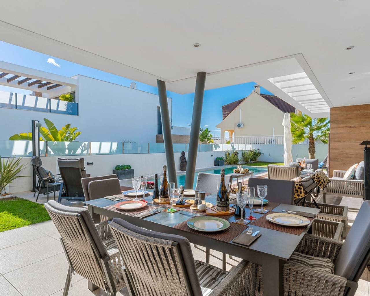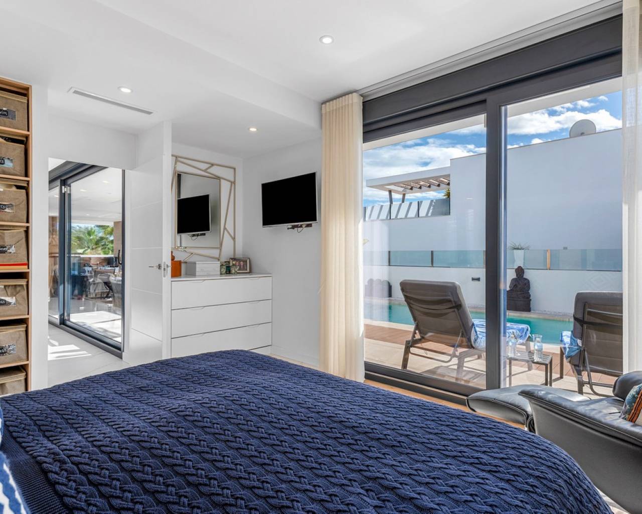 EXCLUSIVA VILLA DE LUJO CON VISTAS AL LAGO SALADO, AL MAR Y A LA MONTAÑA EN QUESADA, COSTA BLANCA Descubra el encanto incomparable de esta excepcional villa contemporánea independiente, idealmente ubicada en una de las zonas residenciales más codiciadas de Ciudad Quesada. En una posición elevada y aislada, la propiedad ofrece el equilibrio perfecto entre privacidad, refinamiento arquitectónico y vistas panorámicas a las Salinas, el mar Mediterráneo y las montañas circundantes, a solo unos minutos del centro de la ciudad. Impecablemente presentada, la villa personifica la vida de lujo moderna, combinando comodidad, discreción y tecnología de vanguardia para hogares inteligentes, totalmente controlable mediante una aplicación desde cualquier lugar del mundo. Su ubicación privilegiada garantiza un fácil acceso a restaurantes de lujo, boutiques, campos de golf y servicios cotidianos, lo que la convierte en la opción perfecta para vivir permanentemente o para un elegante refugio mediterráneo. Tras unas puertas eléctricas, un amplio camino privado conduce a la villa, con aparcamiento para varios vehículos y una cochera para vehículos más grandes o una autocaravana. La amplia parcela cuenta con un hermoso jardín y está diseñada para disfrutar al aire libre, con una piscina de agua salada de 9 x 5 metros con cubierta eléctrica, terrazas, árboles frutales y acogedoras zonas de ocio. Una elegante cocina de verano, barbacoa y cómodos asientos la convierten en el lugar ideal para largas tardes o veladas inolvidables con familiares y amigos. En el interior, la villa se distribuye en dos niveles y está diseñada para maximizar la luz, la fluidez y la funcionalidad. El recibidor separa las estancias principales, dando paso a una zona de salón, comedor y cocina de planta abierta, con muebles a medida, acabados contemporáneos y amplios ventanales que dan a las terrazas del jardín y la piscina. La cocina de alta gama está equipada con electrodomésticos Bosch de alta gama e incluye una mesa de comedor familiar integrada. La planta baja también alberga dos elegantes dormitorios, uno a la izquierda y otro a la derecha, cada uno con baño en suite, armarios empotrados, vistas al jardín, a la piscina y parciales a los Lagos Salados. Toda la propiedad cuenta con calefacción por suelo radiante, lo que mejora el confort en cualquier época del año, mientras que un sistema de domótica totalmente integrado permite el control total de la villa a distancia desde cualquier lugar del mundo. Un lavadero de tamaño generoso, que también funciona como espacio de servicio para invitados, ha sido cuidadosamente diseñado con amplio espacio de almacenamiento y acceso directo al jardín trasero, combinando practicidad y conveniencia. Una llamativa escalera flotante pasa por una pared de piedra natural y conduce al nivel superior... Encontrará dos exquisitos dormitorios adicionales con baño privado que dan directamente a una terraza panorámica, ofreciendo extraordinarias vistas panorámicas a los Lagos Salados, el mar Mediterráneo y las montañas circundantes. El dormitorio más grande cuenta con un baño privado más amplio y su propia terraza privada, además de ofrecer acceso directo a la terraza compartida y sus impresionantes vistas. También encontrará acceso independiente a través de una pasarela de vidrio a la amplia terraza de la azotea, diseñada para el entretenimiento con cómodos asientos y un elegante bar totalmente equipado: el entorno perfecto para reuniones elegantes o veladas relajadas, todo mientras disfruta de vistas ininterrumpidas del Mediterráneo y espectaculares puestas de sol. Cada aspecto de esta villa refleja el gusto refinado de su propietario, cuya experiencia en la industria de la moda es evidente en la cuidadosa selección de materiales, texturas y acabados, dando como resultado una casa de excepcional calidad y diseño cohesivo. Vídeo de la propiedad disponible: envíenos un mensaje y se lo enviaremos de inmediato. Contáctenos hoy mismo para programar su visita privada, ya sea presencial o virtual. Propiedades de este calibre y exclusividad rara vez están disponibles por mucho tiempo; le recomendamos encarecidamente consultar con anticipación.