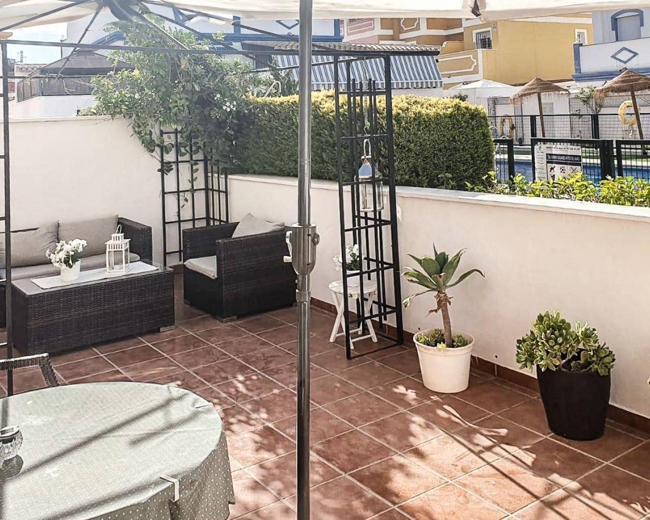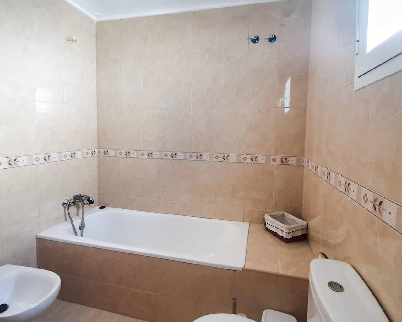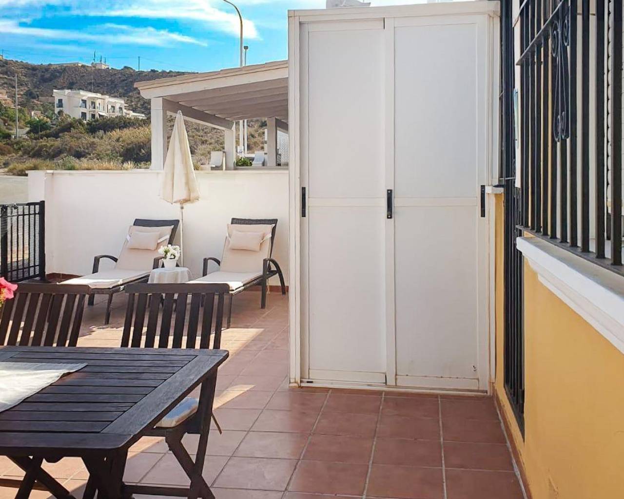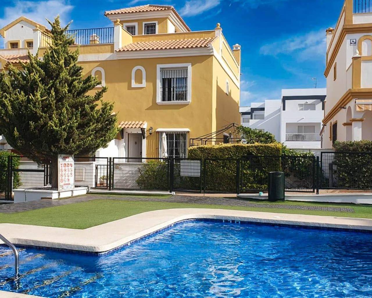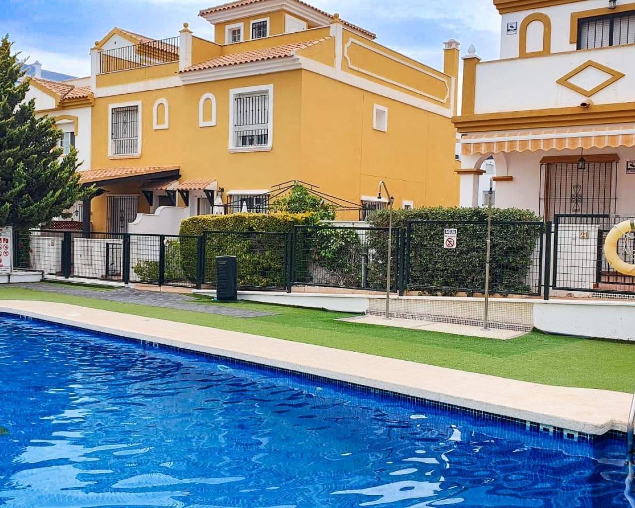 Presentamos este bonito adosado de esquina sobre una parcela de 148m2 que se encuentra a tan solo 600 metros de la playa (Cala Tia Antonio y Playa Mar Rabiosa). Se distribuye en:~- Planta baja: salón-comedor, cocina independiente, baño y 1 habitación. Con amplia terraza y parking~- Planta alta: 2 dormitorios con terraza independiente y un baño.~- Solárium. ~Equipado con aire acondicionado por splits y armarios empotrados. ~Urbanización con zonas ajardinadas muy cuidadas y piscina.