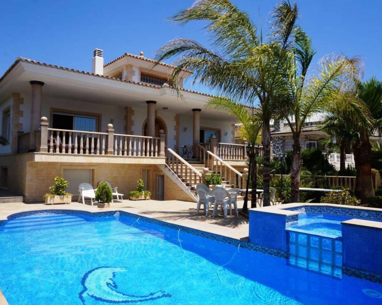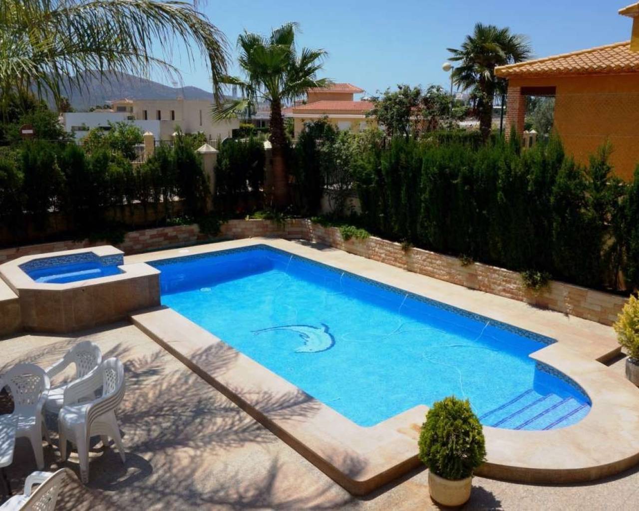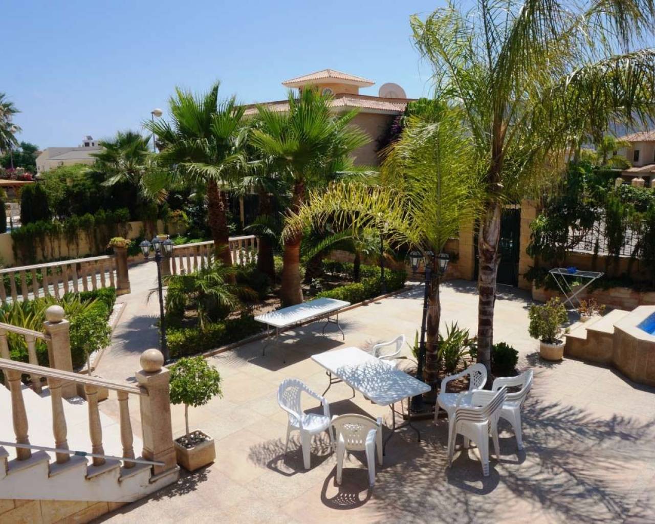 Beautiful villa located in a quiet area of Alfaz del Pi. It is distributed on two floors, a large living room with fireplace, a modern kitchen with access to the terrace, six bedrooms, six bathrooms and a toilet. Has a courtyard with marble and granite flooring, a nice garden, swimming pool, jacuzzi and garage.