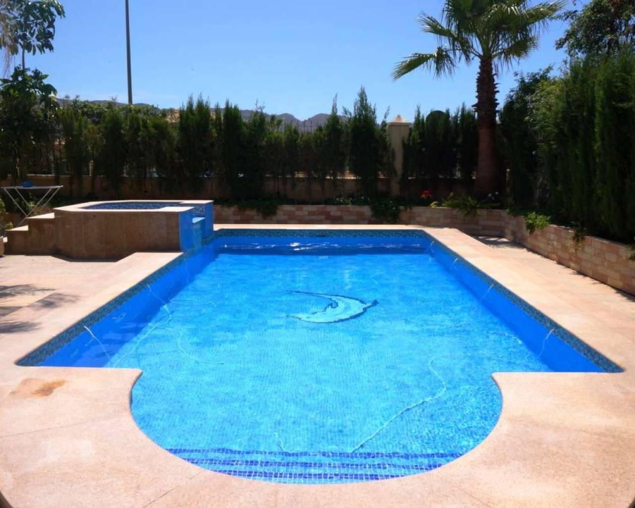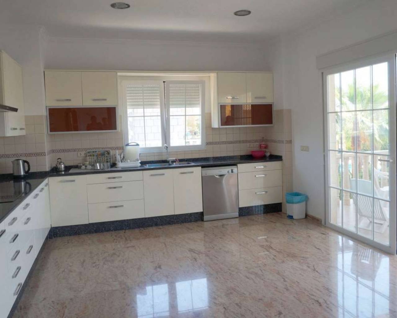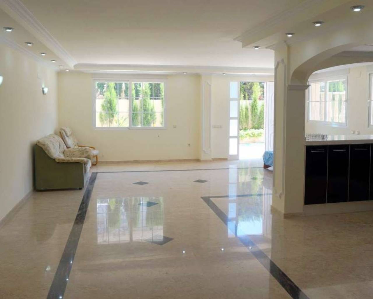 Beautiful villa located in a quiet area of Alfaz del Pi. It is distributed on two floors, a large living room with fireplace, a modern kitchen with access to the terrace, six bedrooms, six bathrooms and a toilet. Has a courtyard with marble and granite flooring, a nice garden, swimming pool, jacuzzi and garage.