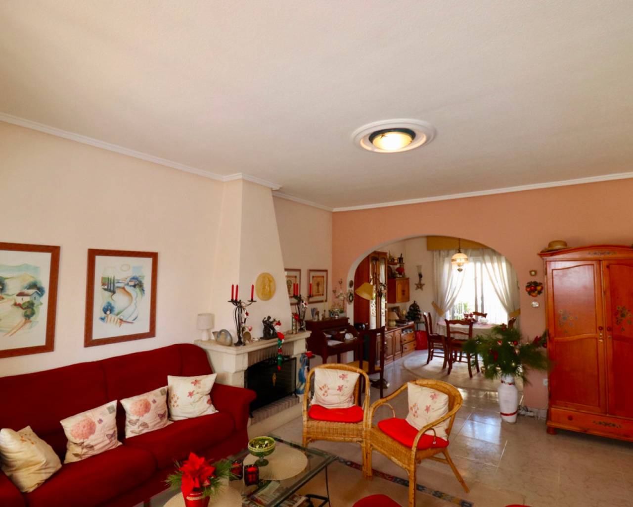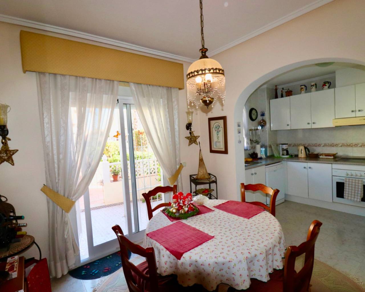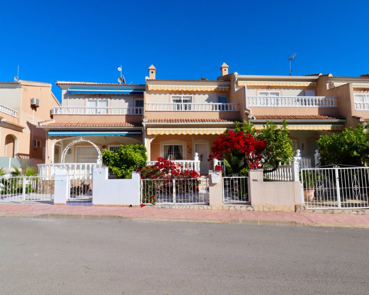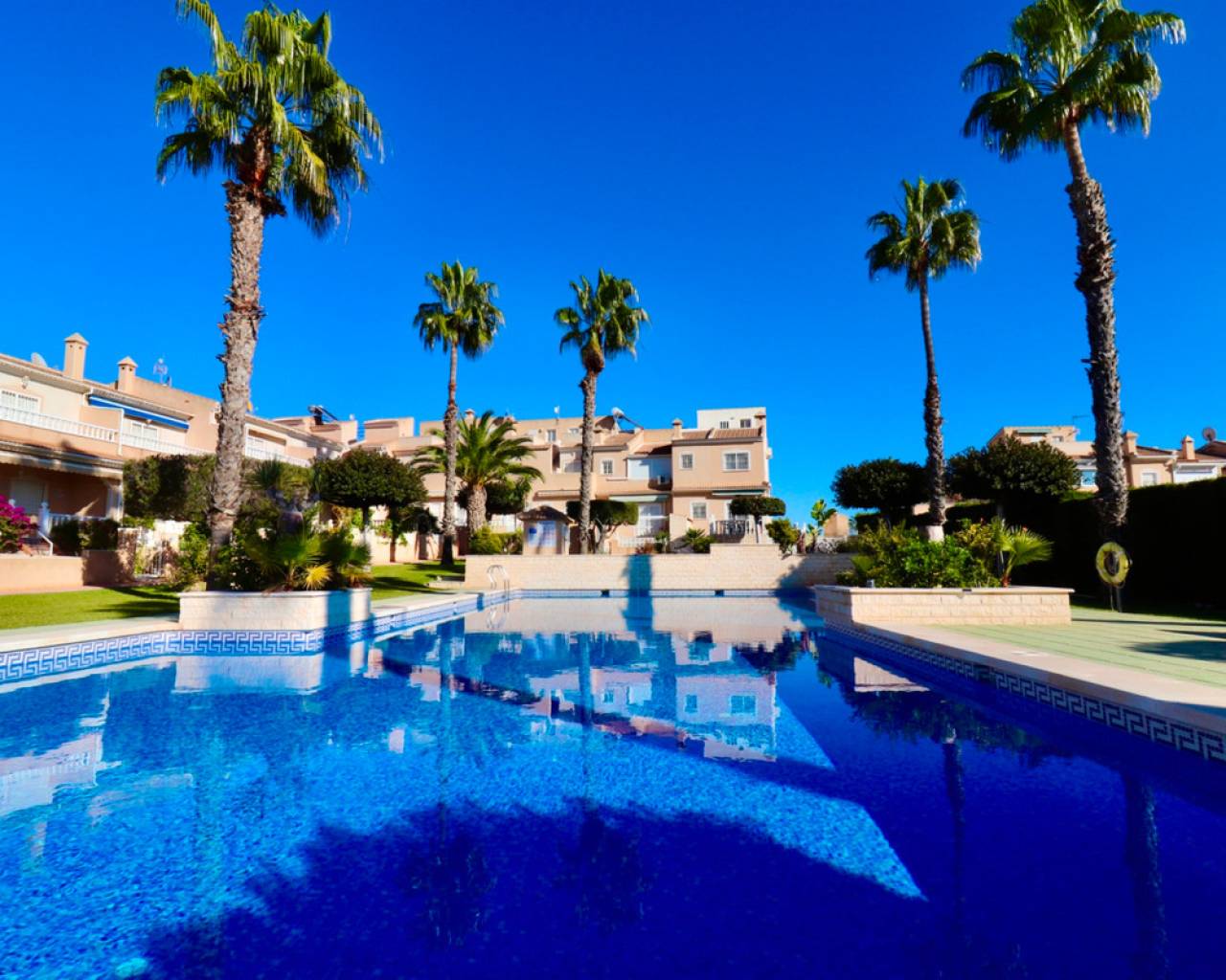 This well-maintained house is located in the desirable Doña Pepa neighborhood of Ciudad Quesada. Inside, you'll find a spacious, bright living room, a separate dining room, and a functional kitchen. The house features three bedrooms and two bathrooms, all in their original condition. The sunny terrace offers ample space to relax and enjoy the Spanish climate. Residents have access to a communal swimming pool. About the area: The Doña Pepa neighborhood is known for its peaceful atmosphere, wide streets, and international community. Various shops, restaurants, and sports facilities are within walking distance. Guardamar beach is approximately a 10-minute drive away (about 7 km). The La Marquesa golf course can be reached in approximately 5 minutes by car (about 3 km). Thanks to its central location, both Alicante and Murcia airports are easily accessible.