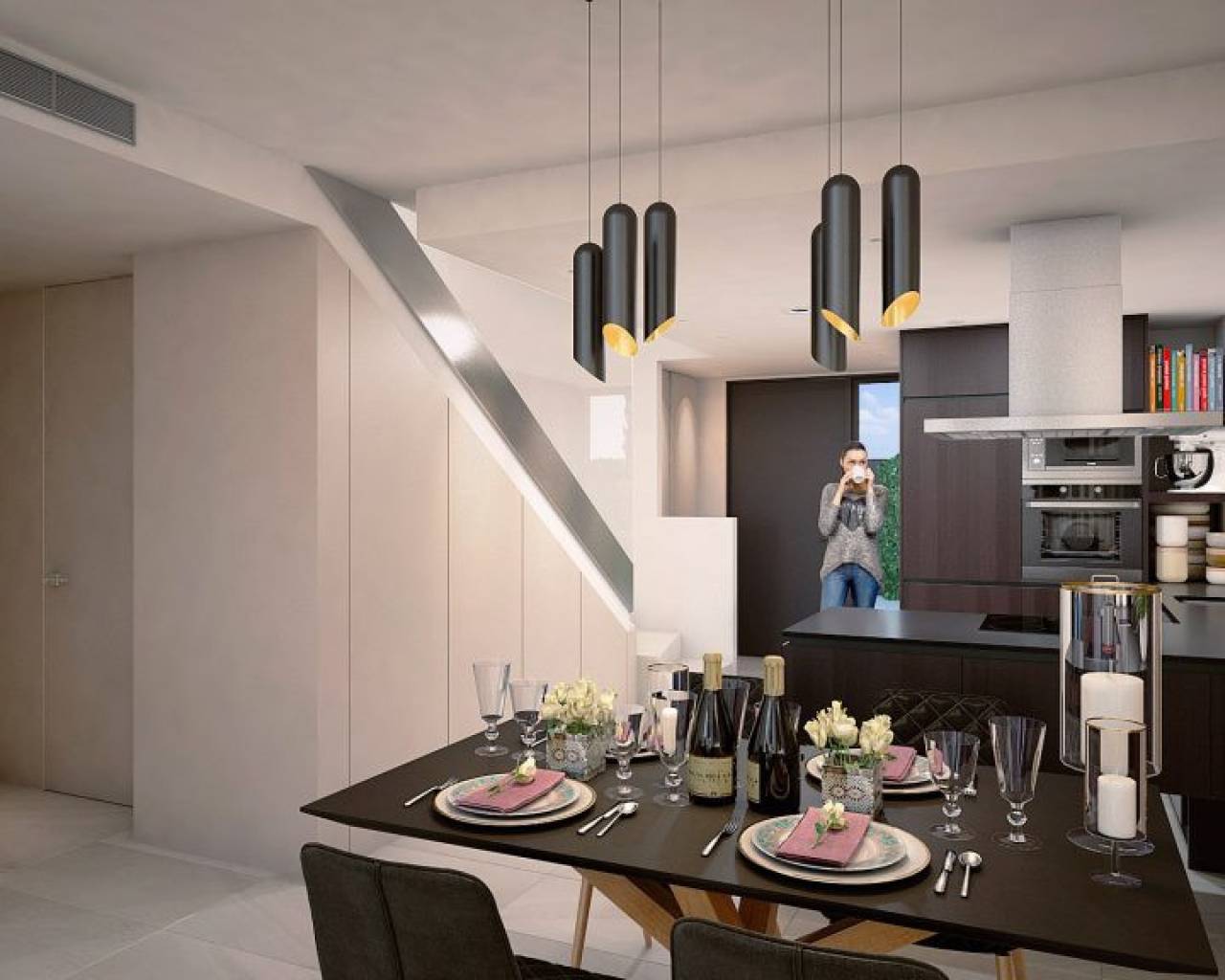 These magnificent semi-detached houses are located in our new residential Mar Egeo, located in one of the most exclusive and privileged areas of the Costa Blanca South, surrounded by nature and tranquility. This impressive two-story home offers a perfectly organized layout designed to provide comfort and functionality in each of its spaces. On the first floor, there is a bright living room that connects to the dining room and kitchen with breakfast bar, creating a spacious environment to receive family and friends. From the living room we give way to a large garden with private pool. It also has two bedrooms and a bathroom fully equipped with sink, mirror, full shower screen and underfloor heating for comfort. On the second floor, the master bedroom is located with panoramic views to the outside, private bathroom and access to the solarium. In addition, each bedroom includes large closets to maximize storage space. This housing model offers 2 options, Leros and Leros Plus, the latter with a large basement. In short, this home features a smart and balanced layout, perfect for accommodating a large family in one space without sacrificing comfort and style. 1496 | Future SHOWHOUSE