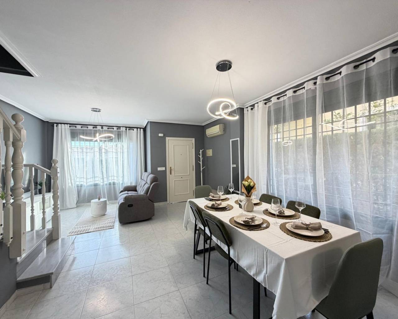 Townhouse for sale in one of the best and most sought-after areas of Orihuela Costa, Alicante province, Spain.The property has been renovated, with a total area of 85 m², and includes:• 2 bedrooms• 2 bathrooms• air conditioning• sold fully furnished• with appliances and decorative elements included(all as shown in the photographs)The property also features:• 2 private plots with a total area of 25 m²• private solarium of 20 m² with sea viewsLocated in the well-maintained residential complex Lomas de Campoamor, built in 2003.About the Lomas de Campoamor complexQuiet and well-maintained residential complex, with large green areas and common spaces.It has a community pool, relaxation areas, and internal walkways.Close to golf courses, supermarkets, restaurants, and all necessary services.The beaches of Orihuela Costa are just a few minutes' drive away.???? Ideal as:• main residence• second residence• investment for rental