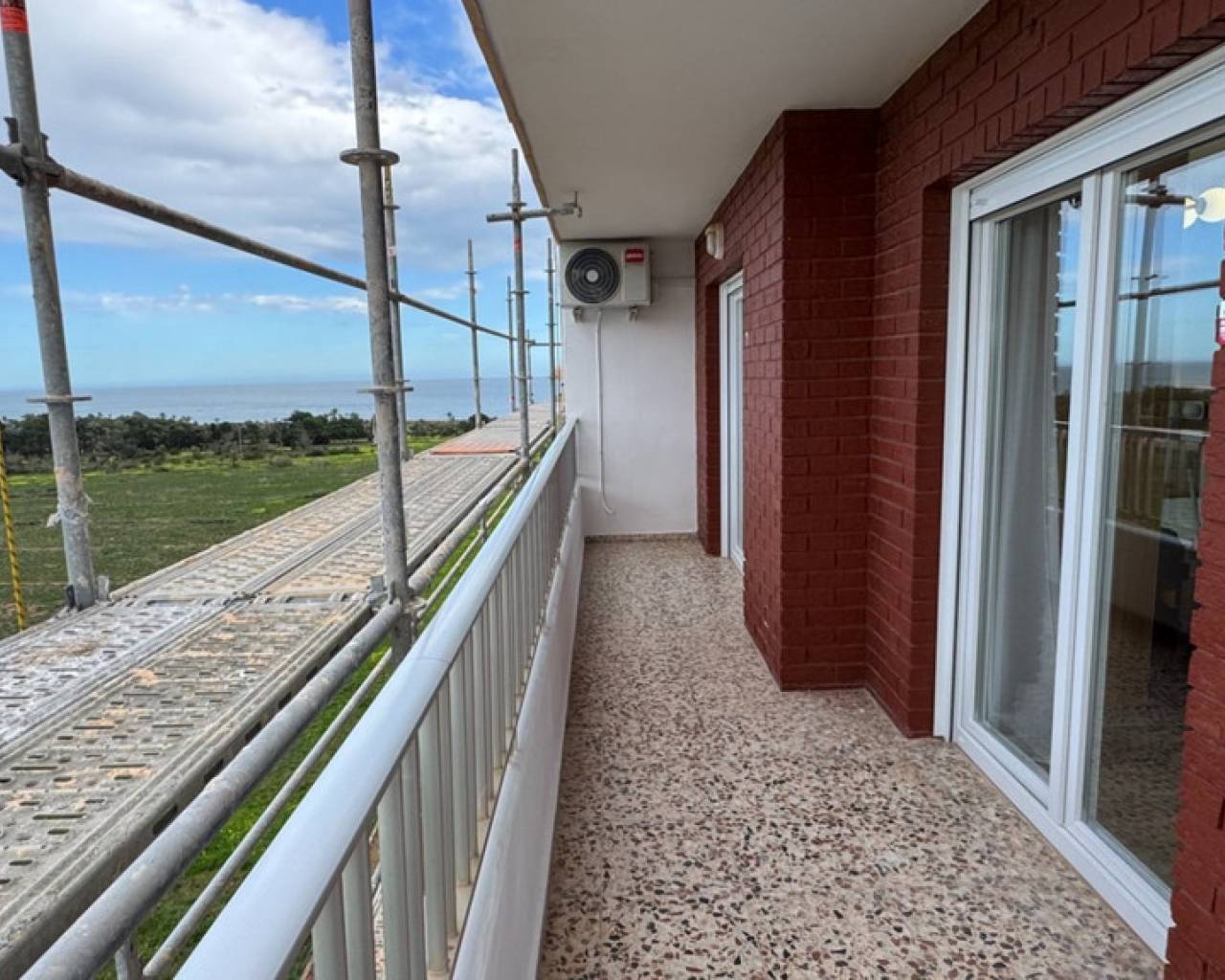 Located just 500 metres from the Mediterranean Sea, this fully renovated corner penthouse on the 6th floor offers privacy, natural light and panoramic views in one of the most prestigious areas of Punta Prima. The elevated top-floor position and corner layout provide open views of the sea, salt lakes, mountains and city skyline, with sunrises and sunsets visible throughout the year. The apartment benefits from excellent natural light and a strong sense of openness both day and night. The property has a constructed area of 70 m² and has been renovated to a high standard. All windows open directly onto the terrace, creating a seamless indoor–outdoor connection and eliminating internal patios. Panoramic sound-insulated windows ensure excellent acoustic comfort while maintaining open views. The interior features modern designer furniture, natural stone elements and large-format porcelain tiles. The fully equipped kitchen includes an induction hob and quality appliances. Comfort is ensured with inverter air conditioning with WiFi control, a programmable boiler and good insulation. The apartment is sold fully furnished and ready for immediate use. The building offers a lift and a communal swimming pool. A full façade renovation is currently in progress and has been fully paid, with no additional costs for the new owner. The apartment has a tourist license, and a new license can be reissued, as licenses are granted within this building. Gated communal parking with a roof is available on site. An optional underground parking space can be purchased for €10,000.
