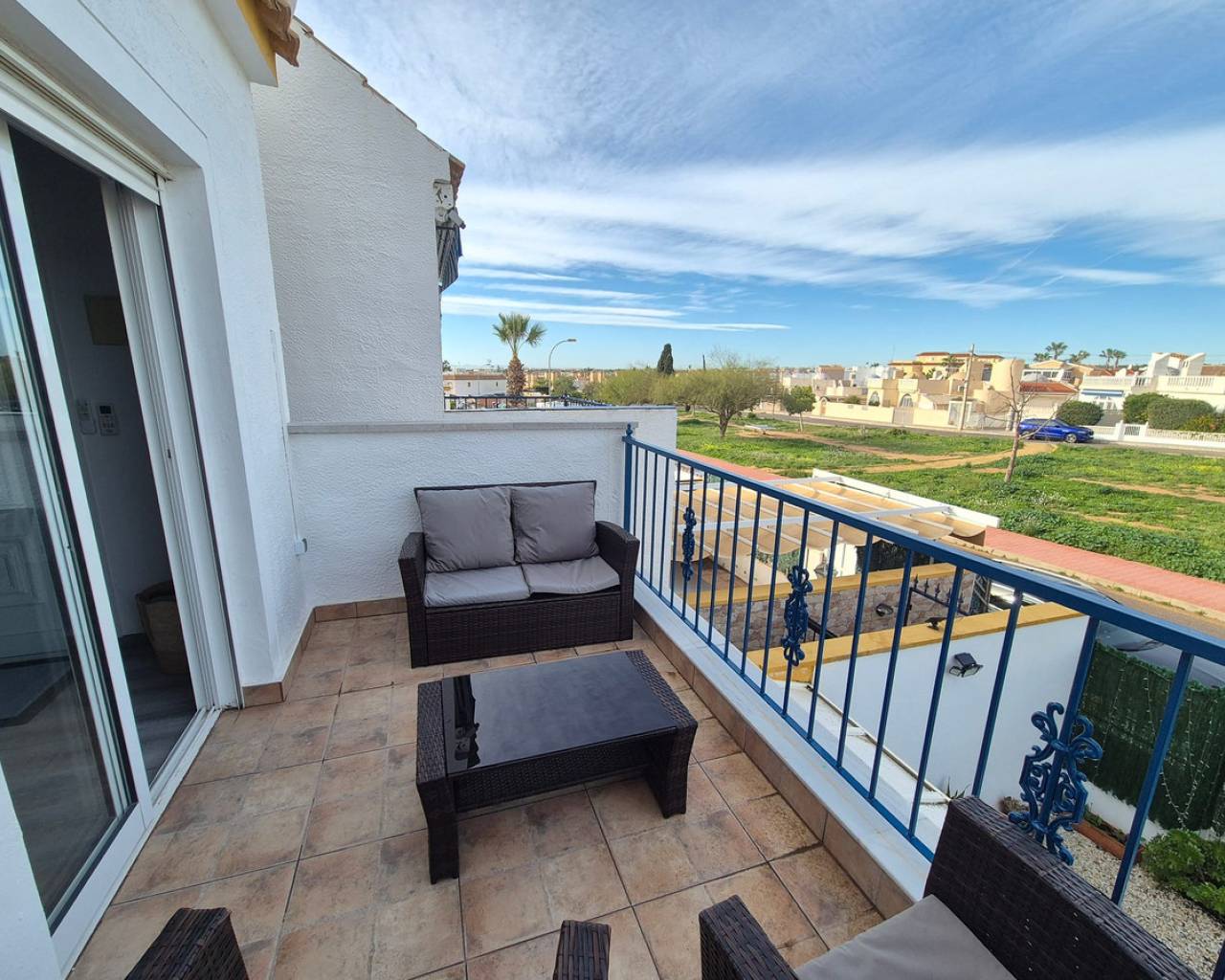 This attractive 3-bedroom, 2-bathroom top-floor penthouse apartment is ideally located in the highly sought-after area of La Florida, within easy reach of a wide selection of local amenities and just a short drive from the beach. The main living level offers a bright living–dining room, a separate fully equipped kitchen, two well-proportioned bedrooms, and a family bathroom. From the living area, doors lead out to a pleasant balcony overlooking a park area, providing a peaceful green outlook. Upstairs, the property truly comes into its own with a spacious private solarium, perfect for sunbathing, entertaining, or relaxing outdoors. This level also features a large additional room, currently used as the third bedroom and sitting area, there is also a shower room on this level- offering flexible accommodation ideal for guests or extended family. Set within a well-maintained urbanisation, residents enjoy access to a beautiful communal swimming pool and tennis courts, enhancing the lifestyle appeal of this fantastic home. The property also benefits from air-conditioning and is sold partly furnished (subject to offer). Whether you're looking for a permanent residence, holiday home, or investment opportunity, this penthouse offers space, location, and excellent communal facilities in one of the area's most popular locations. If you would like to view this 3 bedroom penthouse apartment in La Florida, get in touch!