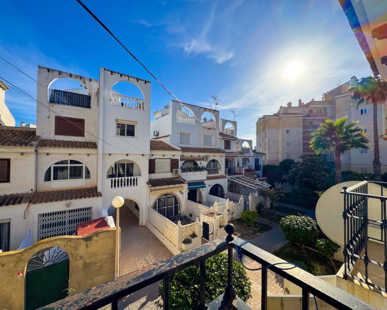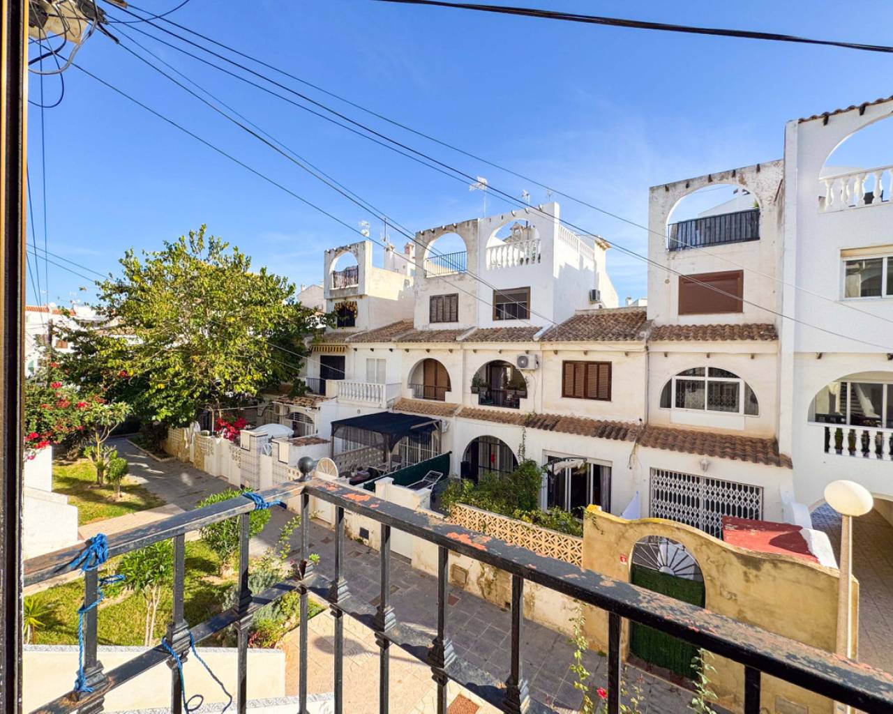 This upper floor bungalow in the Calas Blancas urbanization of Torrevieja, located just 1 kilometer from the sea, offers a sunny terrace with direct access to communal gardens and swimming pools, highlighting its privileged location near Parque de Europa and only a 15-minute walk from the city center. Featuring a comfortable and practical layout, the bungalow includes a living-dining room, fully equipped open kitchen, a complete bathroom, and one bedroom with built-in wardrobe. It benefits from two orientations, northeast and southwest, providing pleasant natural light and cross ventilation. The urbanization offers tranquility and access to communal areas perfect for leisure and relaxation. Its proximity to services, transport, and shopping areas makes this property ideal for permanent residence or investment with seasonal rental options. Contact us to visit this bungalow or request a virtual tour or detailed floor plan.