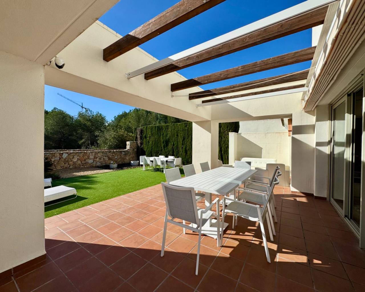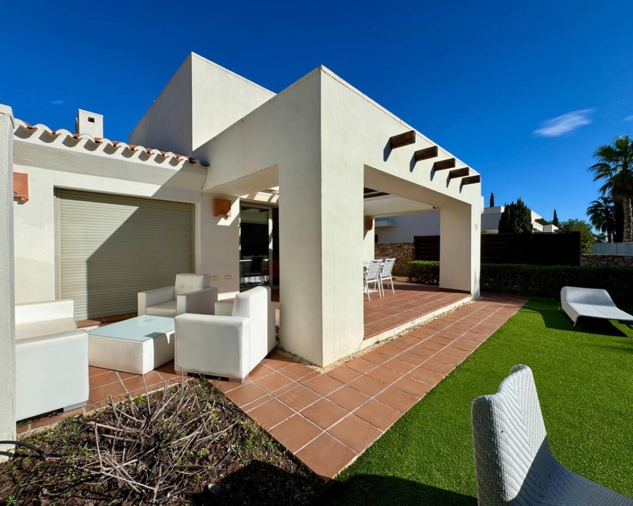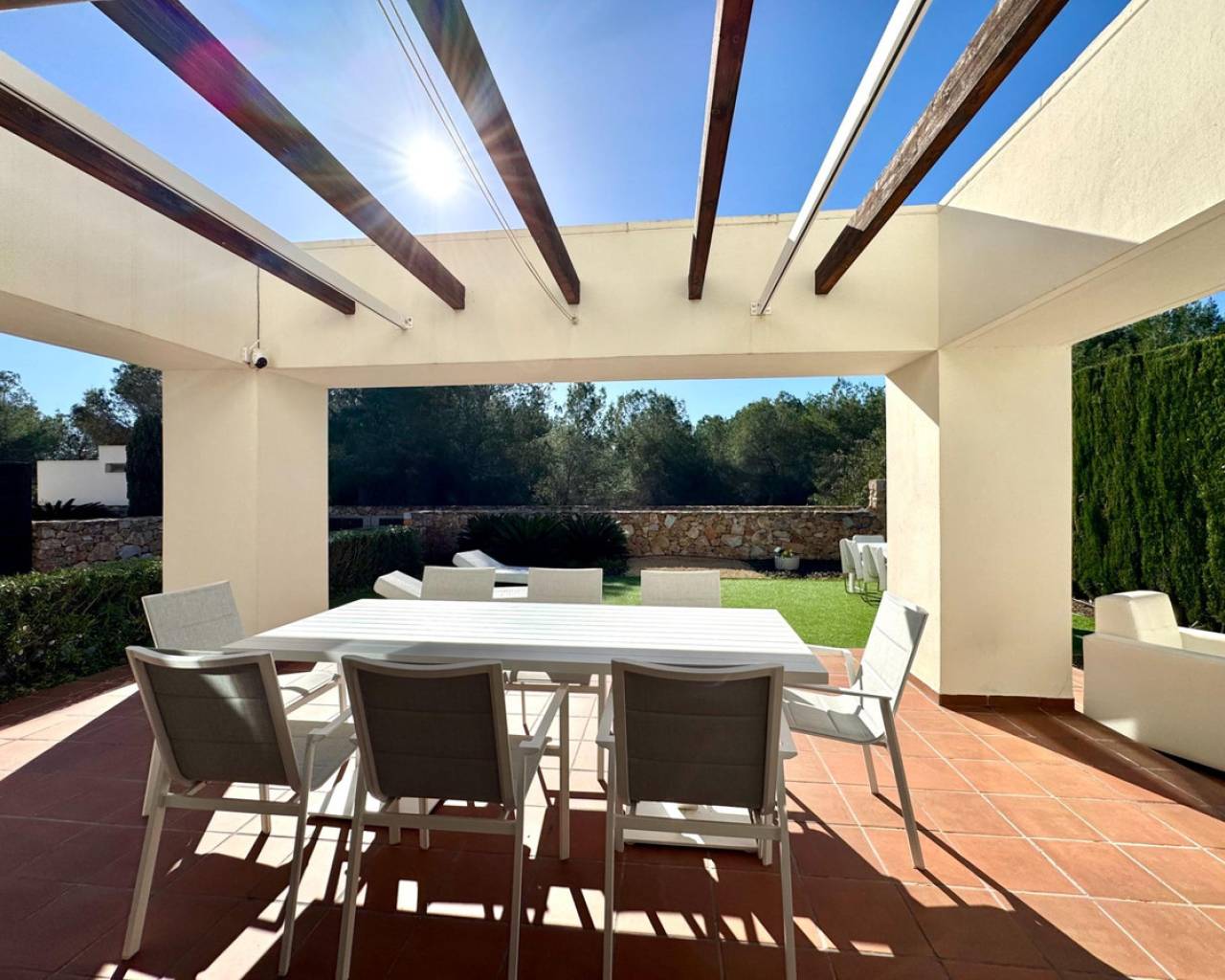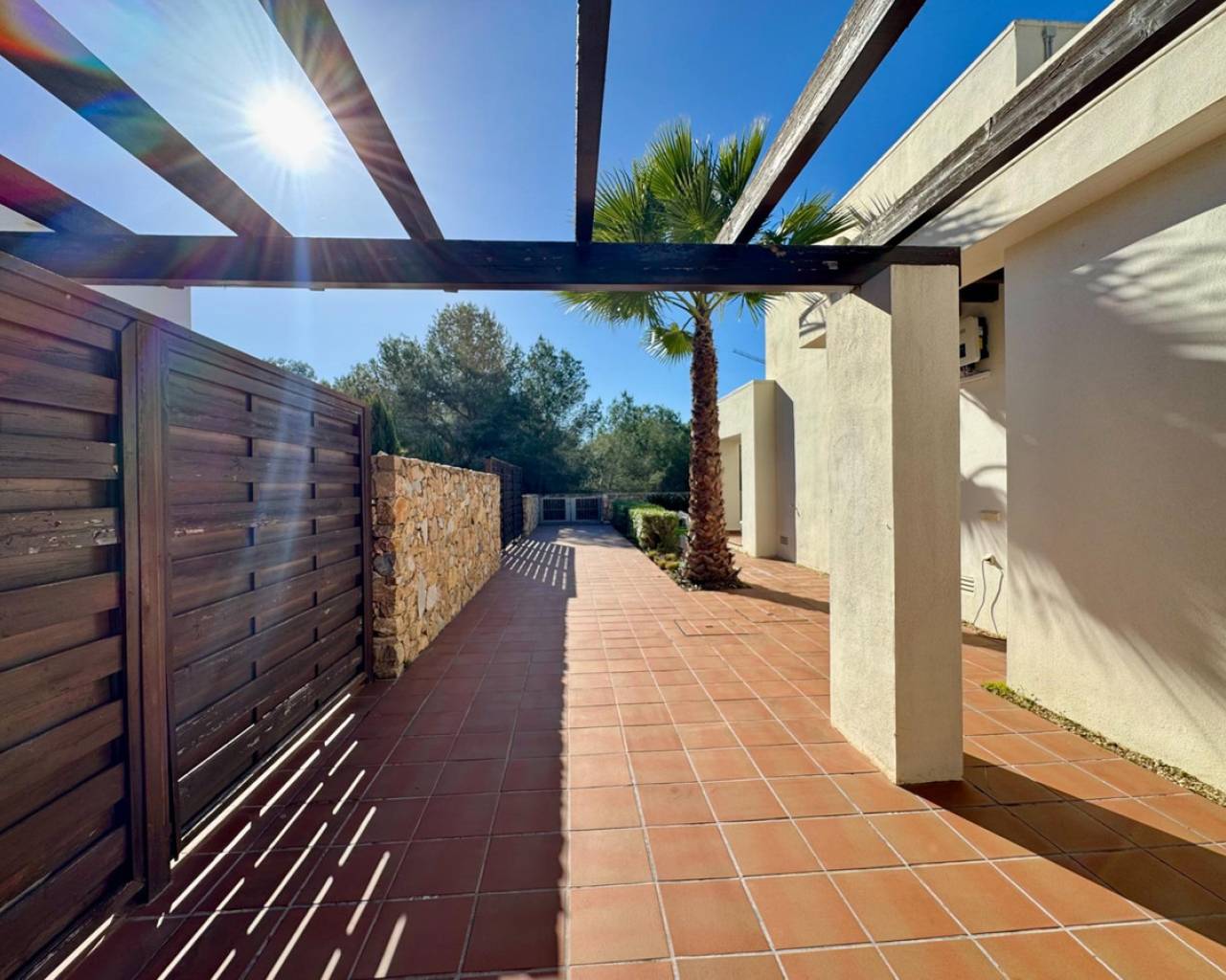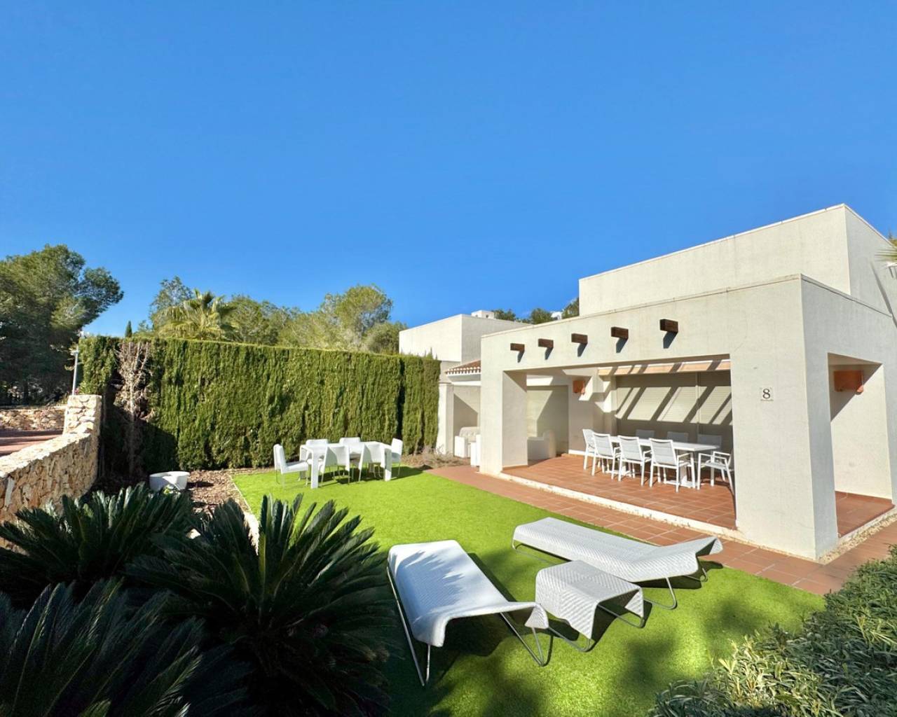 Welcome to Villa Encina, an architectural gem located in the heart of the prestigious Las Colinas complex, where exclusivity, light, and nature come together to offer an unparalleled Mediterranean lifestyle. With 108 m2 of built space, fully furnished, and thoughtfully designed, this villa exudes elegance and comfort in every corner. Its spacious bedrooms and bright living areas, south-facing, create a warm and inviting atmosphere, perfect for daily life or entertaining guests.~~The true charm of Villa Encina lies in its 70 m2 covered terrace, a seamless extension of the interior where you can enjoy sunny breakfasts, outdoor dinners, or peaceful moments surrounded by lush greenery. The 372.24 m2 plot provides a private garden and a designated parking area, ensuring complete privacy and convenience.~~Surrounded by top-tier golf courses, nature trails, and high-quality amenities, this villa is more than just a home: it is a Mediterranean sanctuary where every detail has been designed to blend style, light, and well-being. Villa Encina offers the opportunity to experience the authentic Las Colinas lifestyle—a move-in ready home, inviting you to enjoy life, serenity, and sophistication in an incomparable setting.