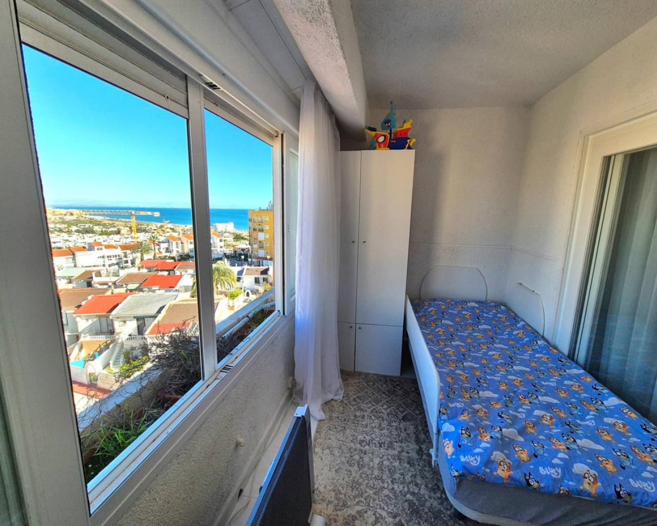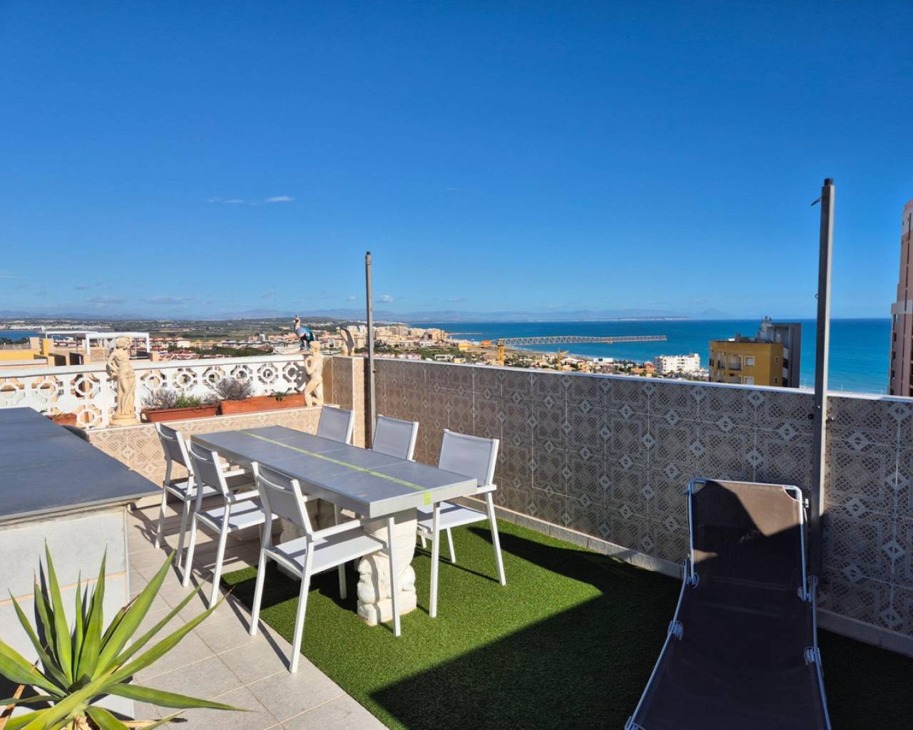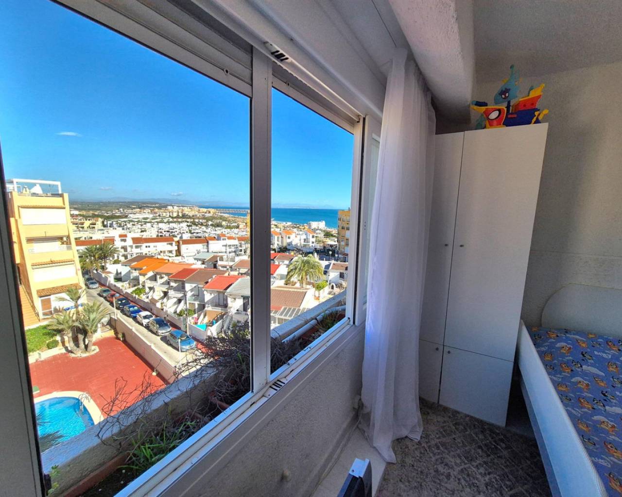 Discover this stunning duplex penthouse located in the desired Torrejón area, within the lively coastal city of Torrevieja. With a constructed area of 84 m² and a usable area of 75 m², this property is ingeniously distributed to maximize comfort and functionality of the space. Offered at an attractive selling price of just €238,000, it represents an exceptional opportunity for both residence and investment. Its southeast orientation ensures abundant natural light throughout the day and is just 400 meters from the sea.The home consists of two bedrooms (one double), designed with attention to detail to provide optimal rest; additionally, it has a full bathroom along with an additional toilet perfect for guests. The private terrace is ideal for relaxing while enjoying unparalleled panoramic views that include majestic natural landscapes.Among its additional services, highlights include direct access to a perfect community pool to cool off on hot days, as well as a very practical private storage room.The surroundings stand out for being spacious and bright due to its exterior design located within a quiet residential complex surrounded by leafy trees providing natural freshness, with easy access to public transport allowing quick connections to local shopping areas generating daily convenience. Additionally, it is close to schools, which is favorable for families seeking optimal education without neglecting commuting time. Along with these advantages, impressive open views of the sea, mountains, and Spanish nature create a bright and relaxing atmosphere, where you can enjoy beautiful sunrises and sunsets every day! The apartment offers interesting possibilities to modify the distribution of windows, potentially adding new windows and converting two bedrooms into three complete ones, undoubtedly an excellent option for comfortable living or investment increasing value after renovation.
