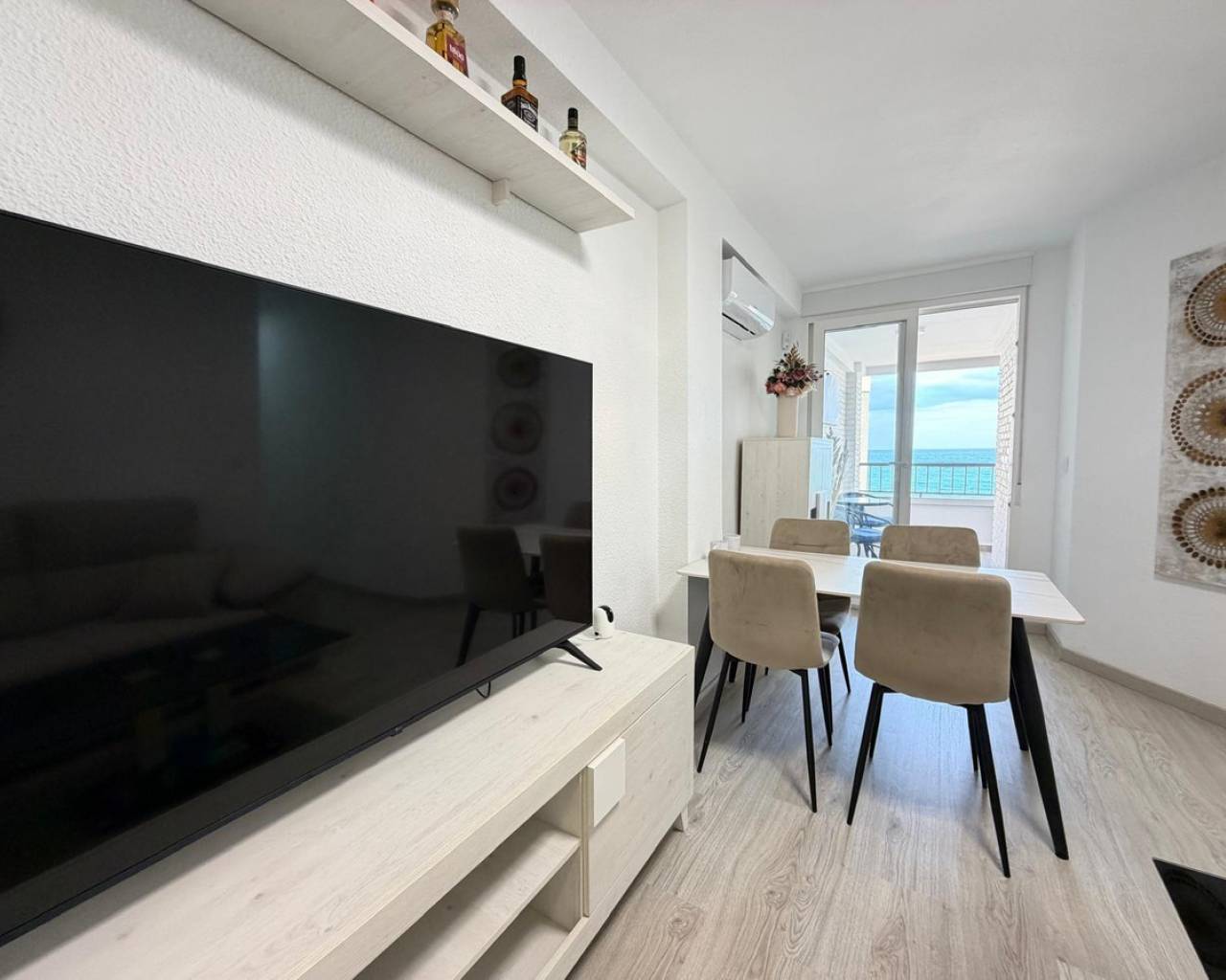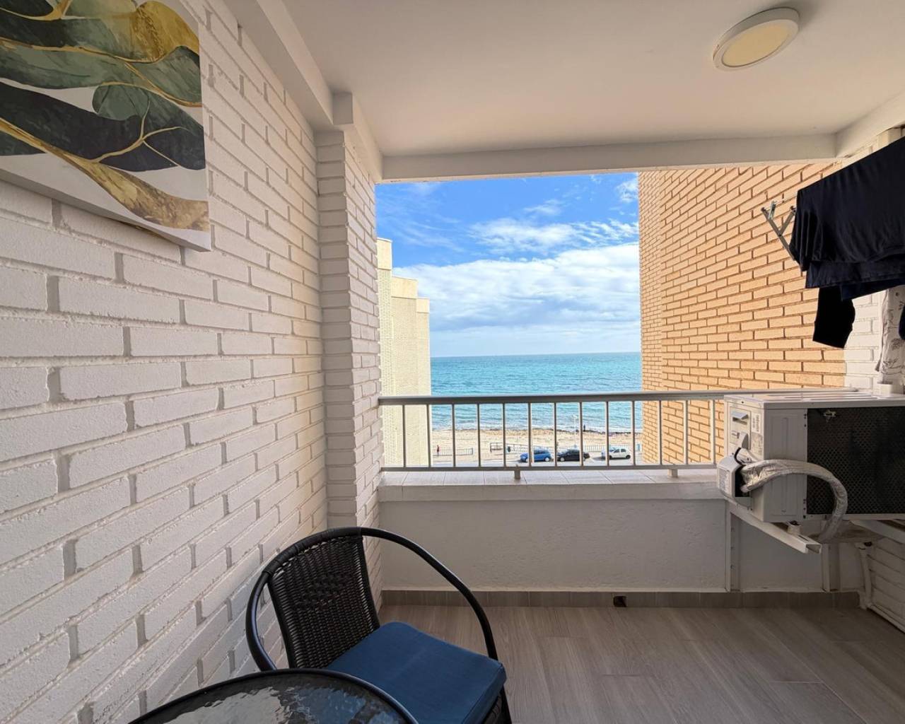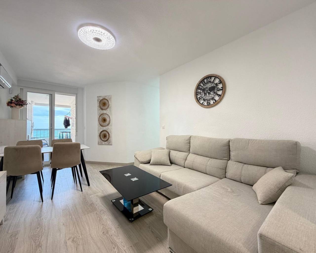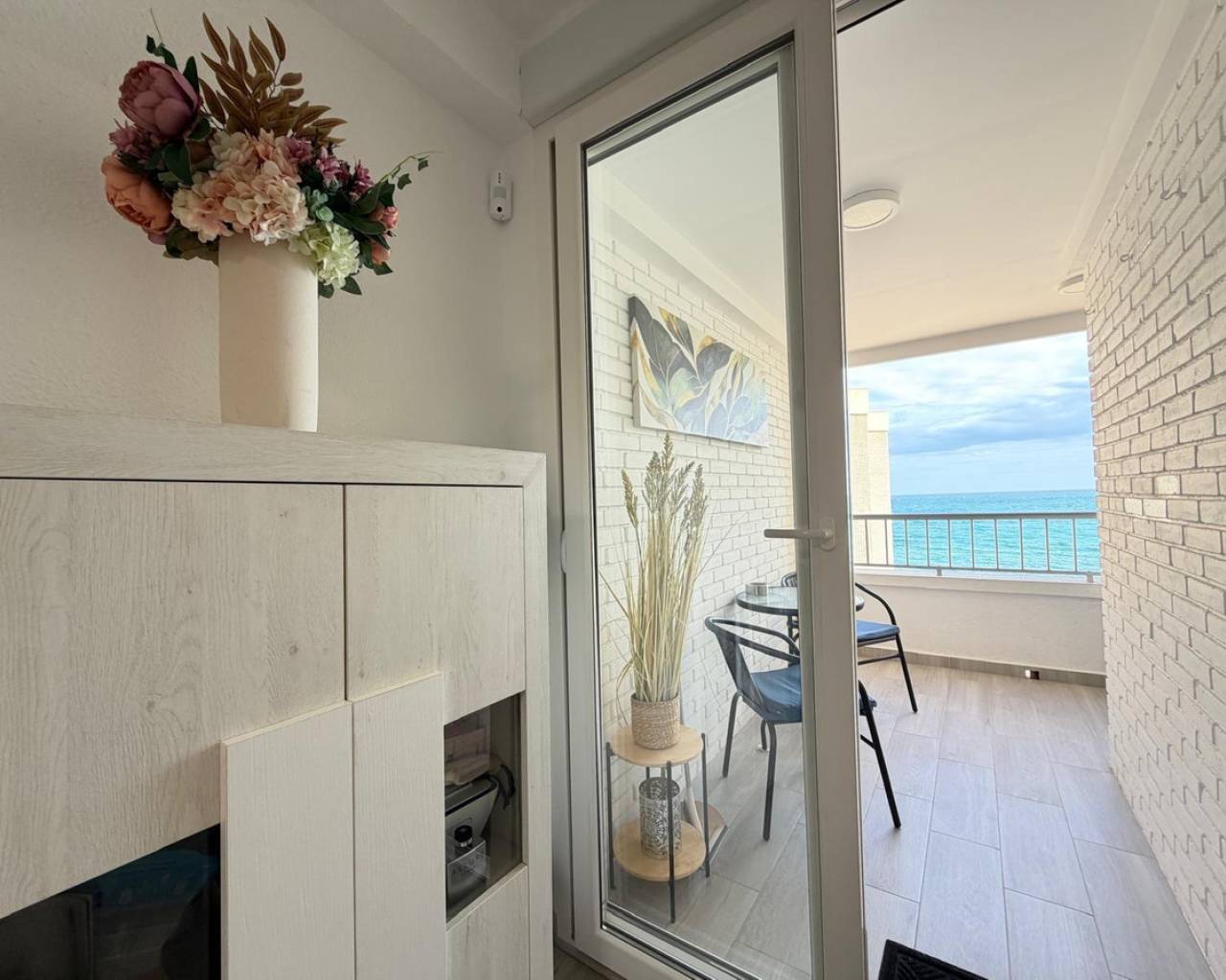 Apartment for sale in the first line of the sea, with stunning panoramic views of the sea enjoyed from the terrace. An exclusive property located right in front of Los Locos beach, in one of the most sought-after areas of Torrevieja.???? Main features:• Total area: 106 m²• Floor: fifth• Distribution: 3 bedrooms and 2 bathrooms• Condition: completely refurbished (full renovation)• Views: panoramic sea views• Parking: garage space included in the price❄️ Comfort and equipment:• Air conditioning cold / heat• The property is sold fully furnished and equipped, with appliances and decorative elements, as shown in the photographs• Ready to move in???? Location and advantages:The residential complex is located in front of Los Locos beach, just a few steps from the promenade, restaurants, cafés, supermarkets, and all services.An excellent option for both permanent residence and vacation or long-term rental, thanks to its privileged location, sea views, and high level of comfort.