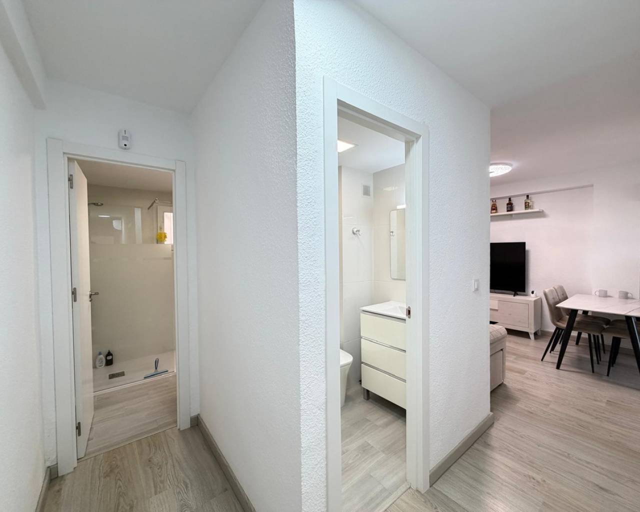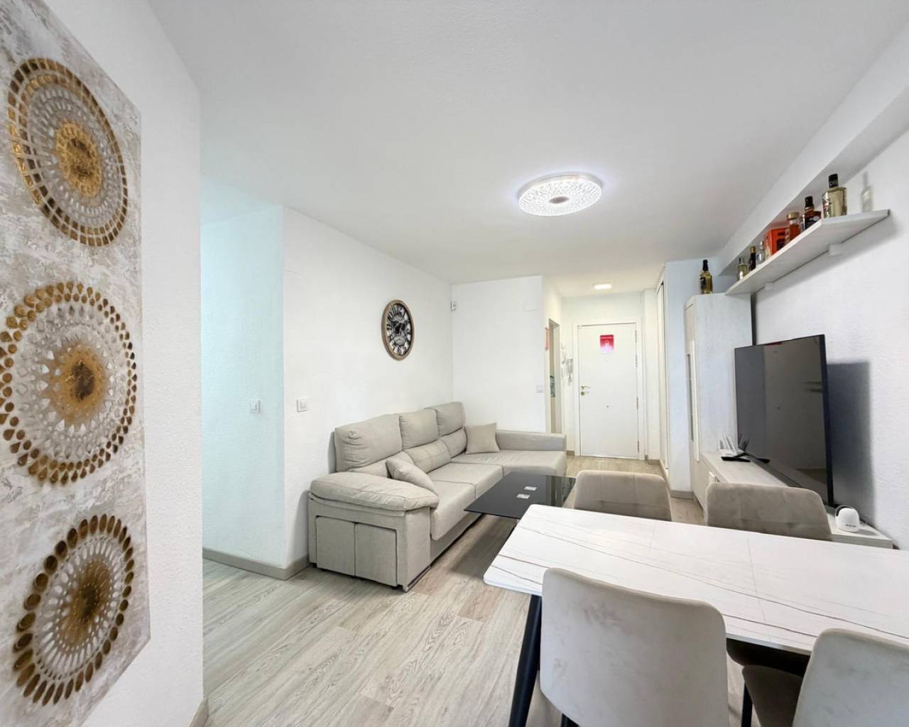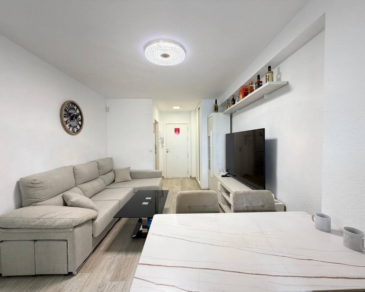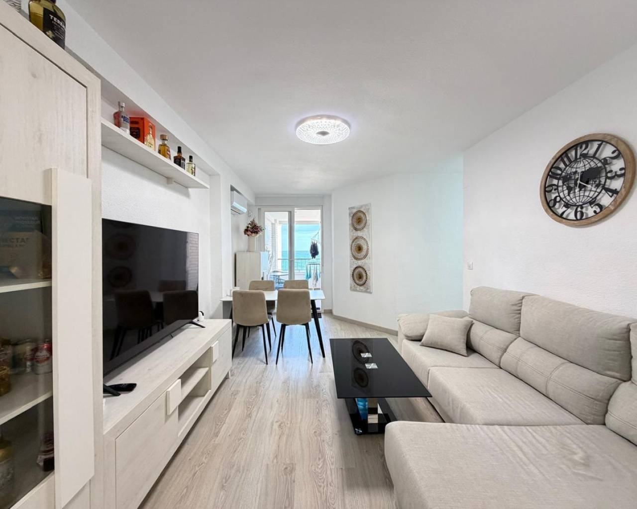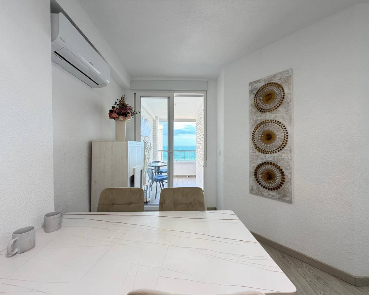 Apartment for sale in the first line of the sea, with stunning panoramic views of the sea enjoyed from the terrace. An exclusive property located right in front of Los Locos beach, in one of the most sought-after areas of Torrevieja.???? Main features:• Total area: 106 m²• Floor: fifth• Distribution: 3 bedrooms and 2 bathrooms• Condition: completely refurbished (full renovation)• Views: panoramic sea views• Parking: garage space included in the price❄️ Comfort and equipment:• Air conditioning cold / heat• The property is sold fully furnished and equipped, with appliances and decorative elements, as shown in the photographs• Ready to move in???? Location and advantages:The residential complex is located in front of Los Locos beach, just a few steps from the promenade, restaurants, cafés, supermarkets, and all services.An excellent option for both permanent residence and vacation or long-term rental, thanks to its privileged location, sea views, and high level of comfort.