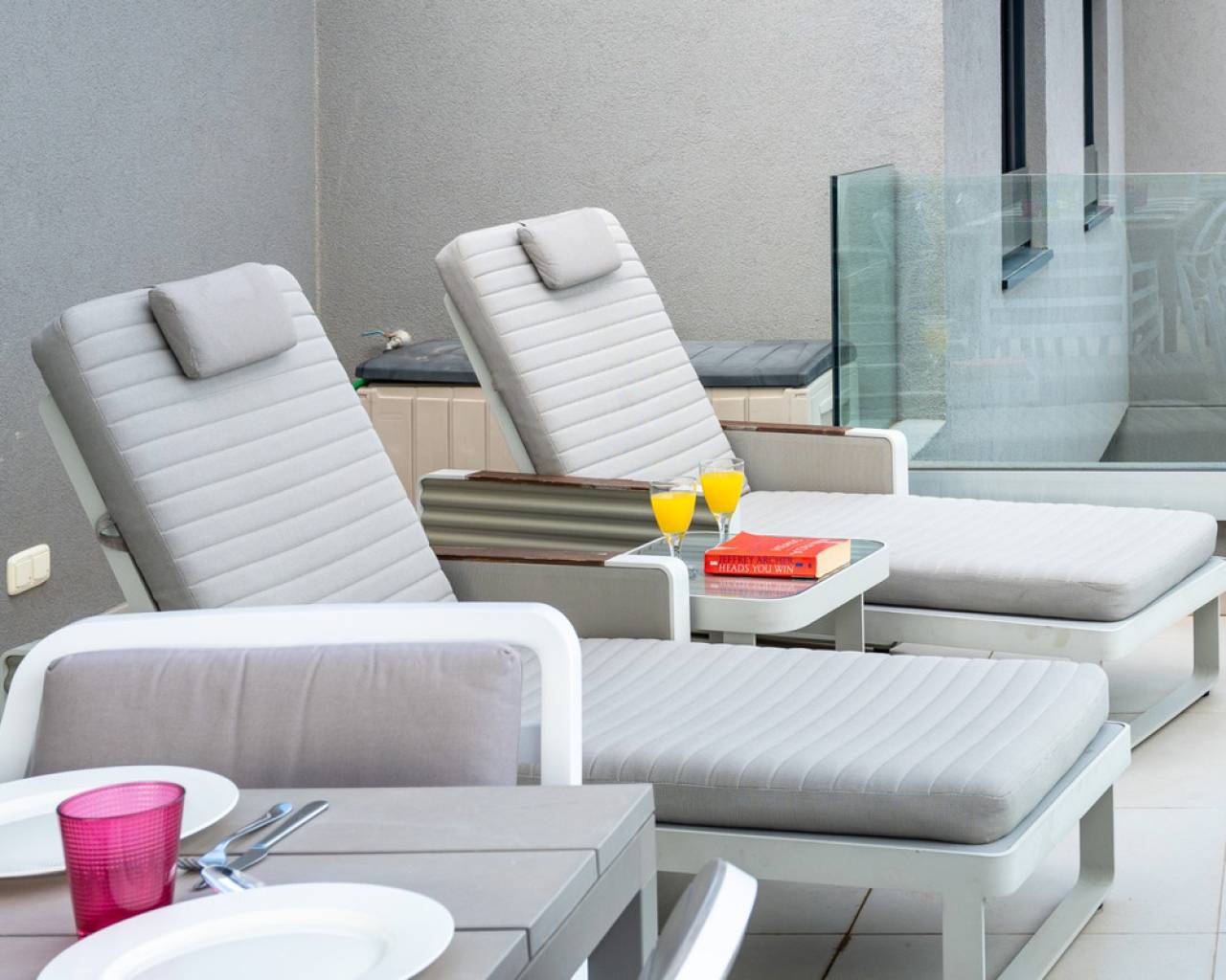 From its spectacular 33 m² terrace , equipped with a retractable bioclimatic system , you can enjoy uninterrupted, frontal views of the Mediterranean Sea , creating a unique sensation comparable to being aboard a private yacht suspended above the blue waters. The living room, seamlessly connected to the terrace , becomes a large panoramic space where interior and exterior blend with absolute naturalness. Furthermore, the living room features a south-facing window , allowing you to contemplate beautiful sunsets and bathing the space in a warm, enveloping light at the end of the day.