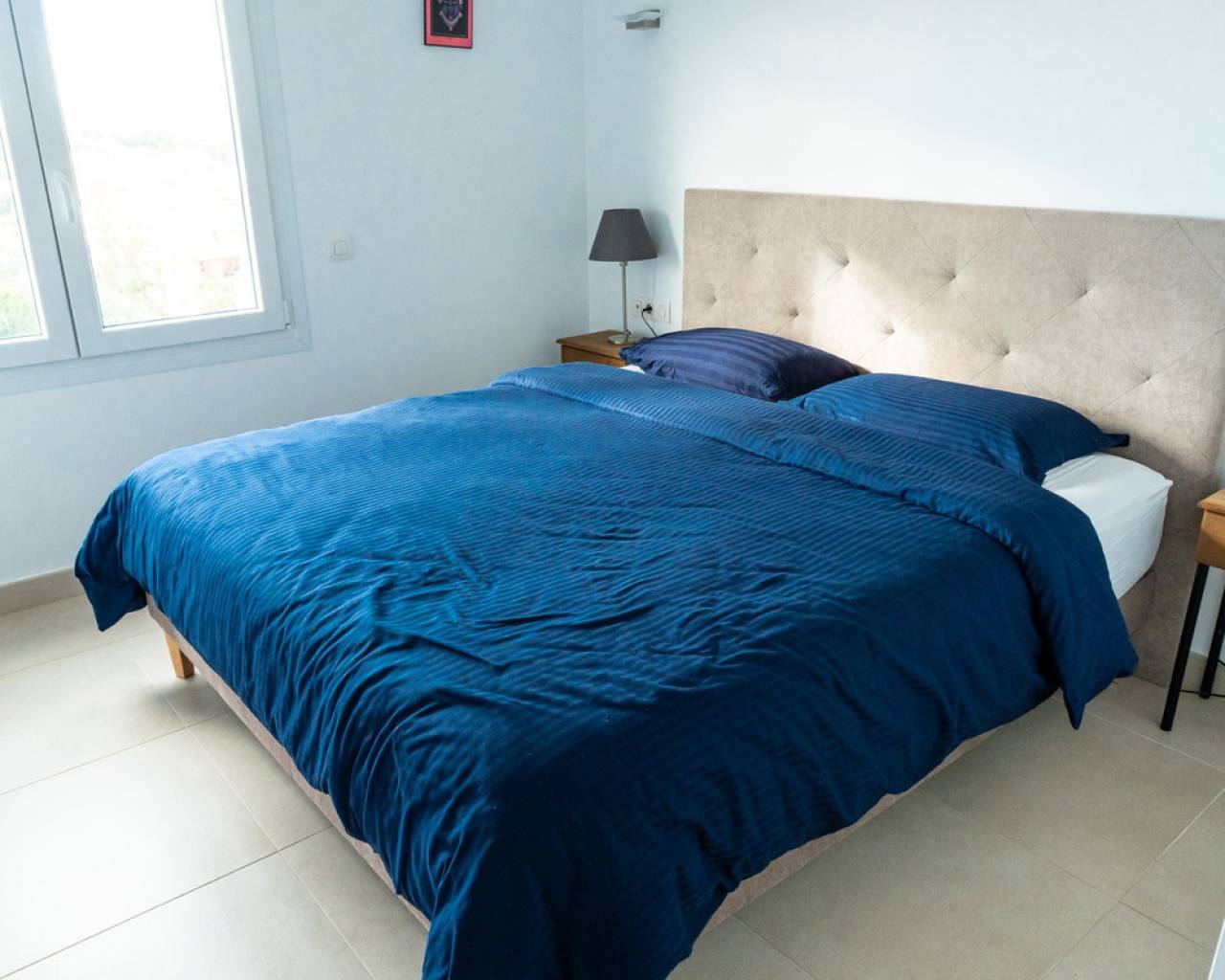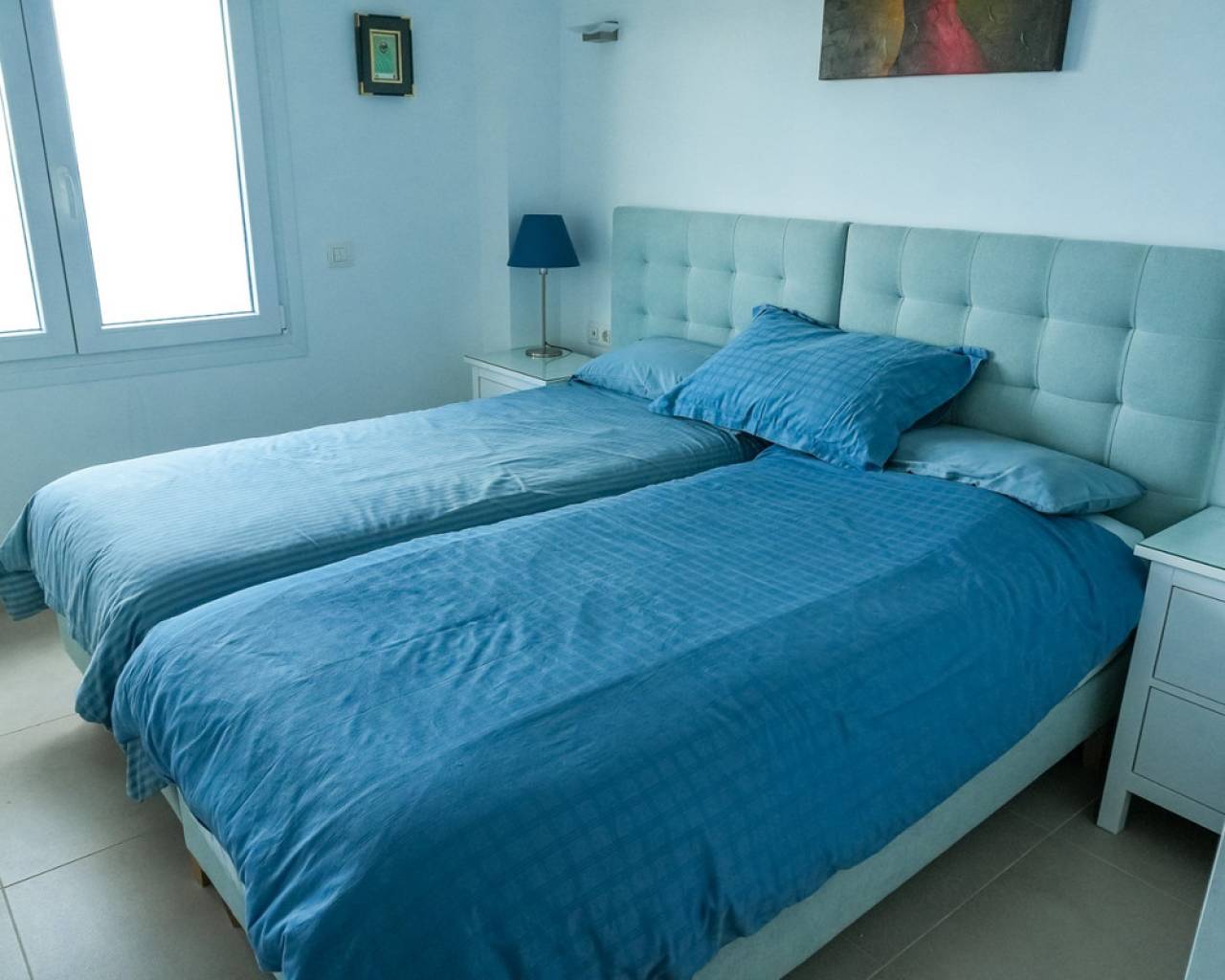 The property features four bedrooms and three bathrooms , with a layout designed for maximum comfort. Three of the bedrooms have en-suite bathrooms , all with built-in wardrobes , and two of them offer direct sea views from the bed – a privilege reserved for very few properties. The east-facing orientation guarantees spectacular sunrises and abundant natural light throughout the day.
