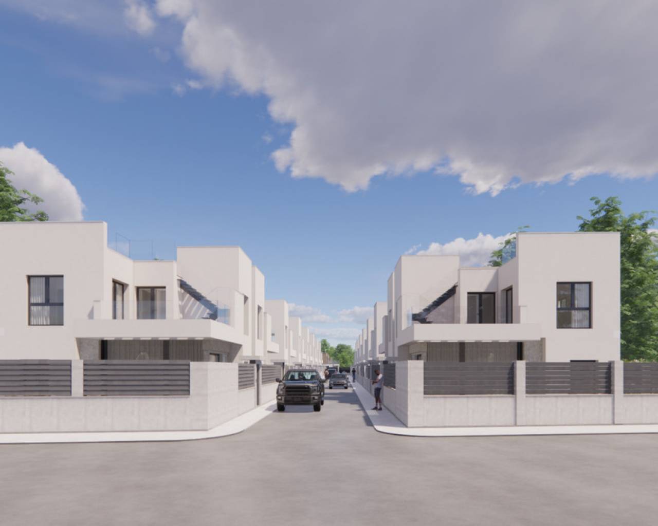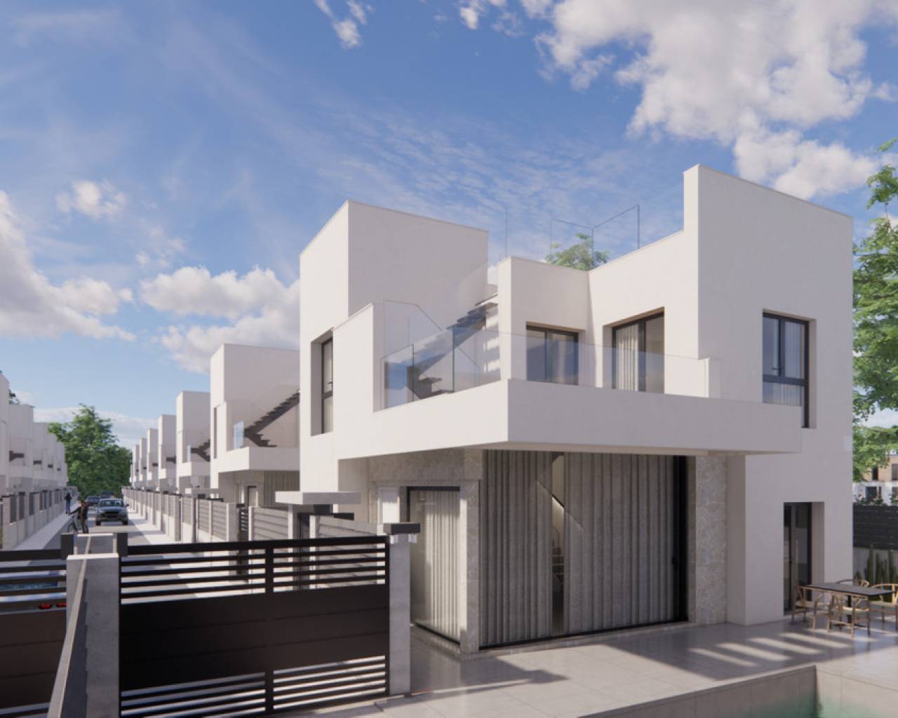 Each villa offers 110 m² of living space, spread over two floors, designed to maximize natural light and generous outdoor spaces with a private pool, ideal for relaxing or entertaining. The ground floor comprises an open-plan living area with an integrated kitchen, a bedroom, bathroom, and laundry room, while the upper floor offers two en-suite bedrooms and access to a private terrace. A solarium can be added as an option for additional outdoor space and views. The high-quality finishes, modern amenities, and gated access to the community ensure a safe, comfortable, and high-quality living experience. These villas in Los Montesinos, are situated in a prime location close to all major amenities and leisure options, including the beaches of Guardamar and Torrevieja. Golf enthusiasts will find three renowned courses—La Marquesa, La Finca, and Vistabella. The area is also surrounded by natural parks, salt lakes, hiking trails, and cycling routes, contributing to a healthy and relaxing lifestyle. These villas combine maximum privacy with the comfort of everyday amenities and the unique charm of the Costa Blanca.