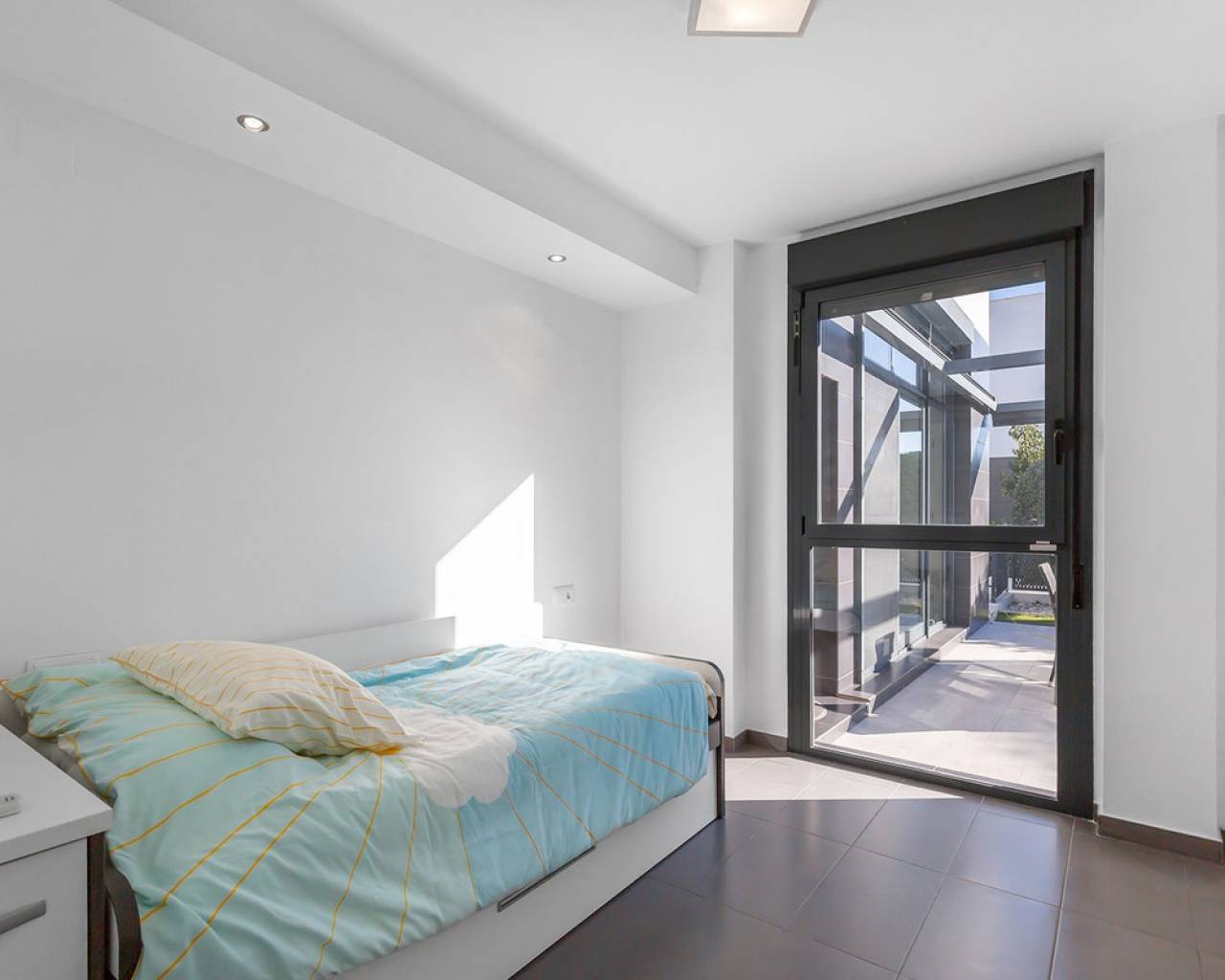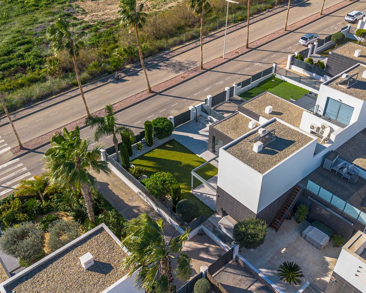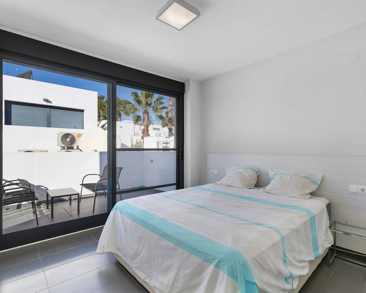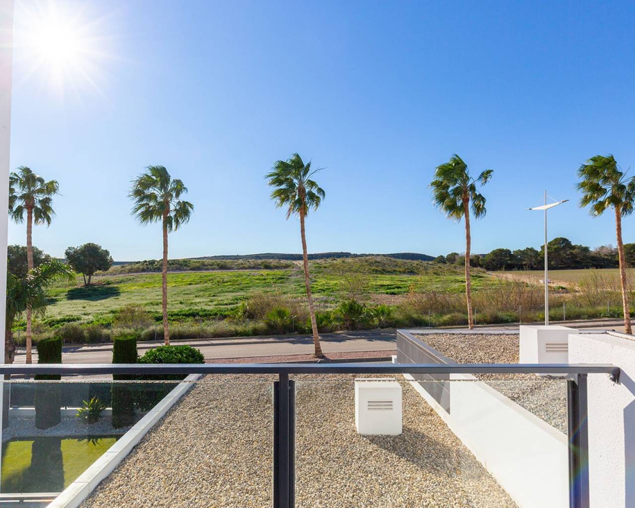 Discover this spacious and well-maintained 3-bedroom property located on the prestigious La Finca Golf Resort in Algorfa. The property enjoys a quiet setting with open views over rustic land, offering privacy and a green, natural environment without overlooking neighbours. The house stands on a 249 m² plot and features a generous garden and terrace with low-maintenance planting. There is private parking on the plot, although parking outside the property is equally convenient. The garden is large enough to install a private swimming pool if desired. In addition, residents have access to a large communal swimming pool. Layout of the property On the ground floor you will find the living area with lounge and open-plan kitchen. The high ceiling enhances the sense of space and natural light. This level also offers two bedrooms and one bathroom. On the first floor there is a third bedroom with en-suite bathroom and a spacious solarium where you can enjoy the sun and open views in complete privacy. Living at La Finca Golf Resort La Finca is home to one of the most beautiful golf courses in the region. Just 200 metres from the property you will find a stunning terrace with panoramic views over the golf course and valley, the perfect spot to enjoy a drink at sunset. Two excellent restaurants are located nearby, and at the entrance of the resort you will find various shops and bars. The resort is next to the authentic Spanish village of Algorfa and only a 20-minute drive from the sea and beaches. An ideal property for permanent living, a second home or a solid investment in one of the most sought-after resorts on the Costa Blanca.