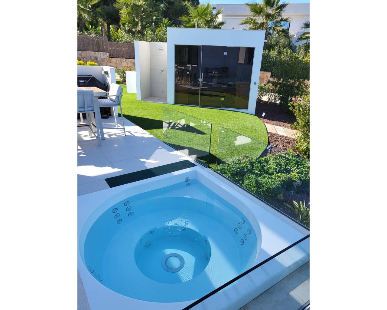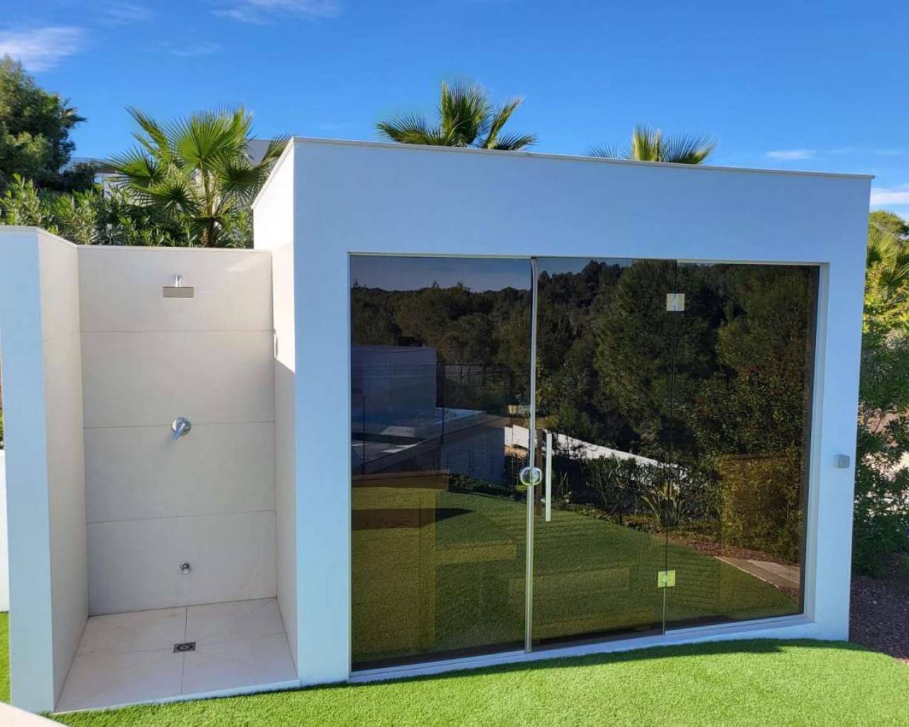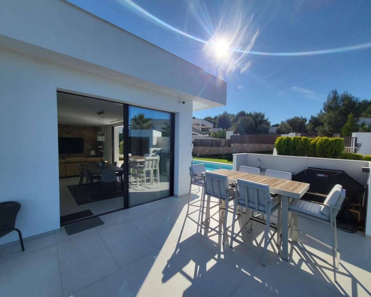 Located within the internationally acclaimed Las Colinas Golf & Country Club on the Costa Blanca, this refined villa epitomizes luxury living. Surrounded by a protected natural park, the property offers unparalleled privacy and tranquility. The seamless access to one of Europe's top golf destinations makes it a favorite among discerning golfers and lifestyle enthusiasts.Sitting on a generous 1,700 m² plot, this villa is designed for elegant Mediterranean living. The outdoor space boasts a swimming pool, jacuzzi, sauna building, and beautifully landscaped areas perfect for relaxation and entertainment. After a round on the award-winning golf course, residents can unwind in their private oasis.Inside, the villa exudes calm Scandinavian elegance with open-plan living spaces flooded with natural light. The three en-suite bedrooms are strategically placed in a private wing, each offering direct garden access for utmost comfort and privacy. Thanks to underfloor heating and solar energy, this residence is not only high-quality but also energy-efficient.Ideal for those who appreciate understated luxury, international prestige, and world-class golf, this villa is located in one of Southern Europe's most celebrated resort communities.