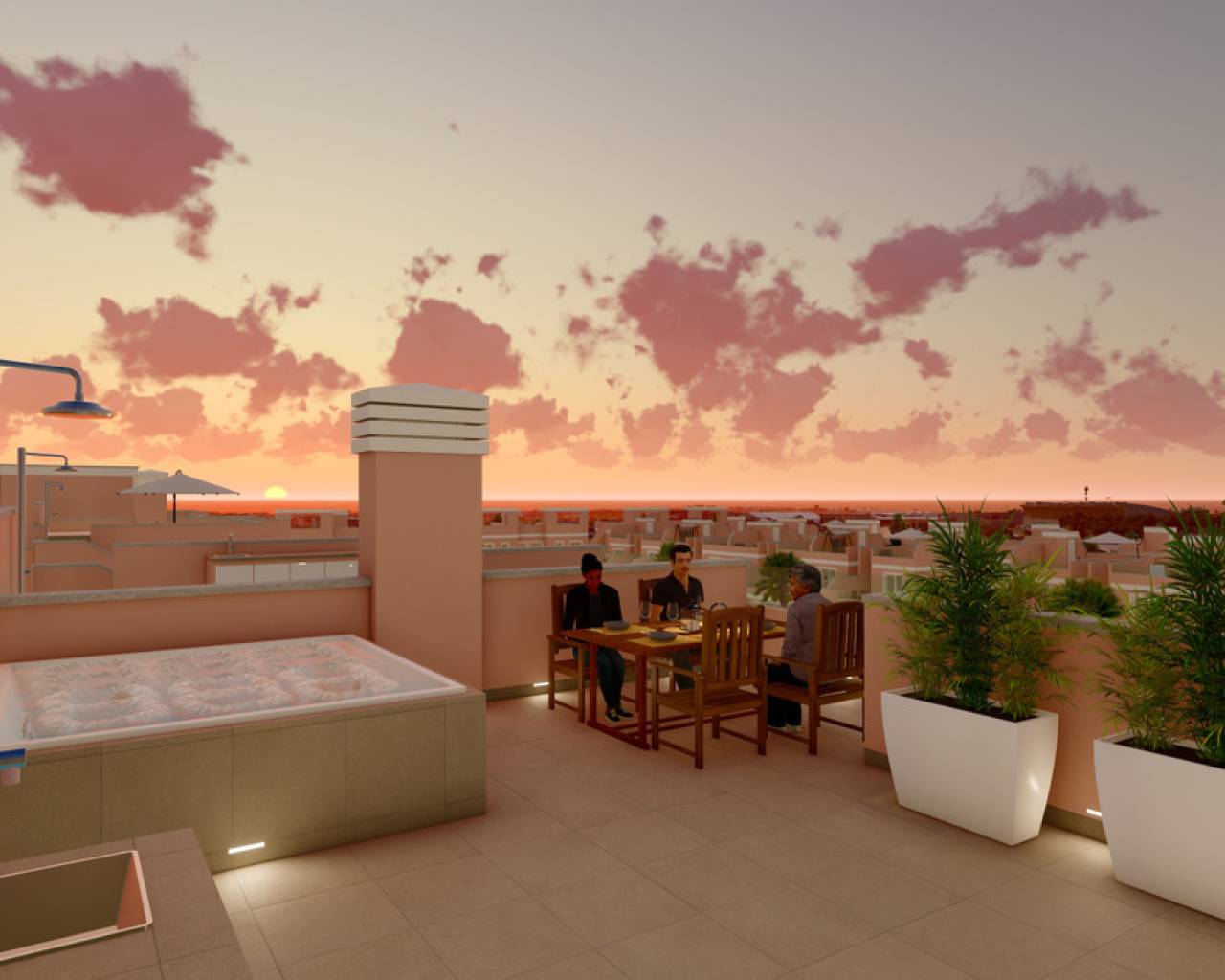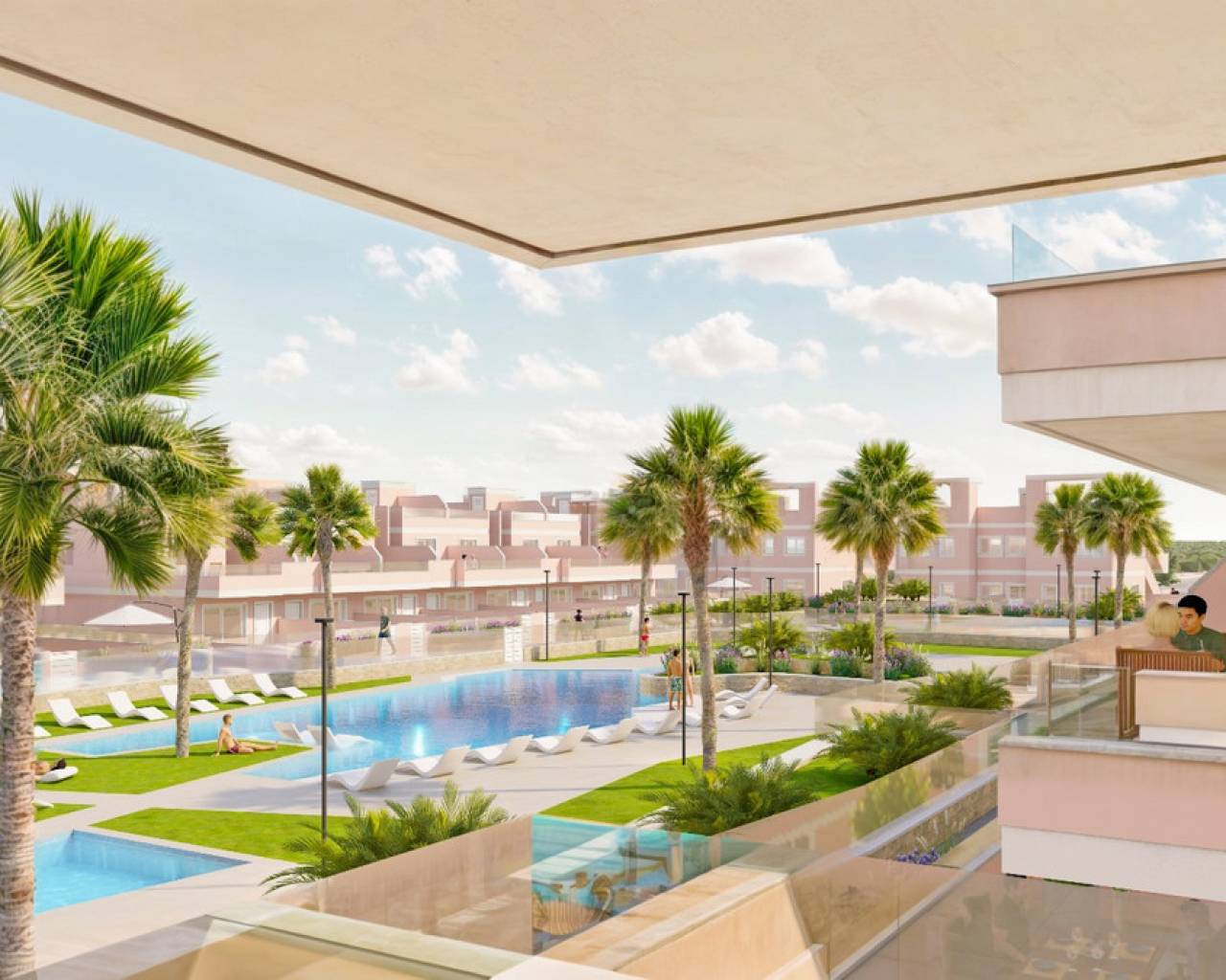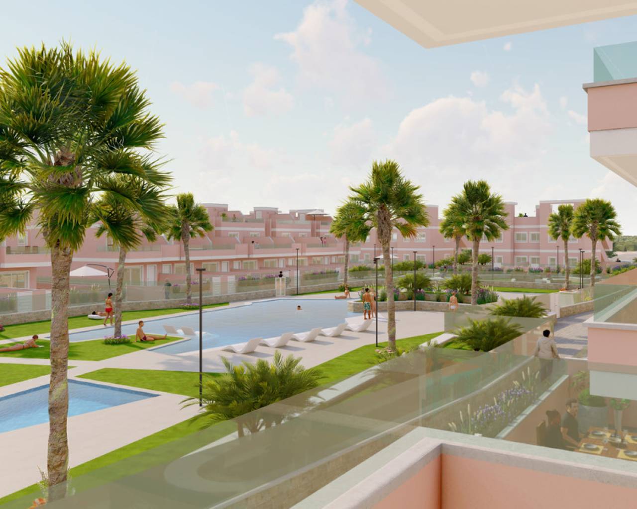 We present our new development in El Pilar de la Horadada. In this new project we wanted to build together 3 different typologies, already known to you, so that all clients have options within the same residential area. At this new project, we offer you the following selection of homes: • 36 apartments with 3 bedrooms and 2 bathrooms • 32 semi-detached houses with 3 bedrooms and 2 bathrooms • 24 ground floor and upper floor bungalows with 3 bedrooms and 2 bathrooms In total, the development will have 92 homes, all of them with large terraces, balconies and magnificent solariums to enjoy in the company of family and friends. In the centre of the residential complex there could not be missing a green landscaped area with 2 magnificent newly designed swimming pools to enjoy the summers, a relaxation area to sit and enjoy the sunsets and for the little ones in the house our park, where they will have a thousand and one adventures. This new project is located very close to the beaches of Torre de la Horadada, shopping centres, golf courses and with easy connections to the highway and airports. All this will make this new project a place where our clients feel comfortable and happy and enjoy our "AROMA MEDITERRANEO".