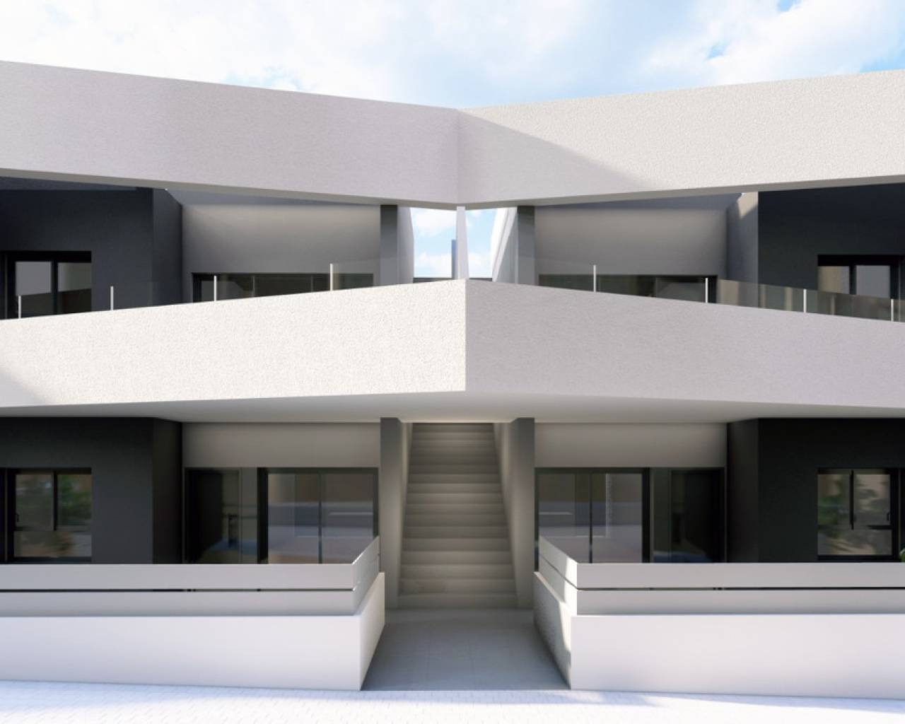 Residential complex of terraced homes, bungalow-style with 2 and 3 bedrooms, distributed between ground floors with private gardens and top floors with private solariums.