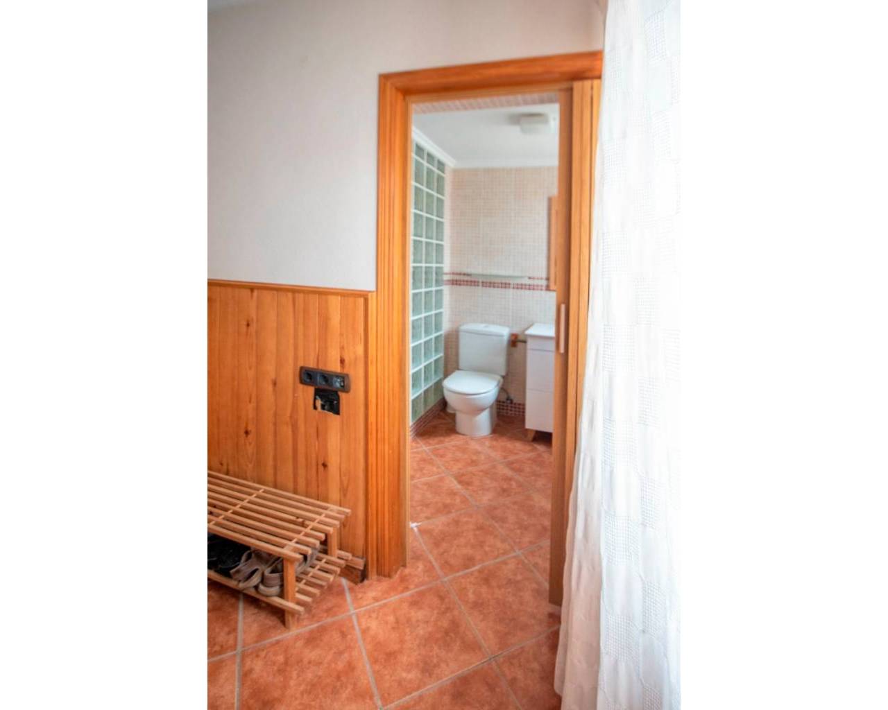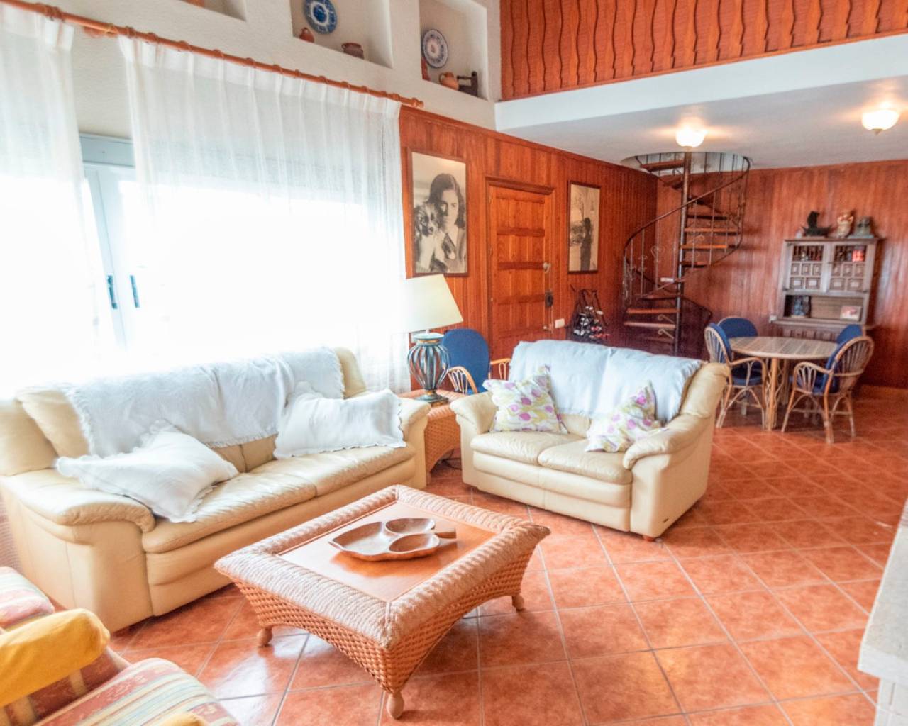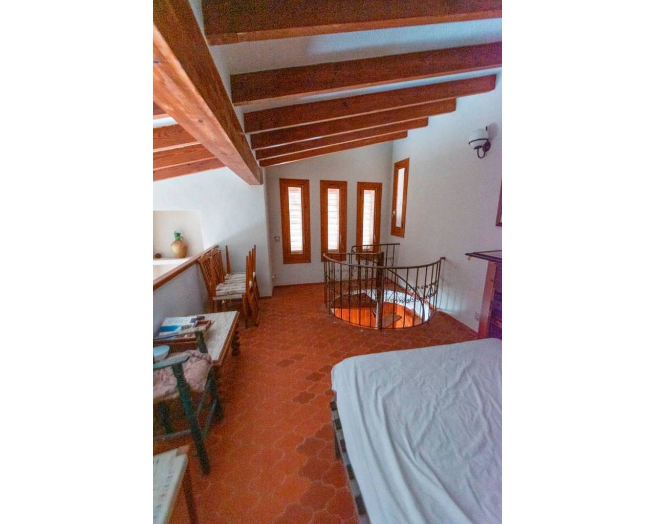 Next is the living-dining room, with fantastic spiral stairs that lead to an attic where you can have your intimate office or another room. In that same living room we can find a fireplace, heating and air conditioning , to enjoy the best temperature both in winter and summer. It also has cross ventilation . It is an area large enough for the whole family to enjoy.