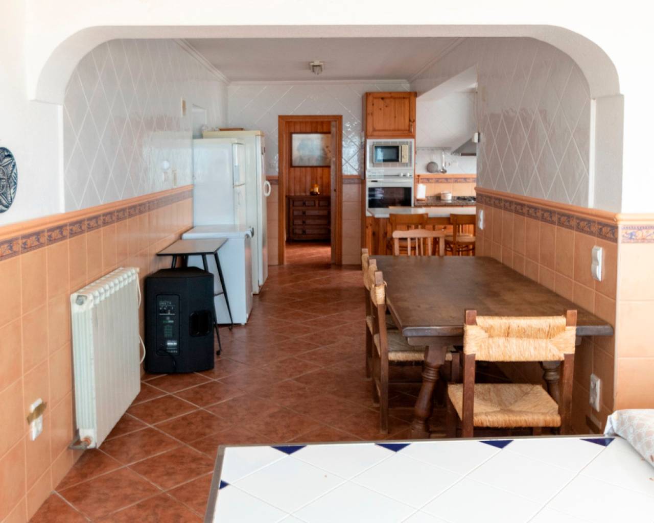With the magnificent wooden interior, this house with a Mediterranean design will transport you to a most calm and pleasant environment. We find the day area on the right, with a very large kitchen-dining room where you can cook your favorite dishes. It also has a large pantry .