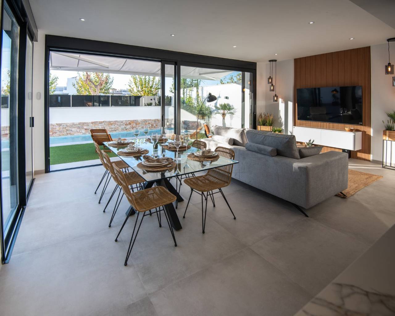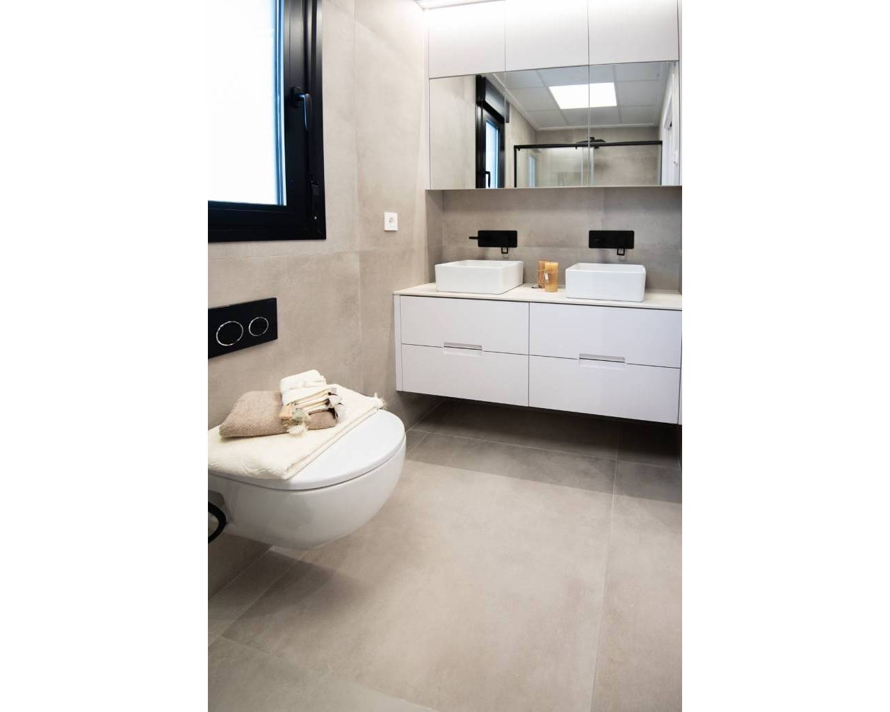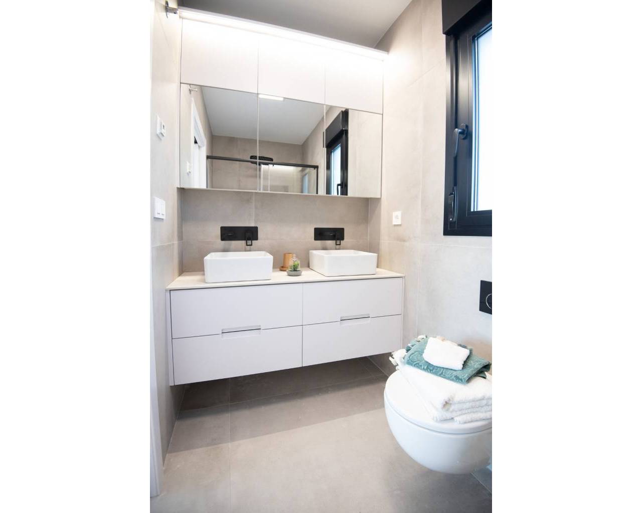 Exclusive Villas in Mar Menor Area – Just 750 meters from the Beach These stunning villas offer an exceptional living experience, just a short walk from the beautiful beaches of the Mar Menor. Each villa is thoughtfully designed with high-quality features to combine modern comfort with elegant style. Every villa includes whitegoods and a fully equipped kitchen with a stylish island, making it ready to enjoy from day one. The bathrooms are fully equipped and finished to a high standard, featuring wall-hung toilets, underfloor heating in three bathrooms, and electric shutters (except in bathrooms) for added convenience. Enjoy outdoor living with a spacious solarium complete with a closed summer kitchen and a pergola for shaded relaxation. The villas come with a private swimming pool with a decorative spout, pre-installation for a pool heater unit, and artificial grass for easy maintenance. Additional premium features include a closed garage, internal and external LED lighting, external sound speakers, aerothermic water heater, Airco & Air Zone system, and pre-installation for an electric car charger. These exclusive villas combine thoughtful design and premium finishes to create the perfect coastal retreat.
