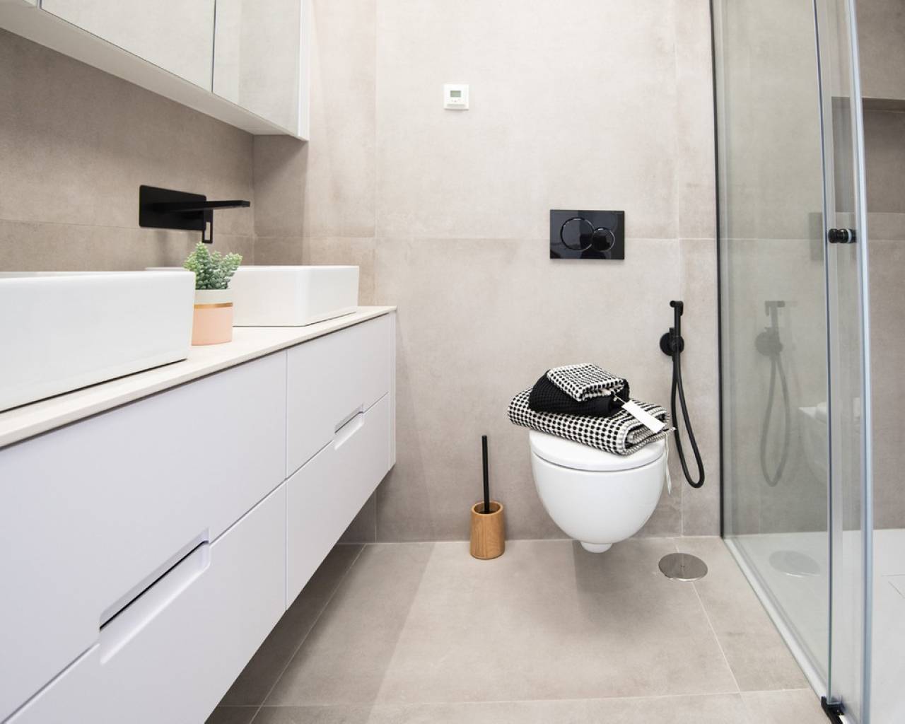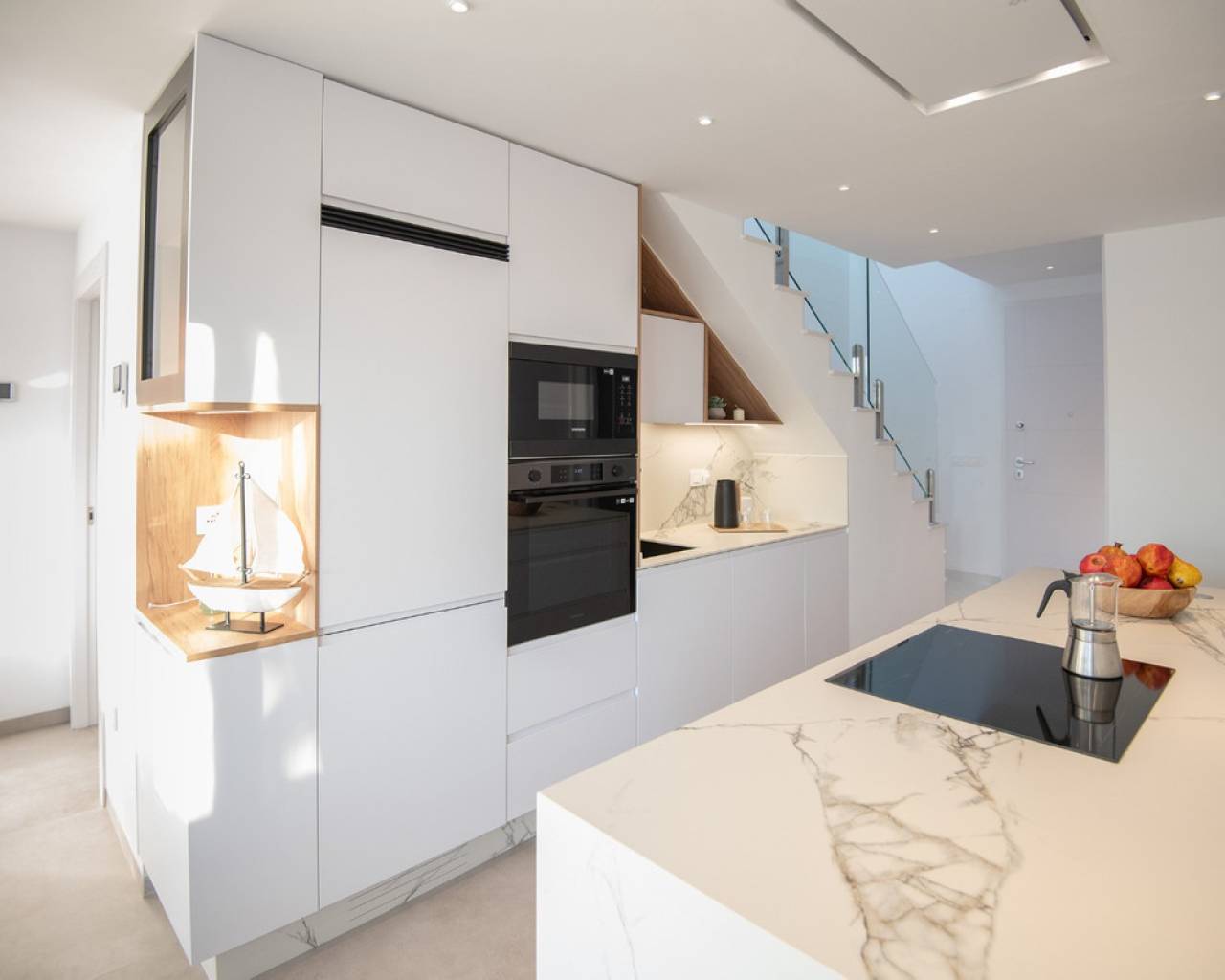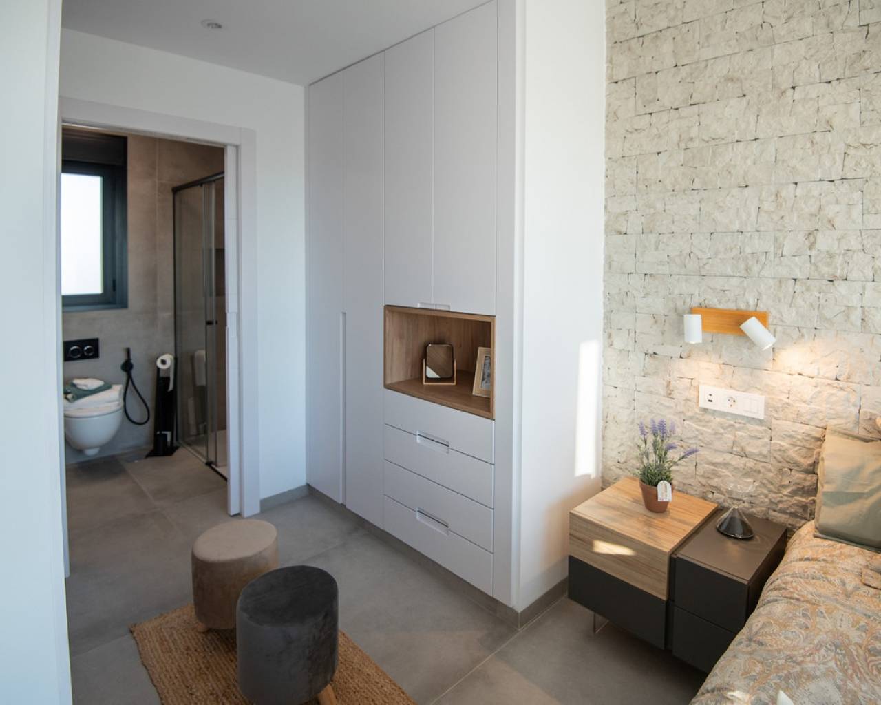 Exclusive Villas in Mar Menor Area – Just 750 meters from the Beach These stunning villas offer an exceptional living experience, just a short walk from the beautiful beaches of the Mar Menor. Each villa is thoughtfully designed with high-quality features to combine modern comfort with elegant style. Every villa includes whitegoods and a fully equipped kitchen with a stylish island, making it ready to enjoy from day one. The bathrooms are fully equipped and finished to a high standard, featuring wall-hung toilets, underfloor heating in three bathrooms, and electric shutters (except in bathrooms) for added convenience. Enjoy outdoor living with a spacious solarium complete with a closed summer kitchen and a pergola for shaded relaxation. The villas come with a private swimming pool with a decorative spout, pre-installation for a pool heater unit, and artificial grass for easy maintenance. Additional premium features include a closed garage, internal and external LED lighting, external sound speakers, aerothermic water heater, Airco & Air Zone system, and pre-installation for an electric car charger. These exclusive villas combine thoughtful design and premium finishes to create the perfect coastal retreat.