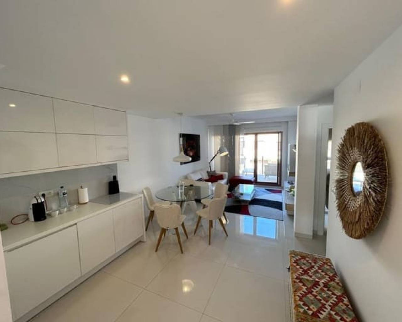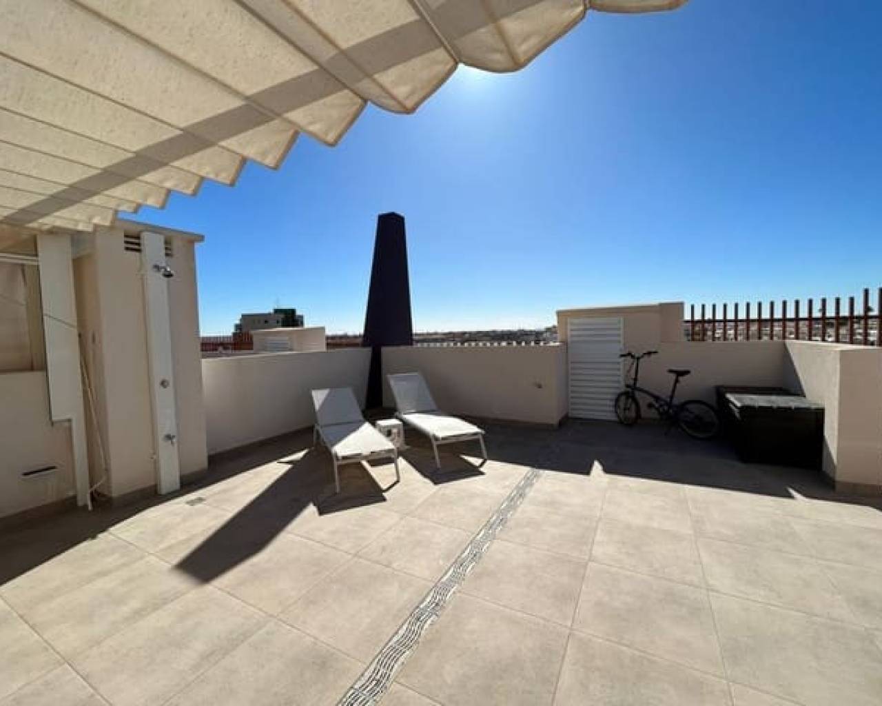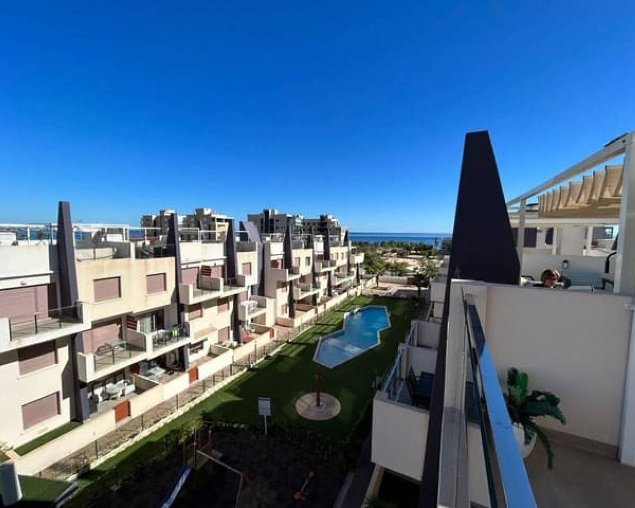 A quality apartment constructed in 2020 and only 150 metres to the beautiful, blue flag beaches of Mil Palmeras. The property has a spacious roof solarium of 66m2 with retractable sun awnings, from where there are sea views. A balcony terrace adjoining the lounge has views over the 2 community swimming pools. The lounge has a fully fitted open kitchen with all appliances and a quality brand dining table and sofa. The two bedrooms both have fitted wardrobes, one with an en suite bathroom and there is also a guest bathroom. Throughout the apartment is hot and cold air conditioning and the property will be sold fully furnished. The complex has a large central pool area, children's play area and, exercise machines and gardens. It is located close to all amenities in Mil Palmeras where there are a variety of bars, restaurants, supermarkets, pharmacy etc. A five minute drive away is the access to the AP-7 motorway.