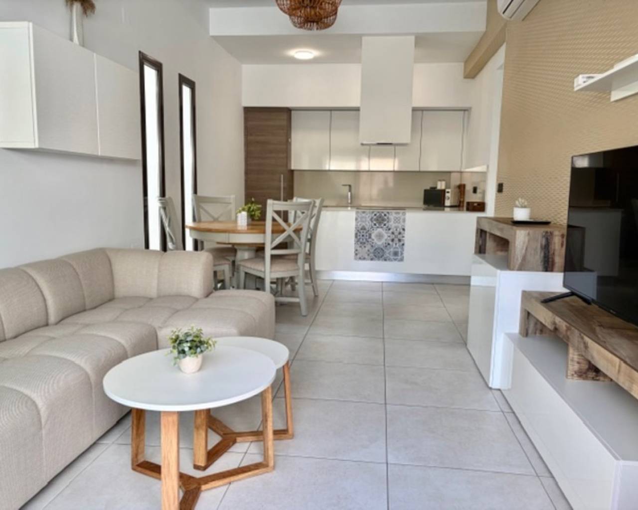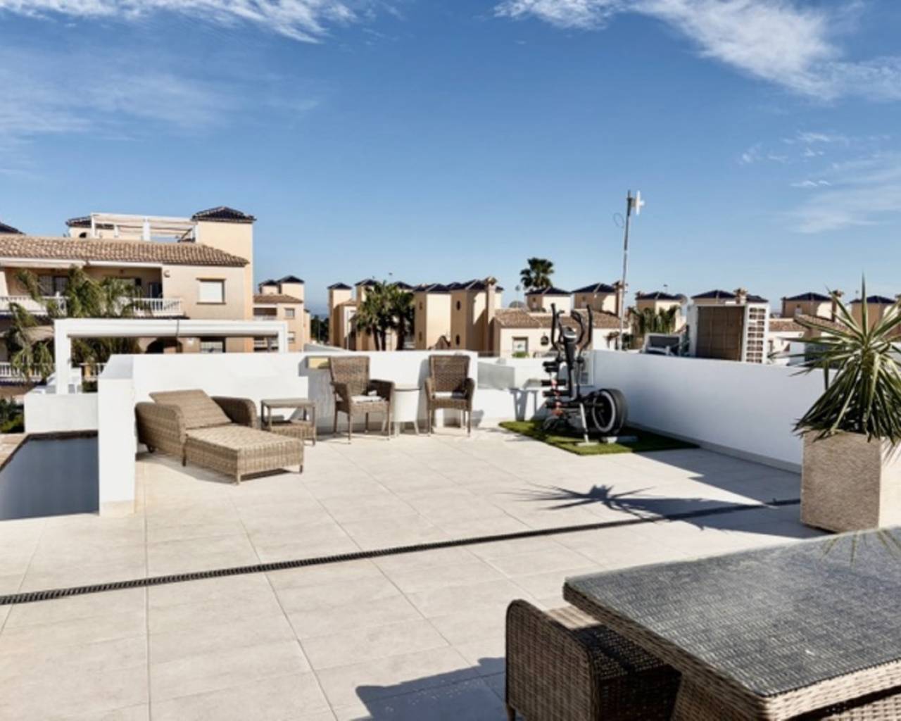 Discover this beautifully presented single level detached villa (2017) located in the highly sought-after area of Lomas de Cabo Roig (Orihuela Costa), Alicante. This modern villa offers a bright open plan living/dining area with direct access to the terrace and private swimming pool area, ideal for entertaining or relaxing in the sun, a modern open plan fully equipped kitchen, air conditioning (hot/cold) throughout the property, three bedrooms with fitted wardrobes, two bathrooms (one is en-suite), a storage, a private rooftop terrace/solarium and off road parking. Ideally situated within walking distance to all amenities including restaurants, bars, supermarkets, and shops, and just a 5-minute drive to the lovely sandy beaches of Cabo Roig and Campoamor, this property offers the perfect blend of comfort, convenience, and Mediterranean living.