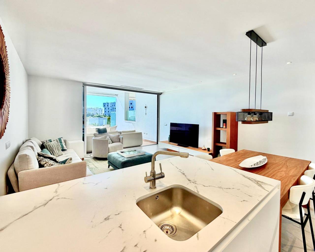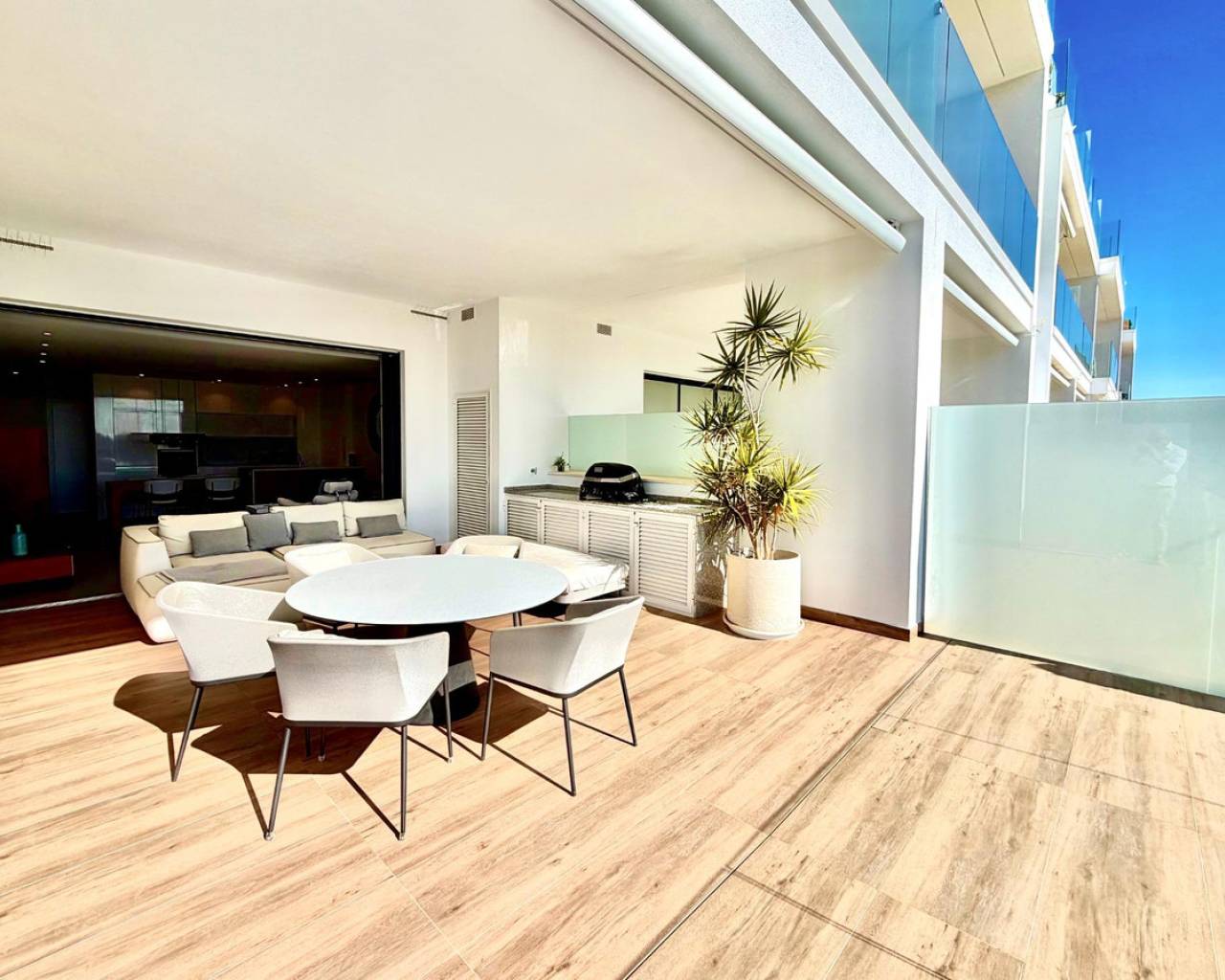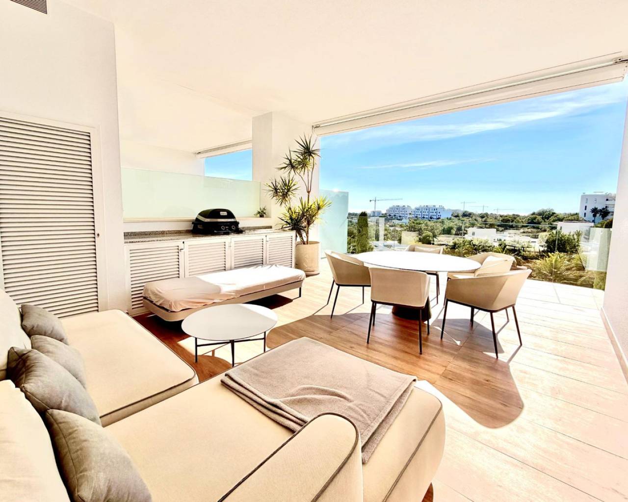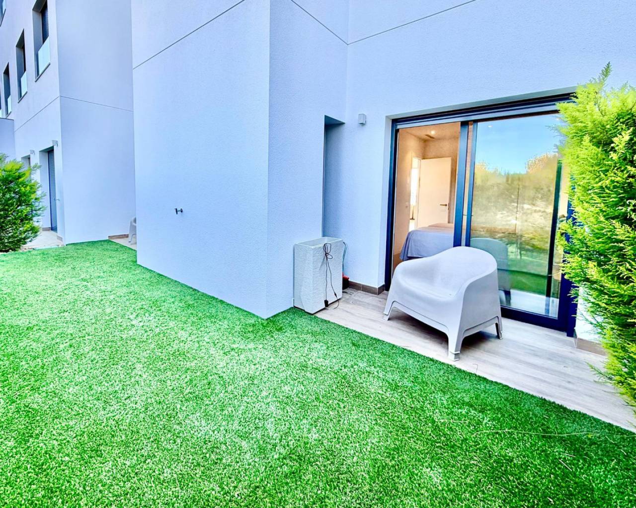 Beautiful Ground Floor Apartment in Las Colinas Golf – Space, Privacy & Southern Light~~Welcome to this stunning south-facing ground floor apartment in the exclusive Naranjo community of Las Colinas Golf. Built in 2020 and maintained in excellent condition (the building was freshly painted in 2025), this property offers comfort, privacy and effortless Mediterranean living.~~With 90 m2 built, the apartment features two spacious bedrooms and two fully equipped bathrooms with underfloor heating. The bright living area flows seamlessly into a generous 35 m2 front terrace overlooking the beautifully maintained communal green areas with open views towards the sea. At the back, a second private terrace and garden area provide extra privacy and a shaded retreat during the warm summer months.~~The fully equipped kitchen includes high-quality appliances, and the property is sold completely furnished, ready to move in. Designed for modern comfort, it also features a smart home system, air conditioning (hot and cold), LED lighting, electric shutters in all rooms, and a water filtration system.~~Residents of Naranjo enjoy access to landscaped gardens and a stylish communal swimming pool. The apartment also includes a private underground parking space and a storage room, with lift access for added convenience.~~Located just 2 km from golf and amenities, 7 km from the beach, and approximately 45 minutes from the airport, this is an ideal property for those looking for a refined second home, an investment, or a permanent residence in one of the most prestigious resorts on the Costa Blanca.~~✨ A place where comfort, quality and southern sunshine come together beautifully.~~Contact us to arrange your private viewing.