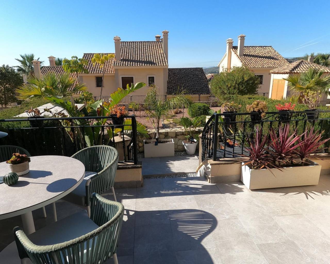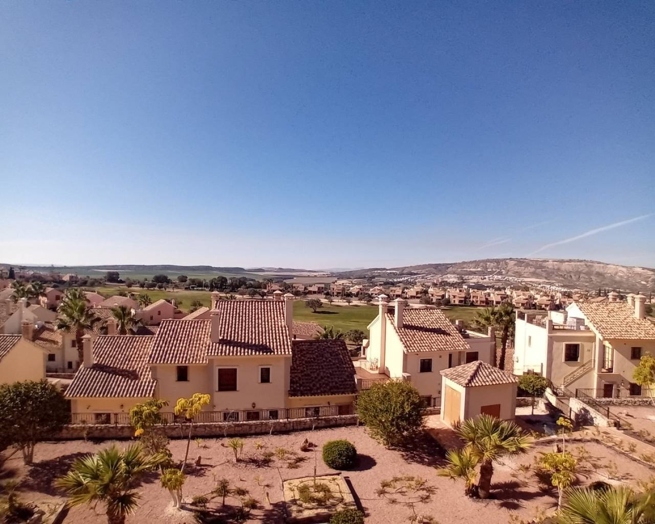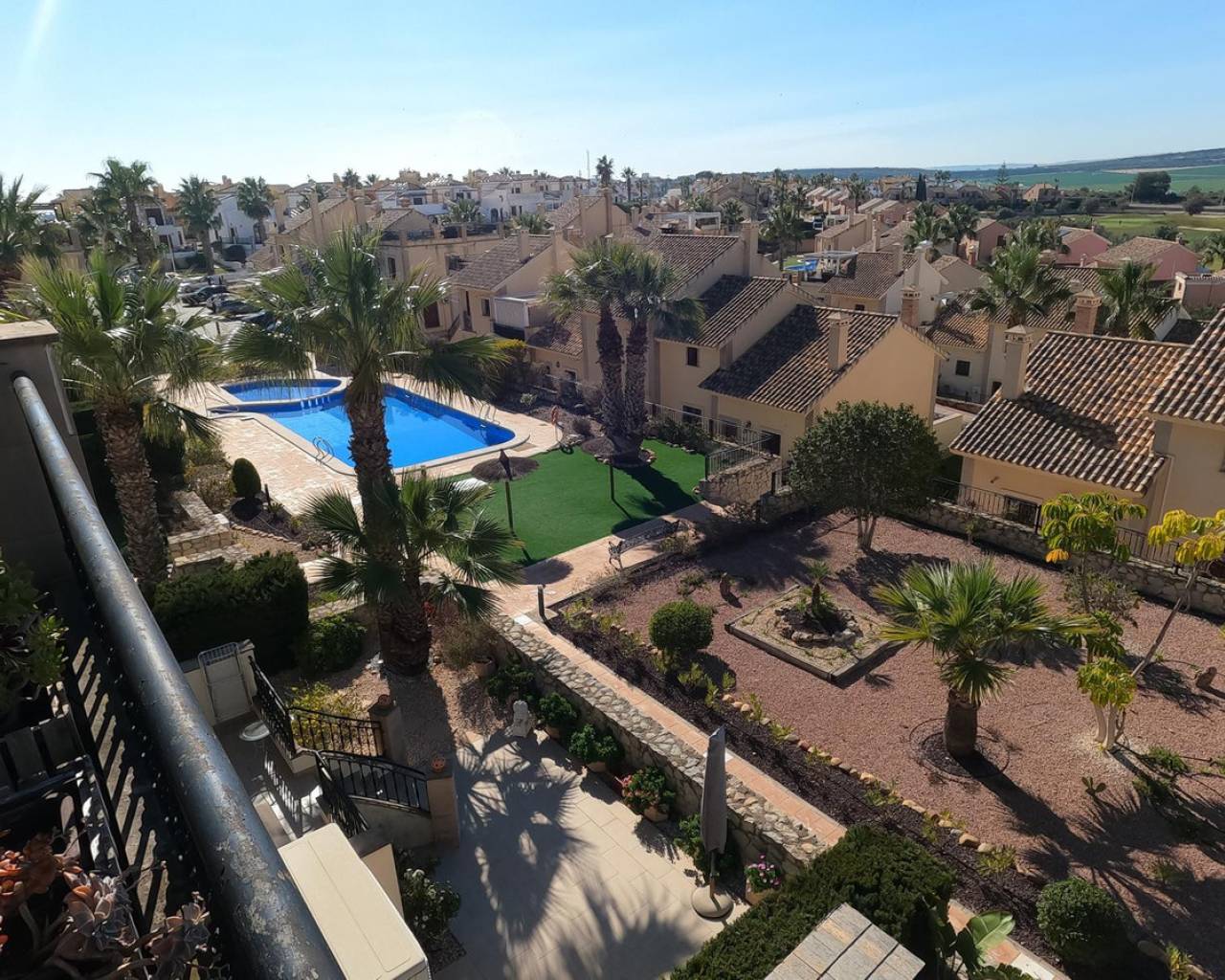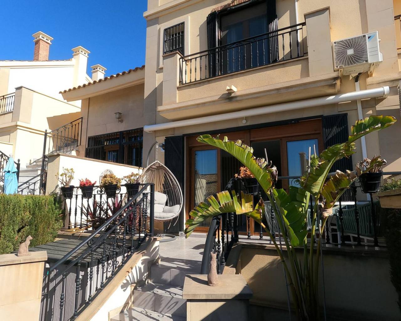 We are proud to present this beautifully renovated property on the prestigious La Finca Golf Resort, Algorfa. It is presented in pristine condition and has been upgraded to a very high standard by the current owners. KEY FEATURES MODERN DISIGNED KITCHEN WITH ALL APPLIANCES SOUTH-WEST FACING 2 DOUBLE EN-SUITE BEDROOMS GUEST CLOAK ROOM ON GROUND FLOOR TERRACE/GARDEN/ROOF GARDEN PARTLY FURNISHED COMMUNAL POOL CLOSE TO THE PROPERTY GATED COMMUNITY WITH PARKING The ground floor flows effortlessly with a modern, separate kitchen with feature doors, and fully equipped with all appliances. The open plan lounge diner is flooded with light and has a cleverly designed concealed storage cupboard and double width doors leading to the terrace. The terrace is a perfect spot for enjoying your morning coffee and breakfast. Steps lead down to a garden with a useful storage shed. The upper level of the property has 2 double en-suite bedrooms with built in wardrobes. Stairs from this level lead up to the roof garden with incredible views of the golf course, mountains and surrounding countryside. Properties like this are rare to the market and we highly recommend a viewing. Contact us to register your interest.